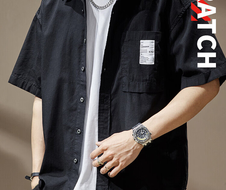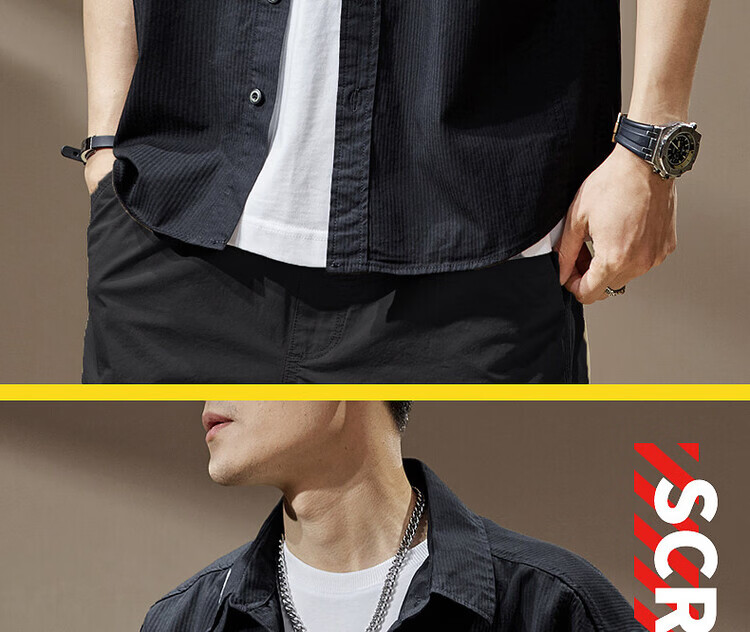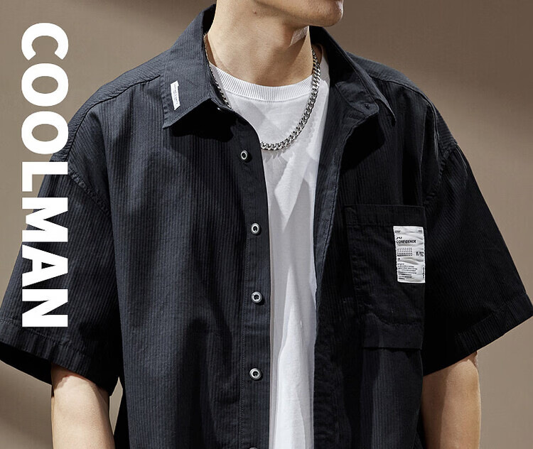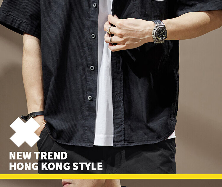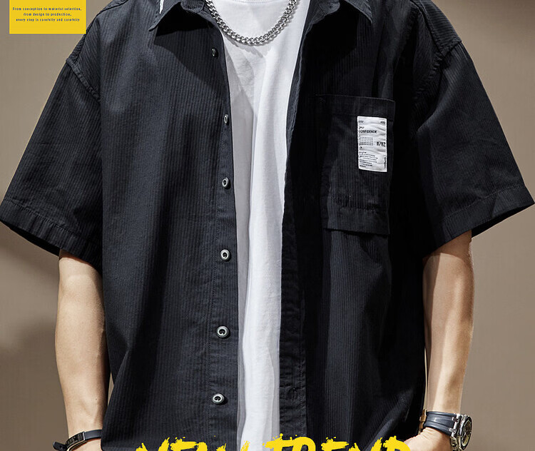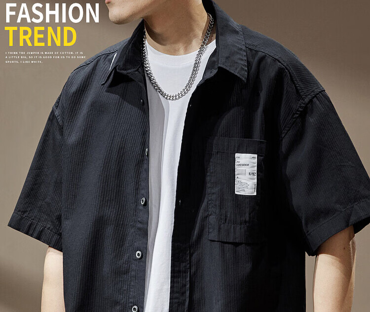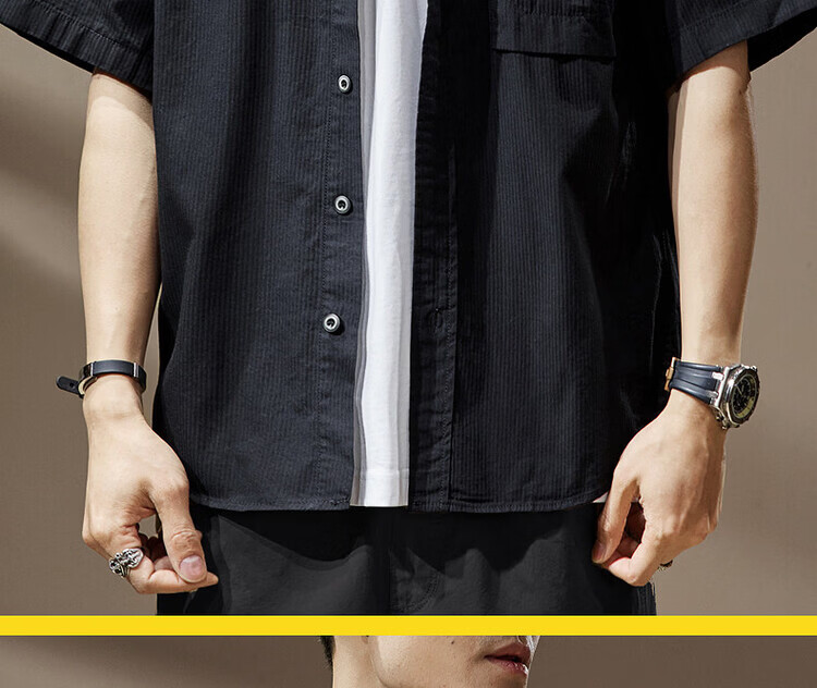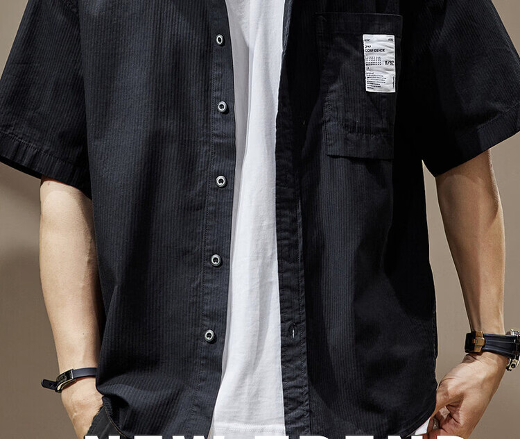 Noble American black short-sleeved shirt for men in spring and summer thin loose pure cotton casual top work shirt jacket khaki 2XL suitable for 170-190Jin Jin equals 0.5 kg