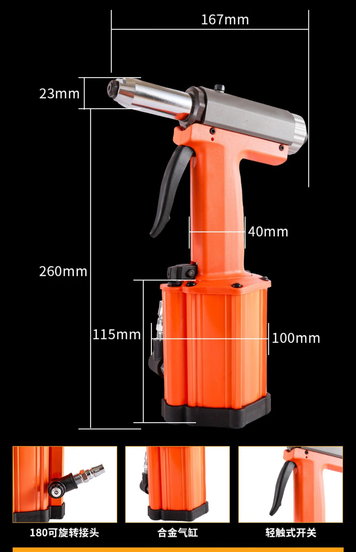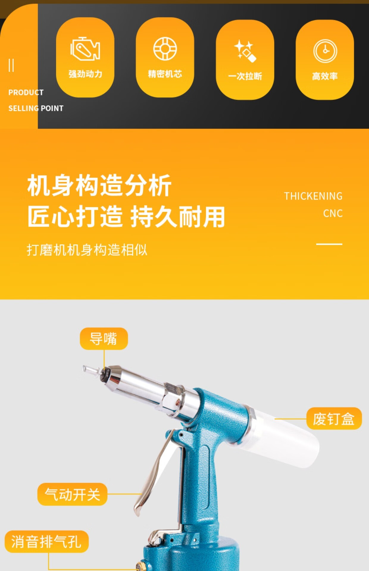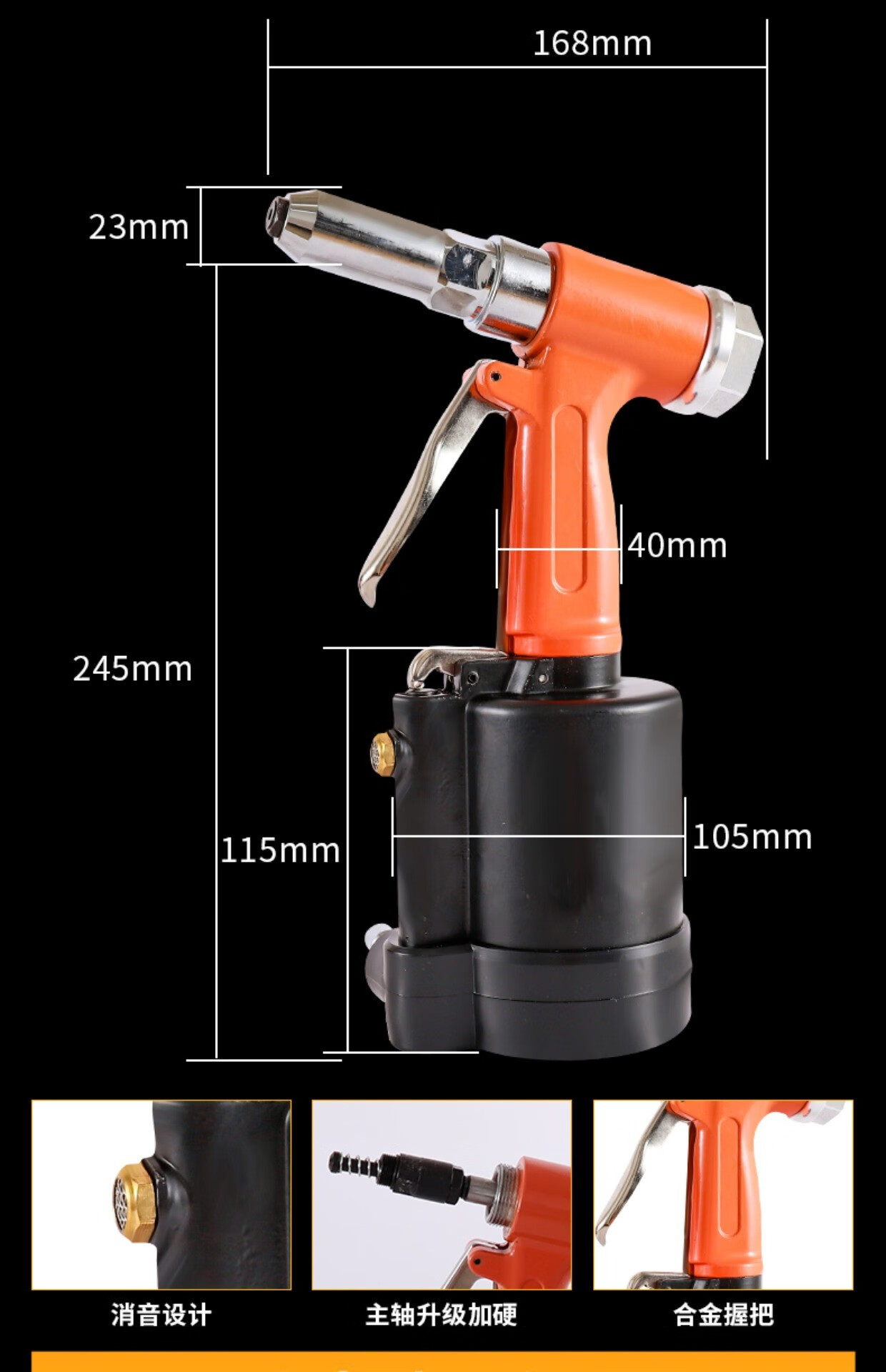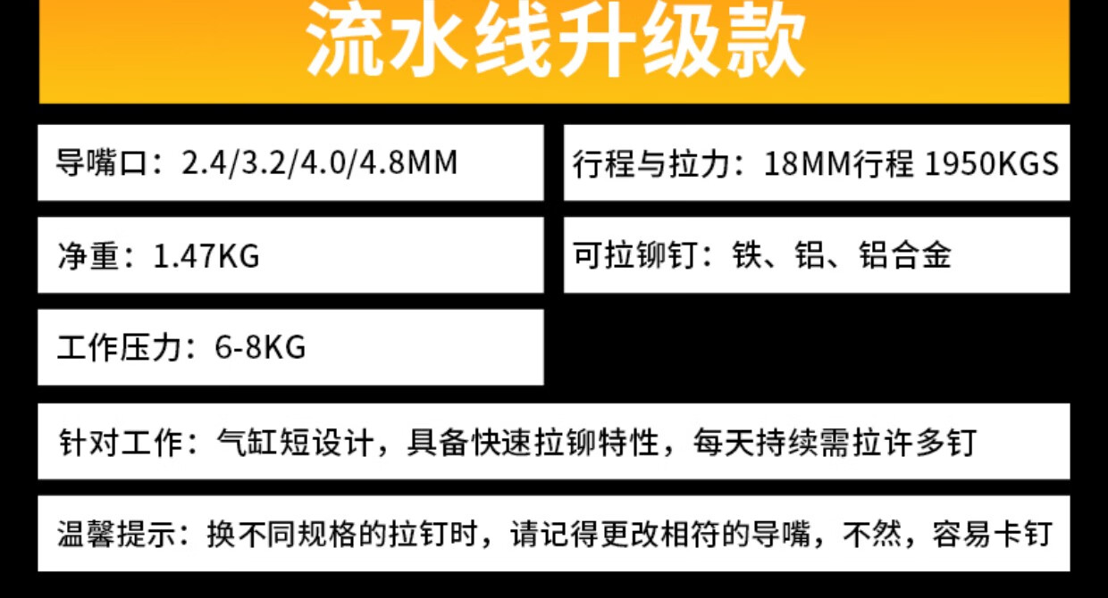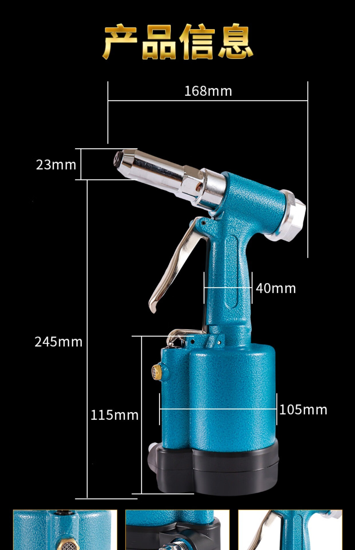 Industrial grade pneumatic rivet gun self-priming pneumatic rivet gun stainless steel core pulling cap machine pneumatic riveting tool 4.0-6.4 industrial grade blue rivet gun (can pull 5.016