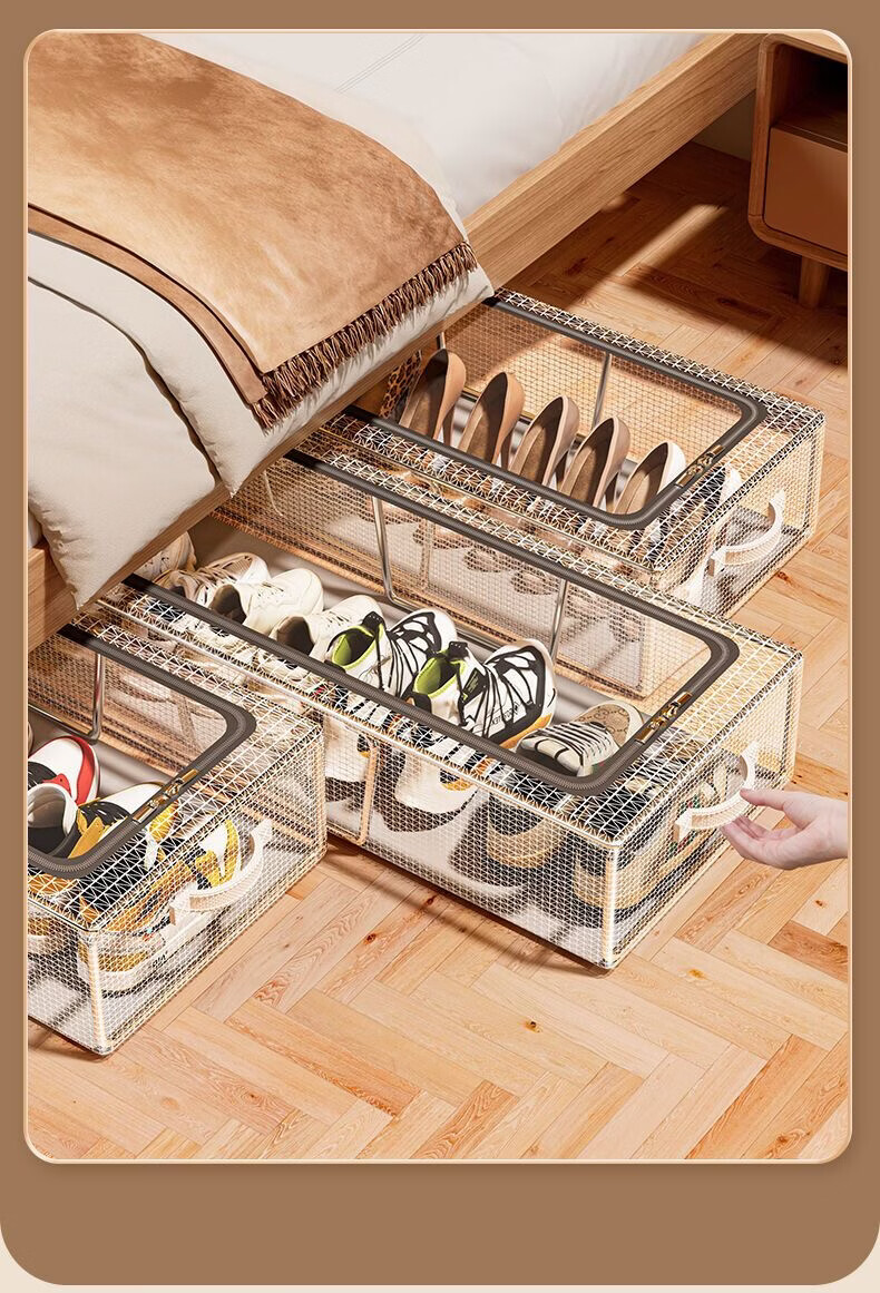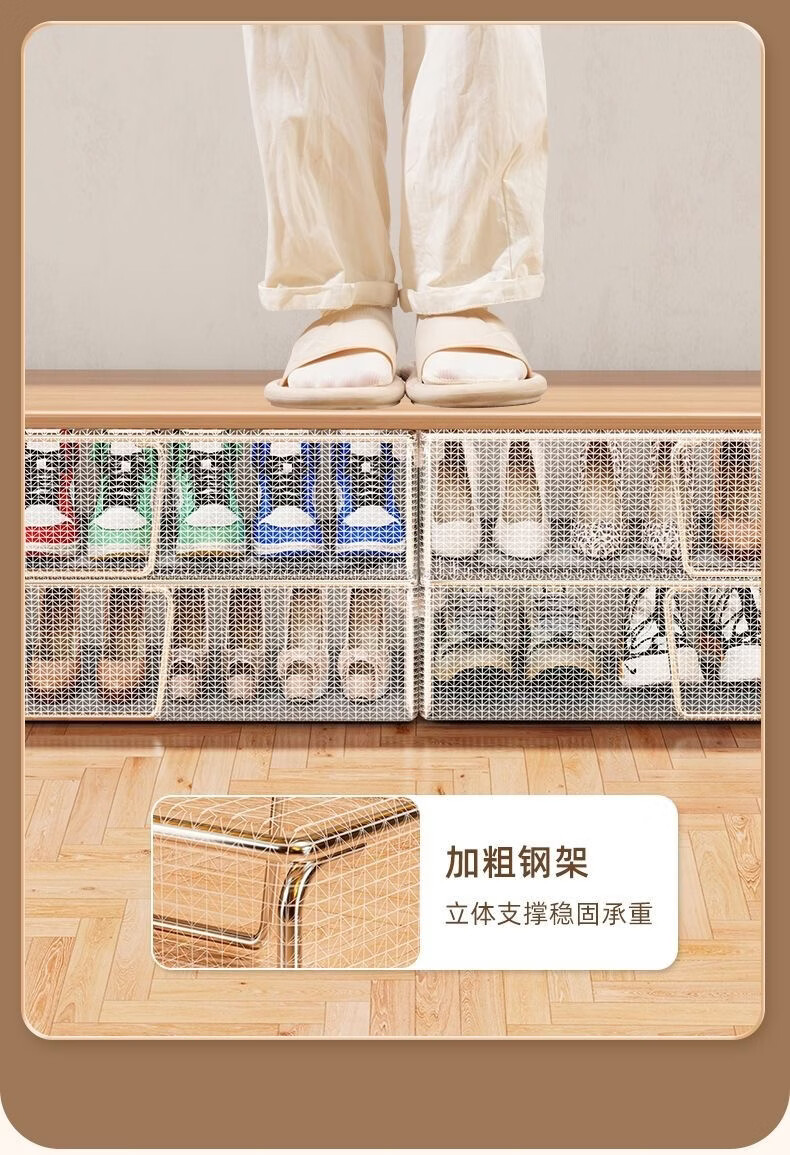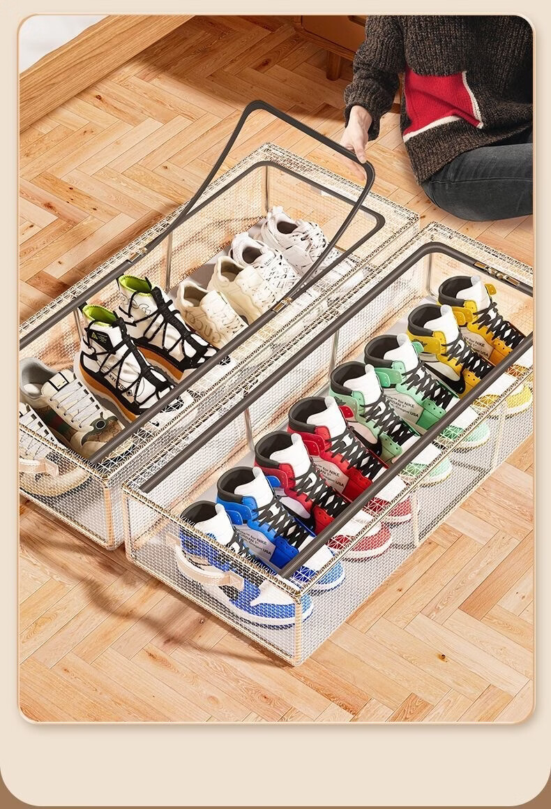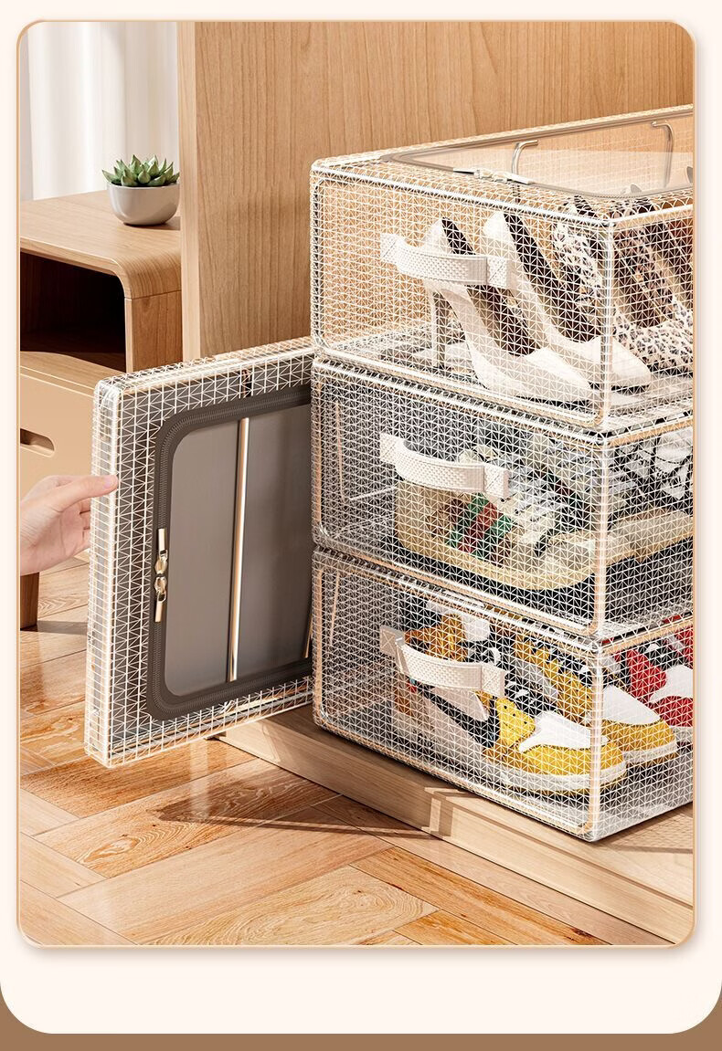 Pupan shoe box shoe storage artifact space-saving transparent dust-proof shoe cabinet for placing boots and shoe supports under the bed Folding shoe rack storage large size 30x60x15 can hold 3+4 pairs of shoes, two packs