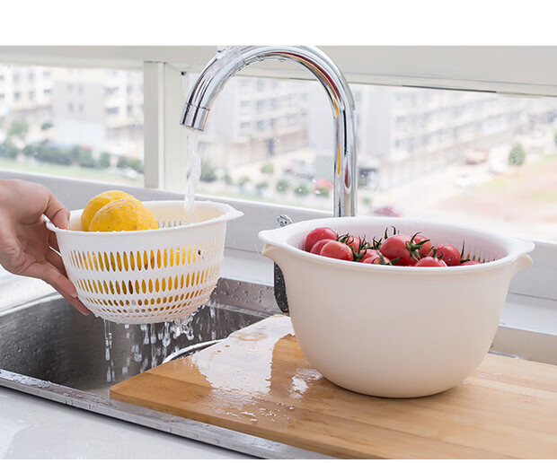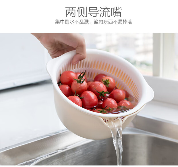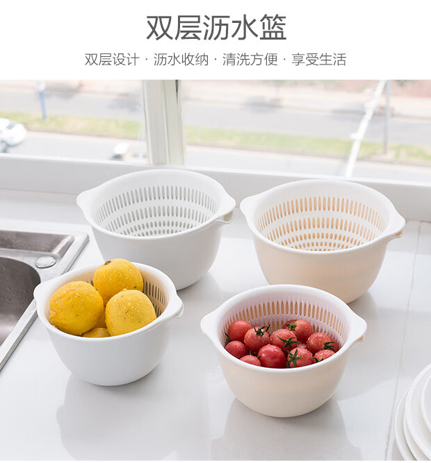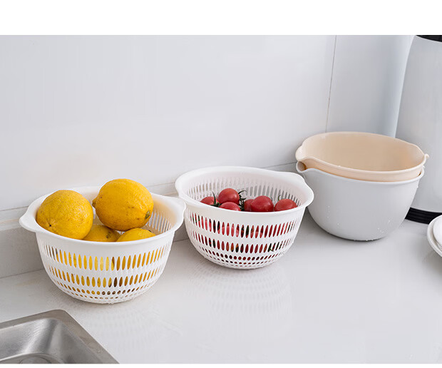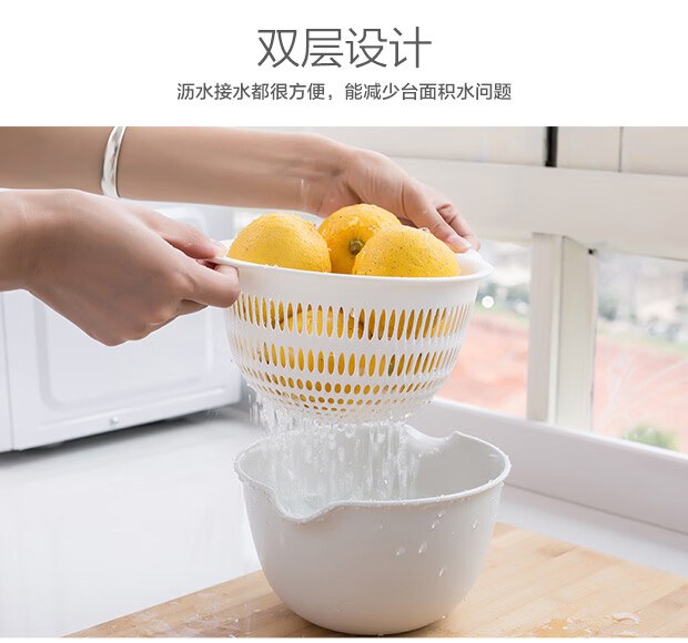 Yusenyi Washing Fruit Drain Basket Creative Double-layer Drain Basket Washing Basin Living Room Fruit Plate Home Vegetable Basket Washing Basket Small Light Gray