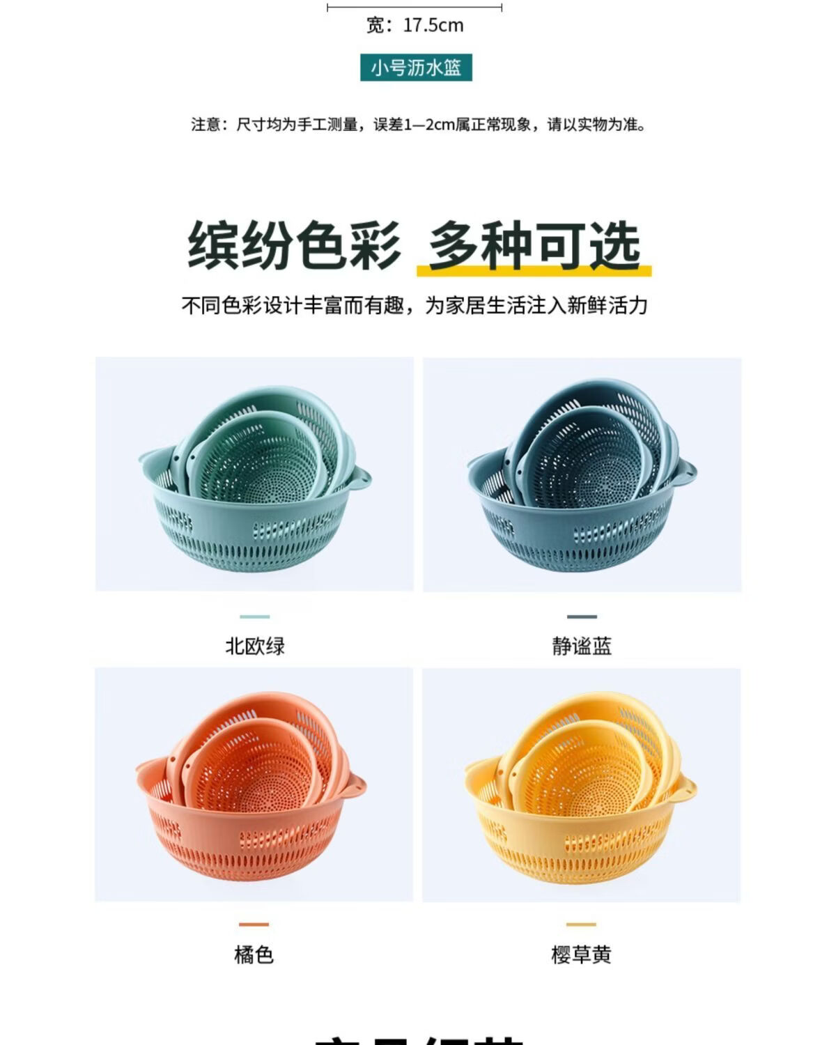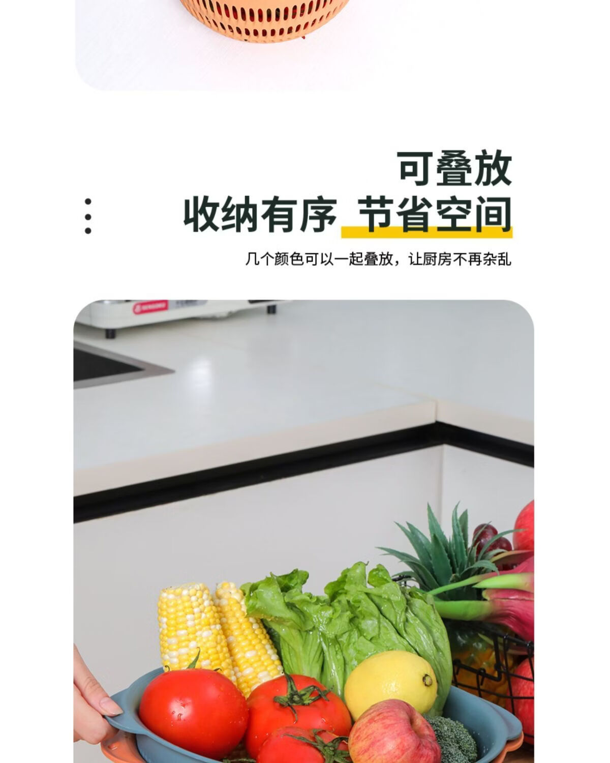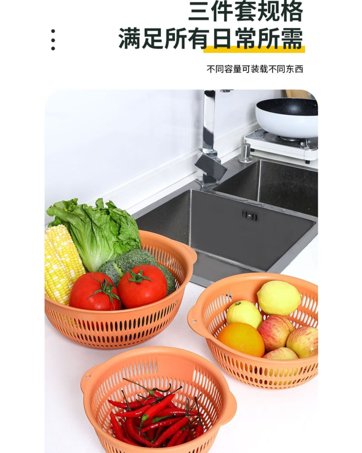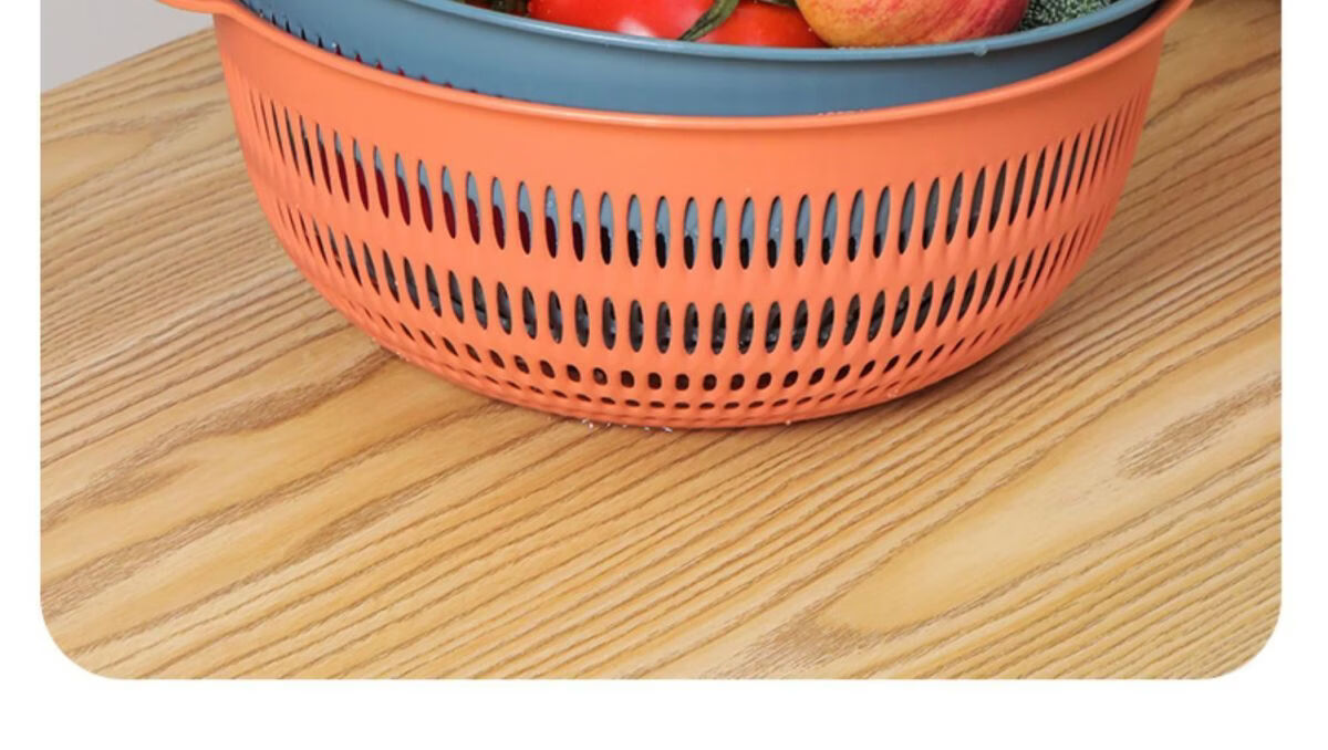 Yusenyi vegetable basket household vegetable washing basket 3-piece set kitchen drain basket plastic fruit storage basin fruit plate orange medium 1 piece