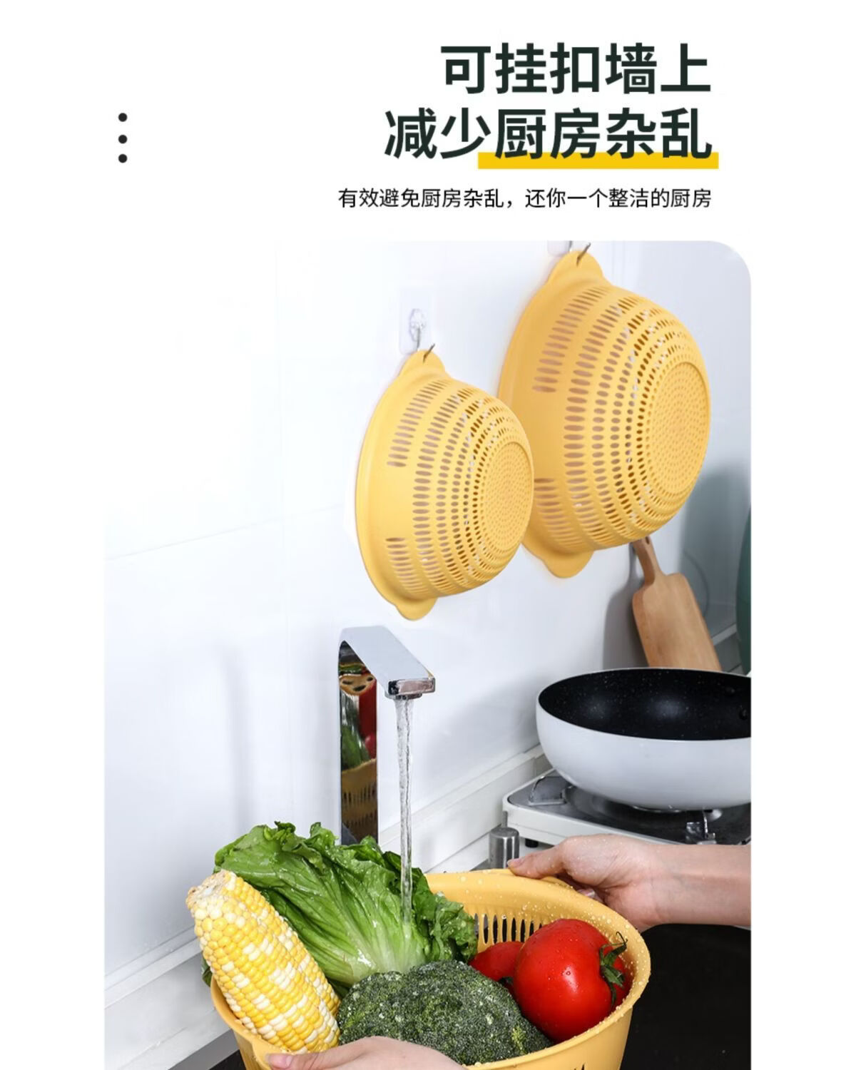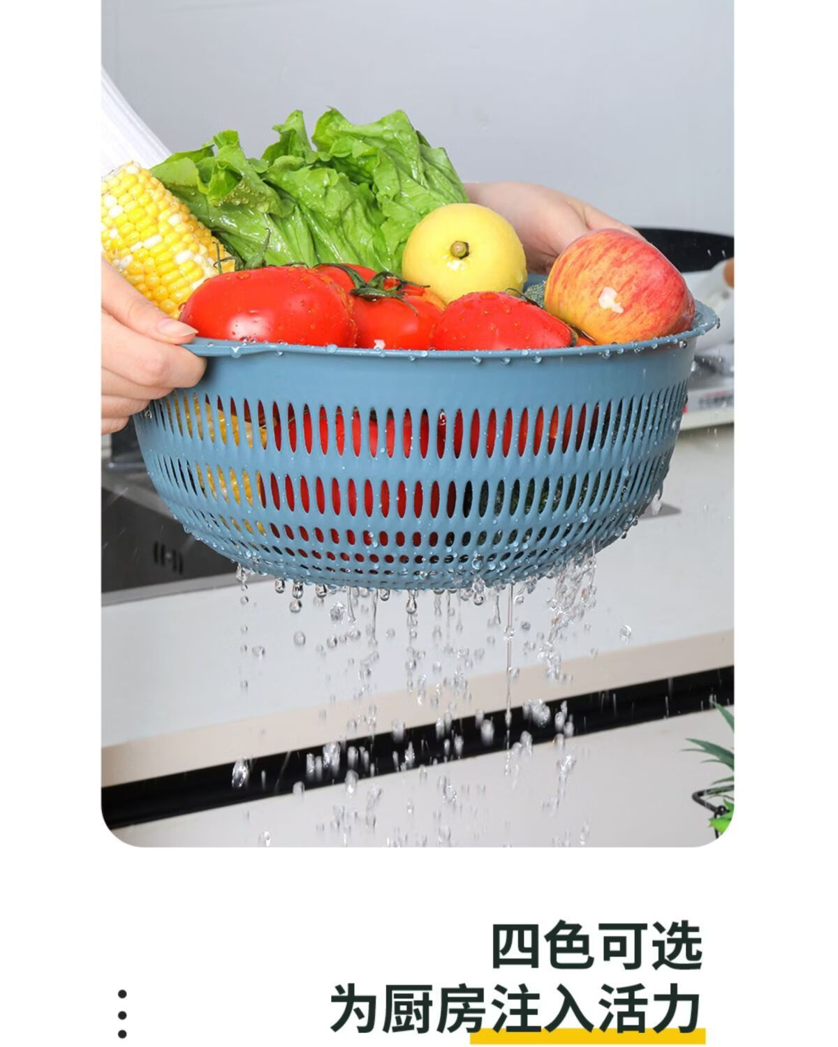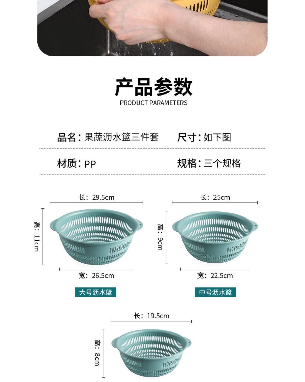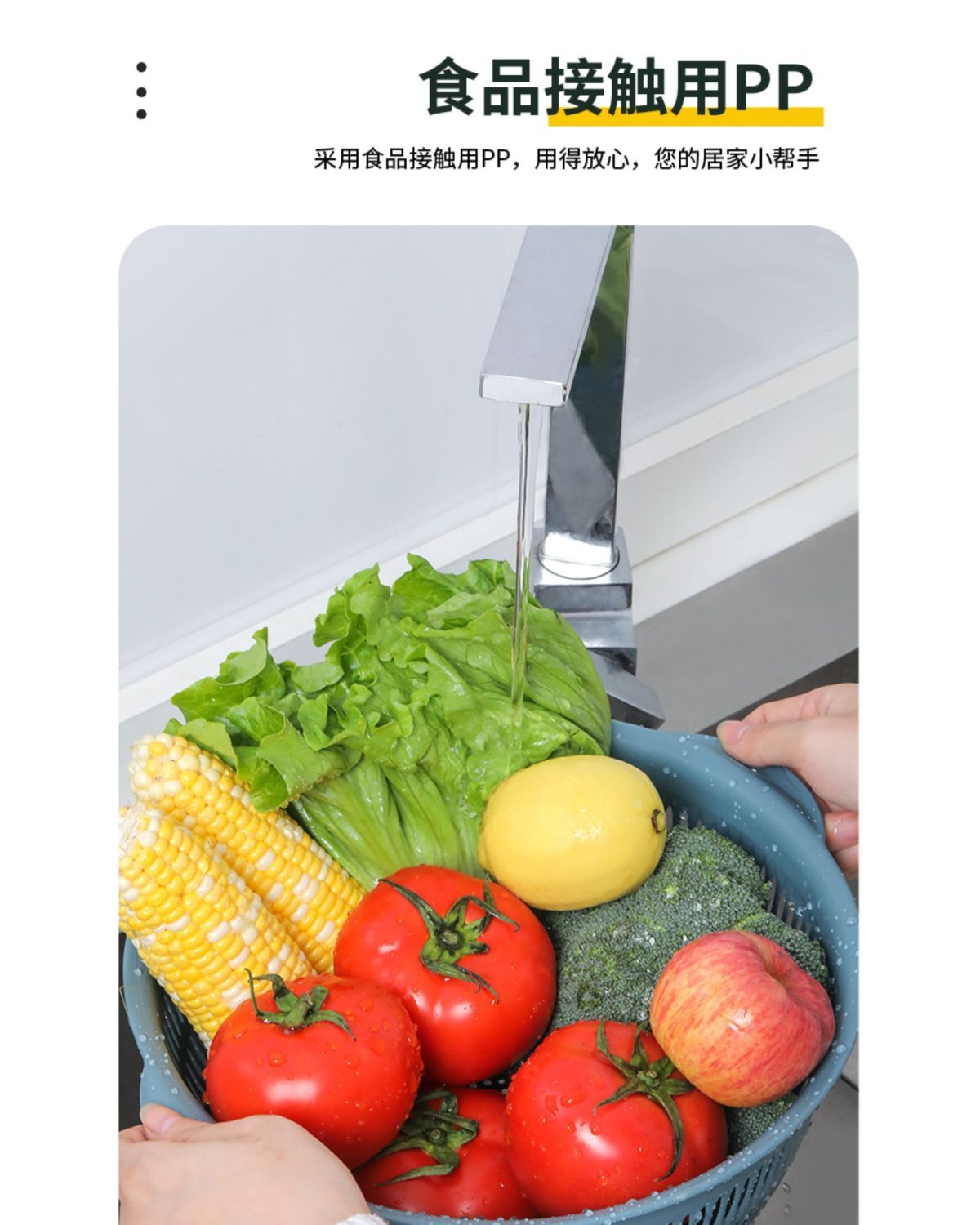 Yusenyi vegetable basket household vegetable washing basket 3-piece set kitchen drain basket plastic fruit storage basin fruit plate orange medium 1 piece