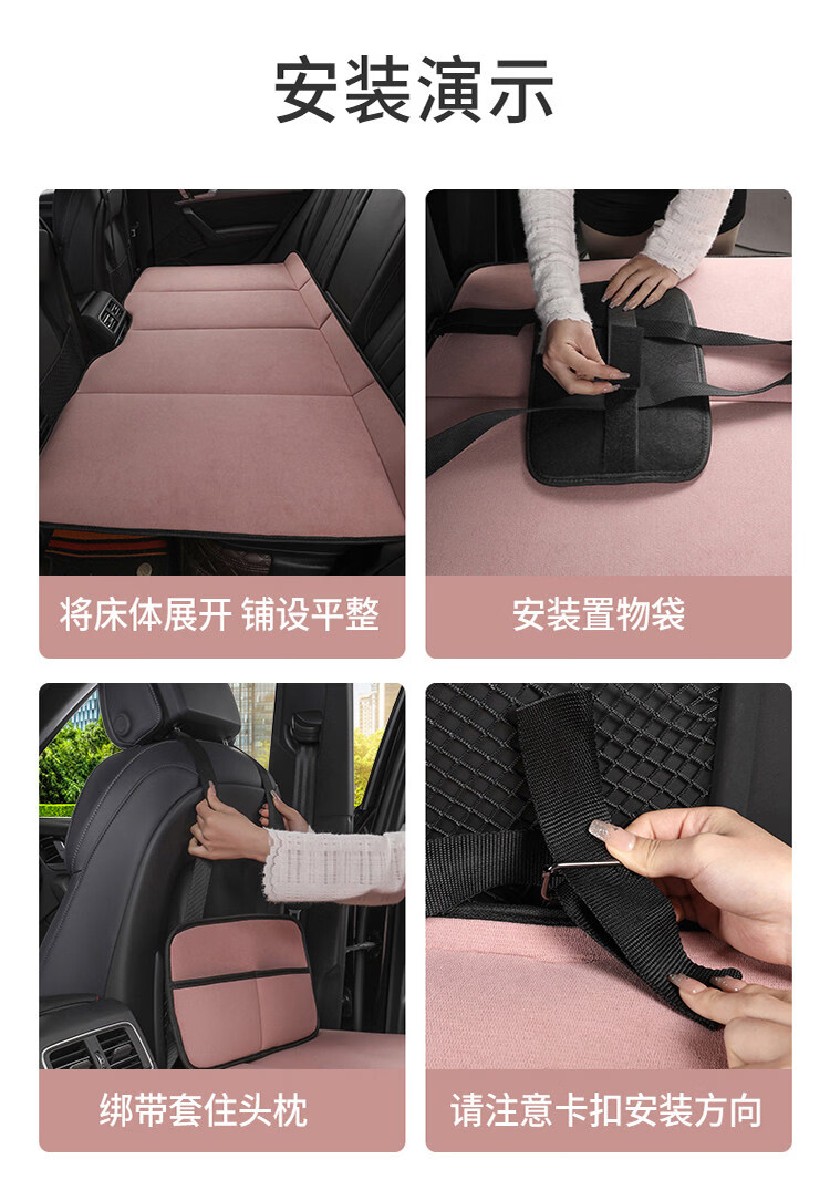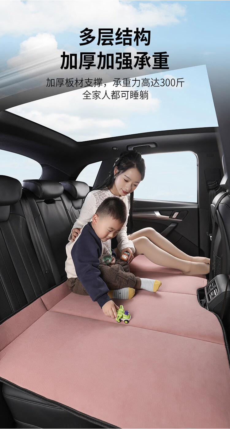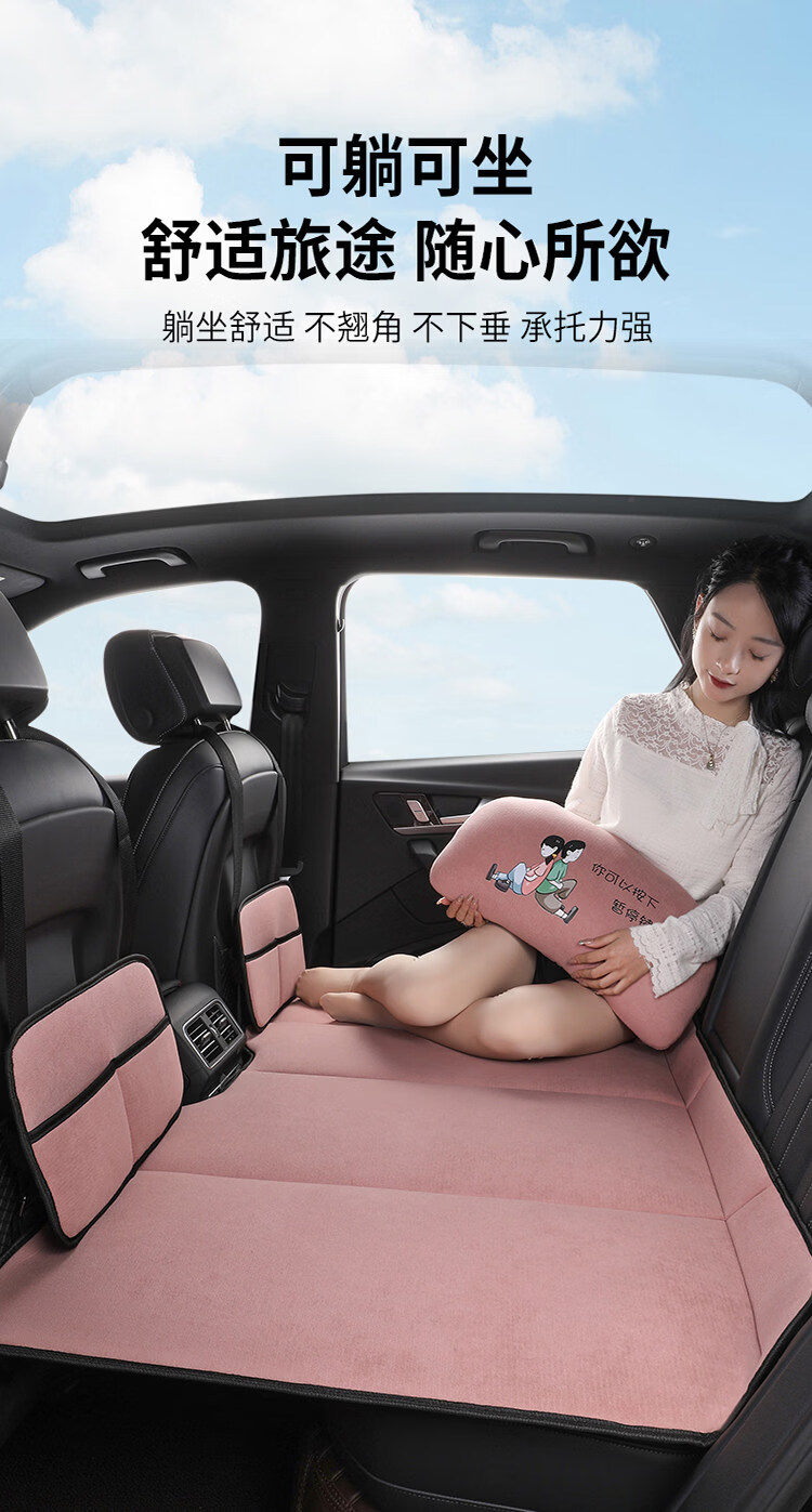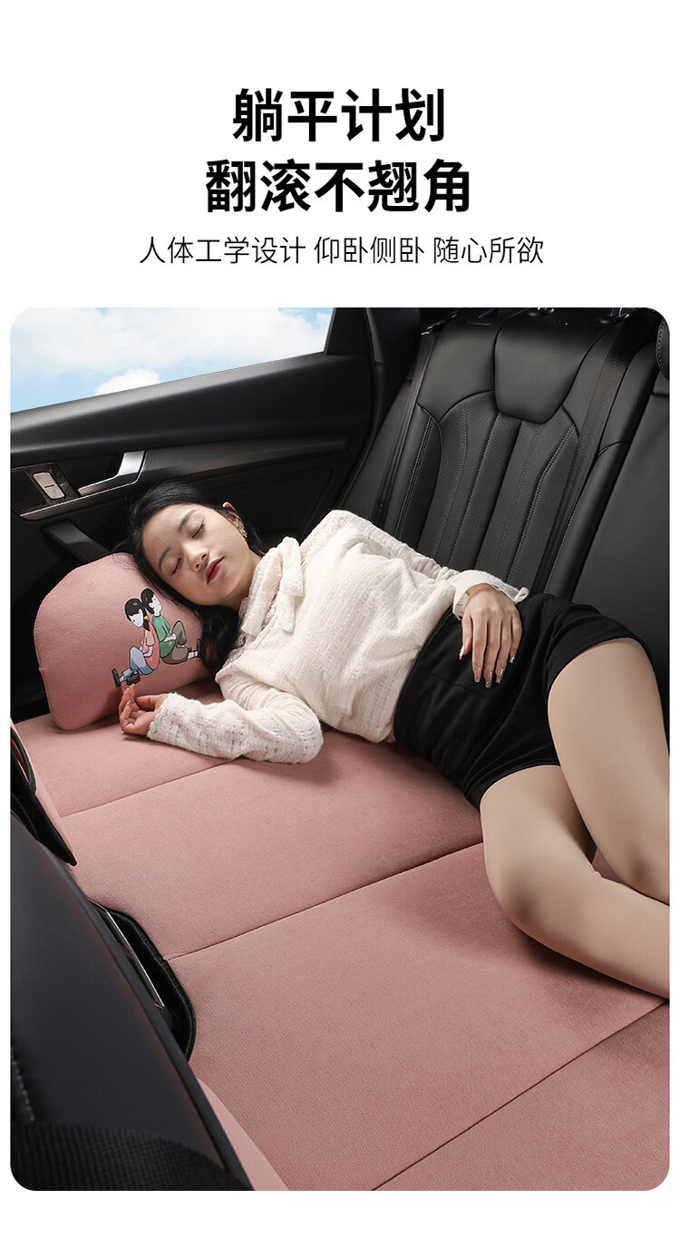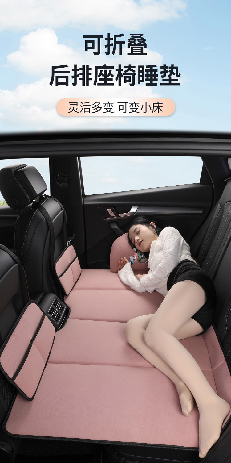 Gongma Car Rear Sleeping Mat Foldable Plush Back Seat Children's Car Travel Mattress SUV Car Sleeping Artifact Chenille Romantic Pink Regular Size 80*130cm