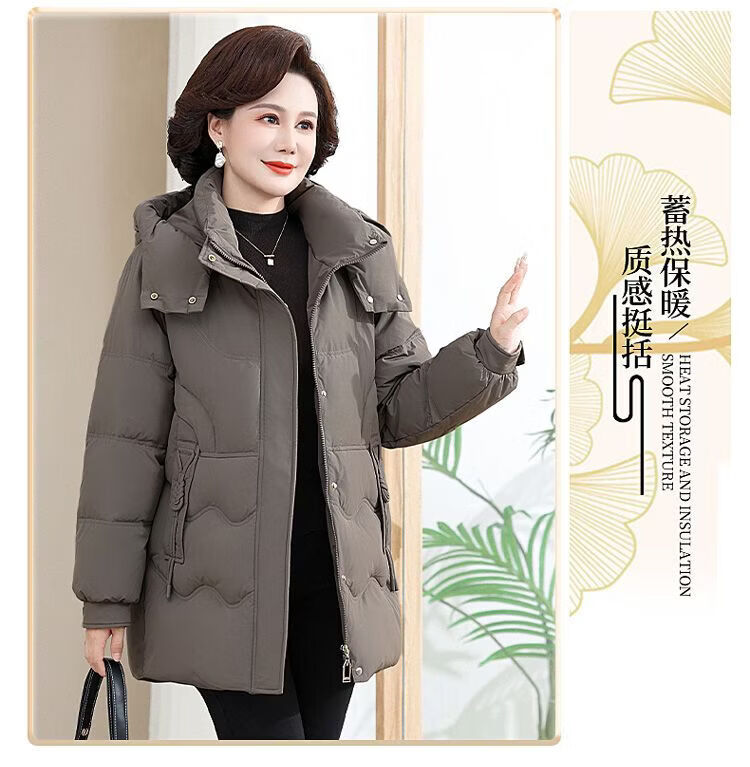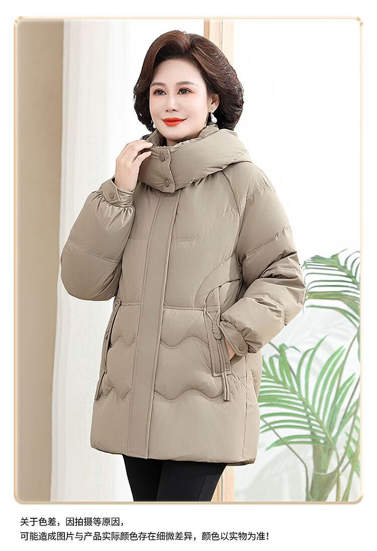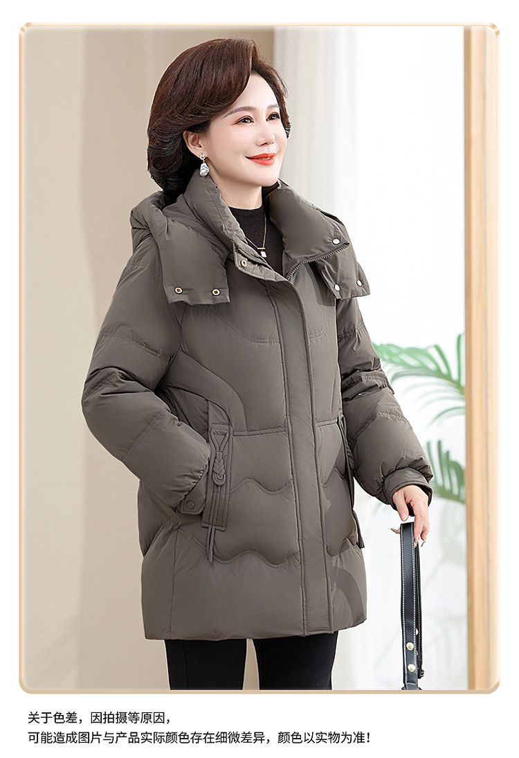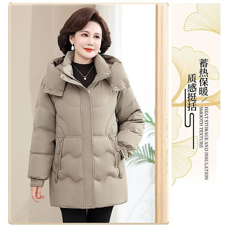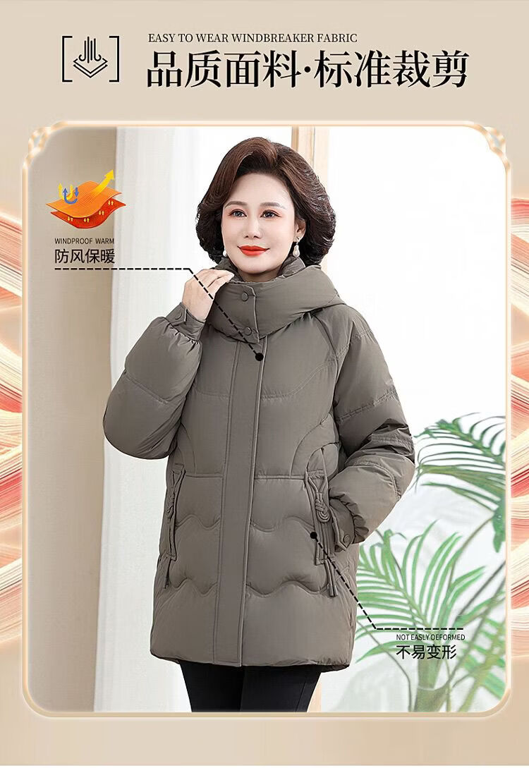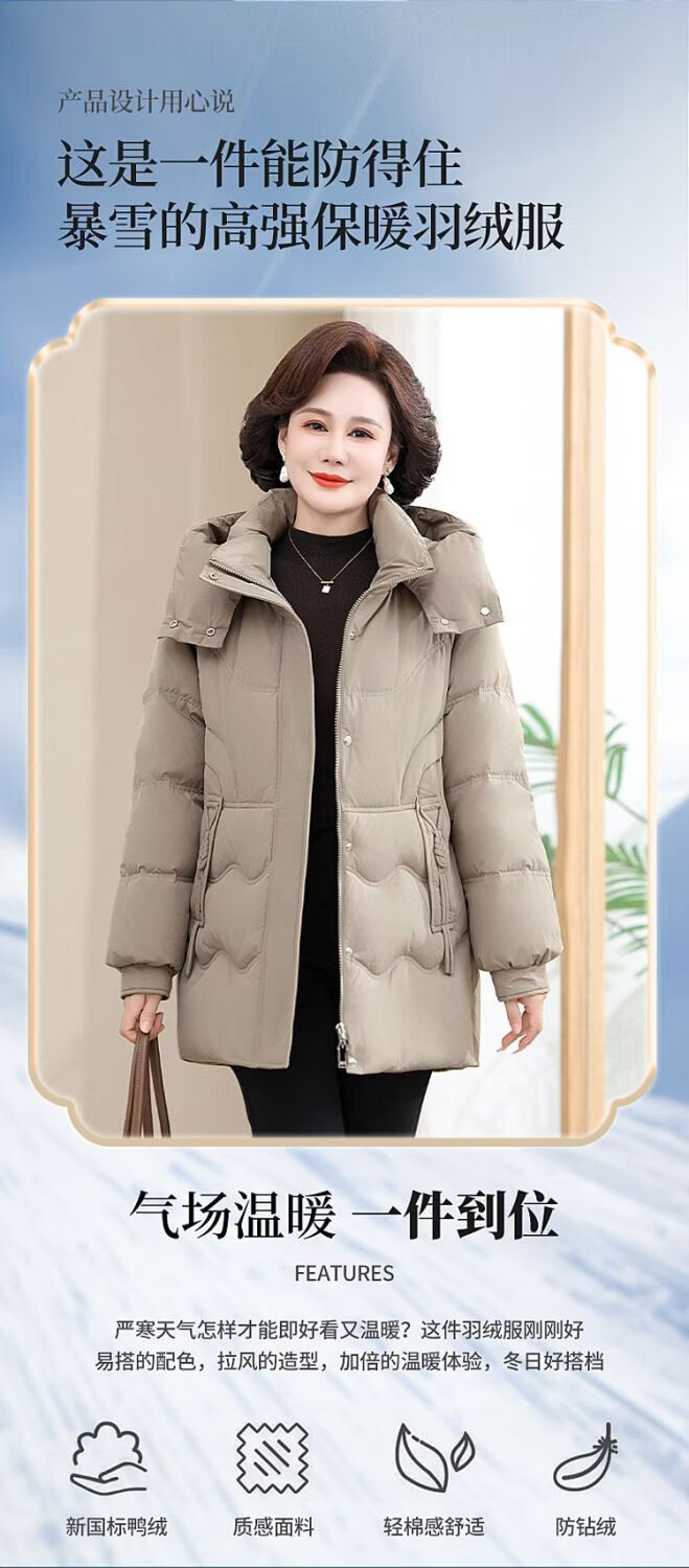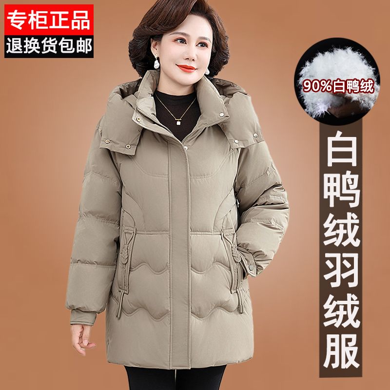 ROMON Famous Brand Down Jacket Women's Medium Long White Duck Down Middle-aged Mom Winter Thickened Warm Loose Large Jacket Khaki Removable Cap 2XL Recommended 109-125 Jin Jin equals 0.5 kg