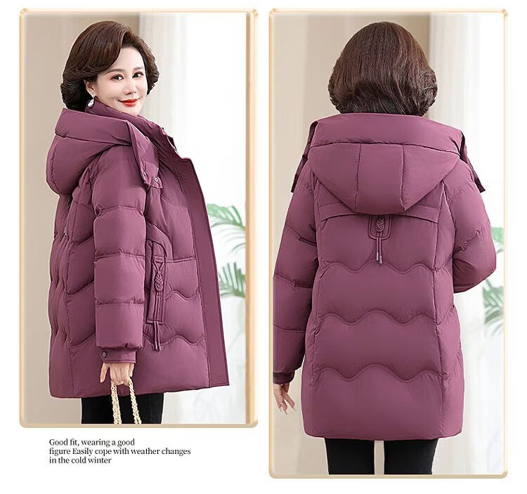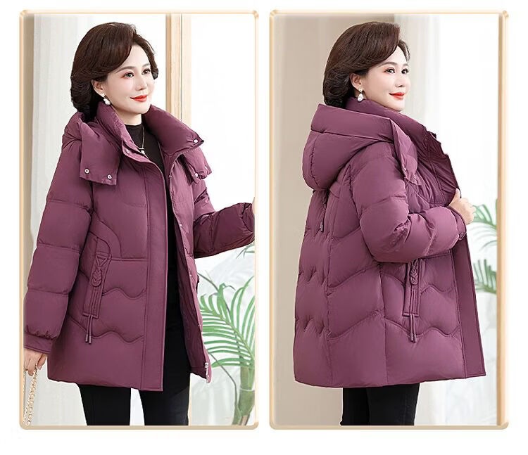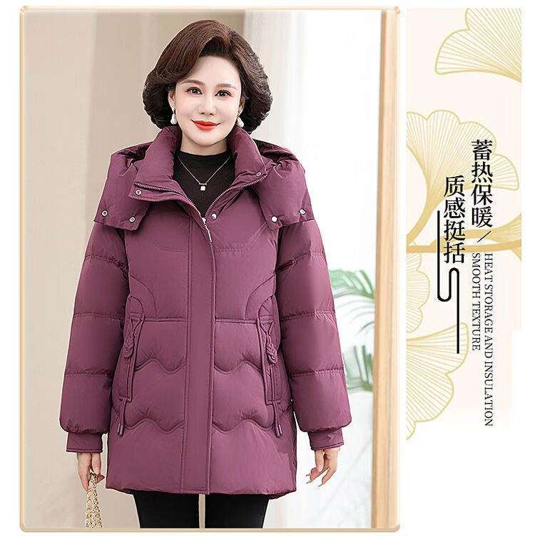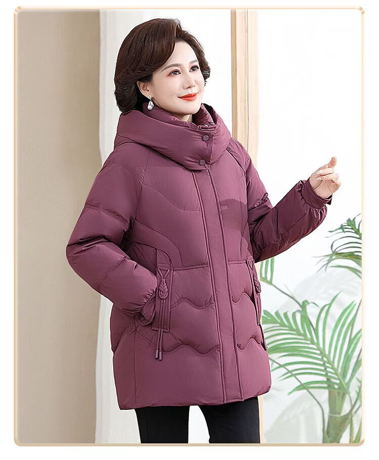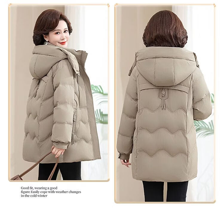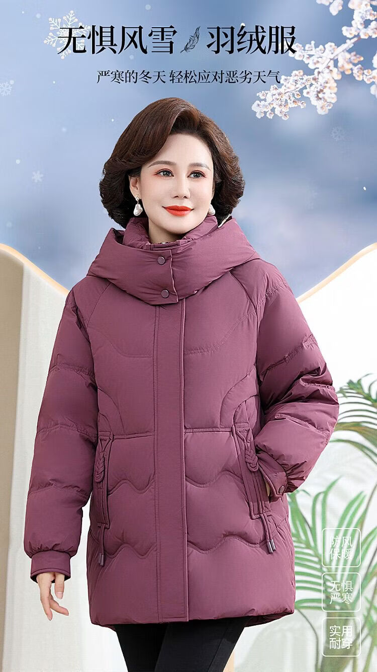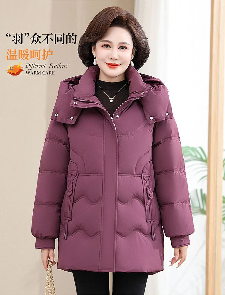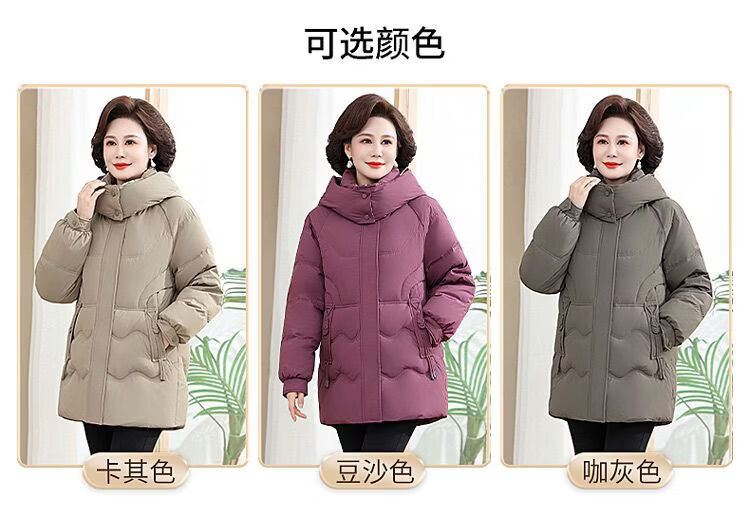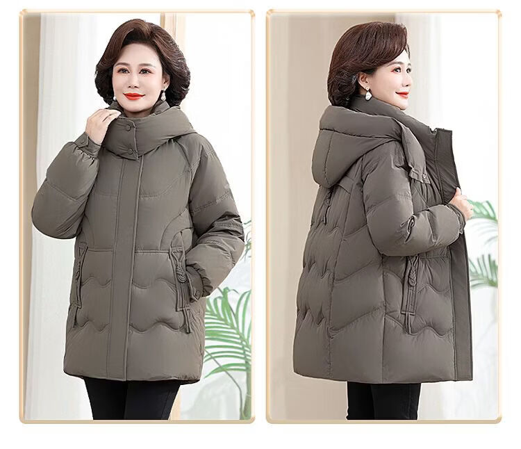 ROMON Famous Brand Down Jacket Women's Medium Long White Duck Down Middle-aged Mom Winter Thickened Warm Loose Large Jacket Khaki Removable Cap 2XL Recommended 109-125 Jin Jin equals 0.5 kg
