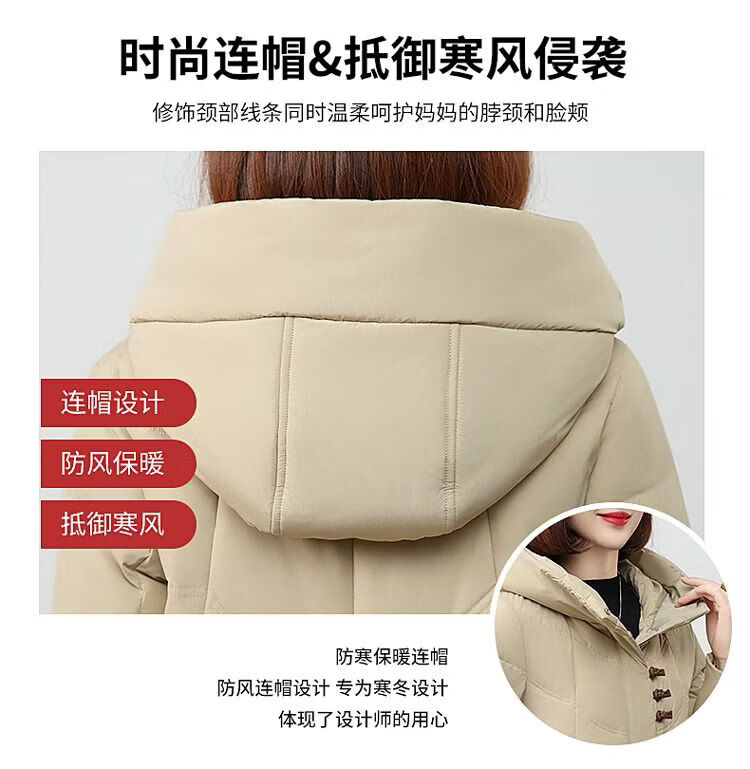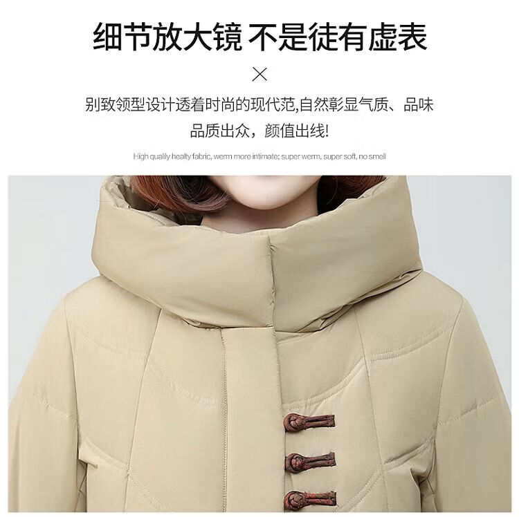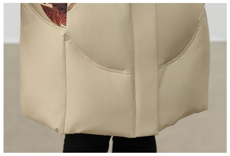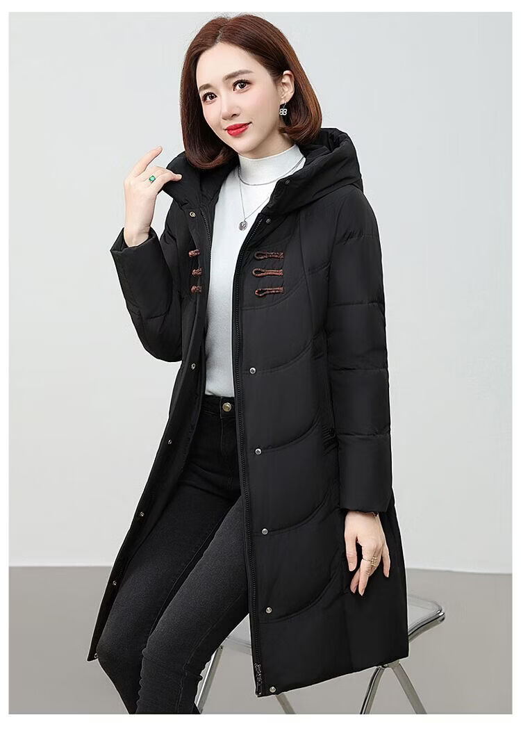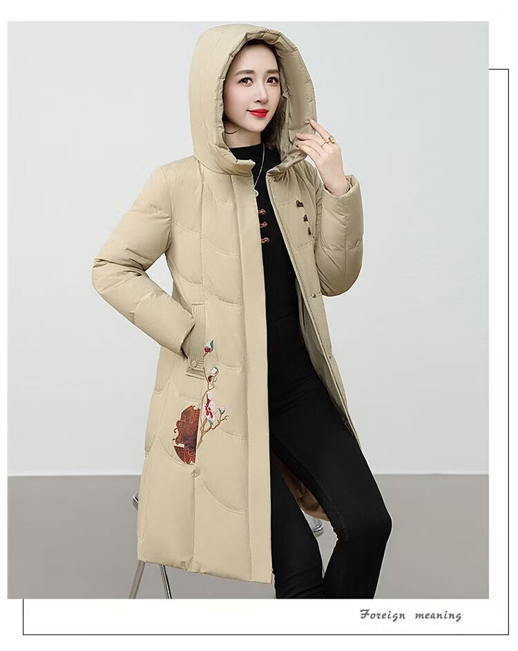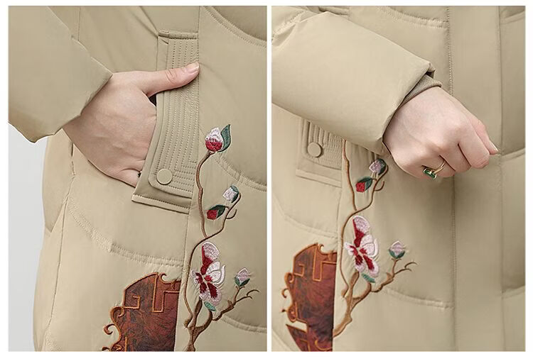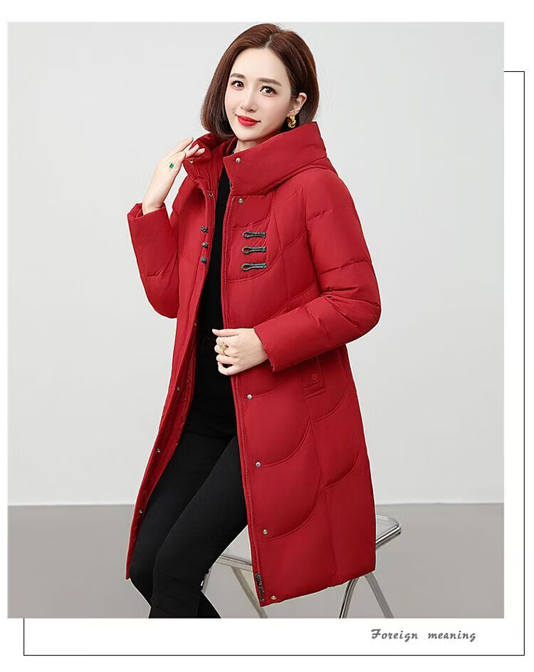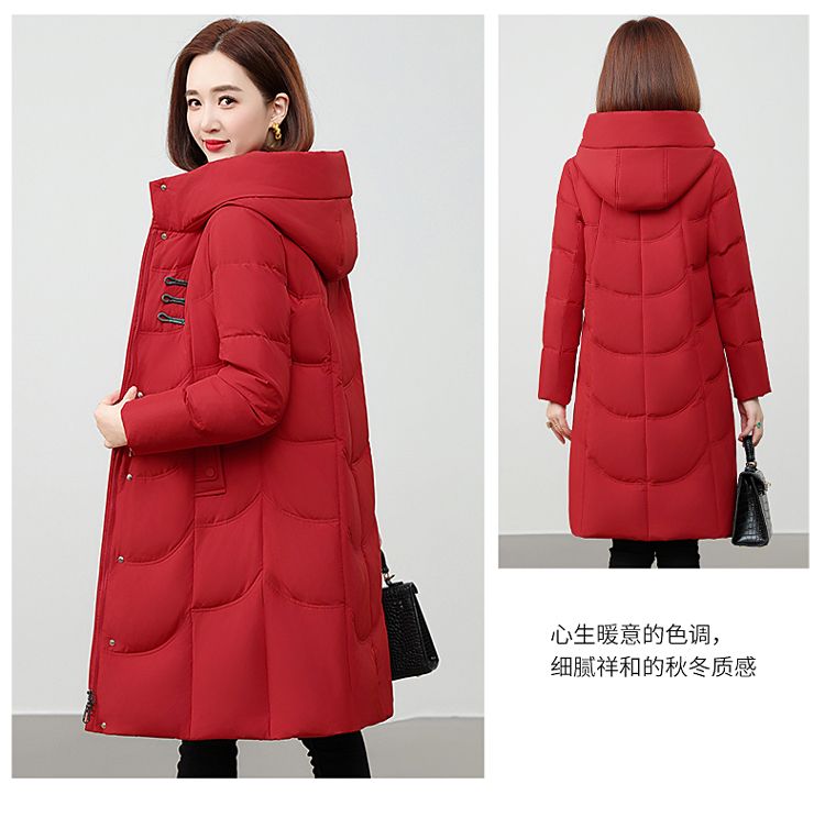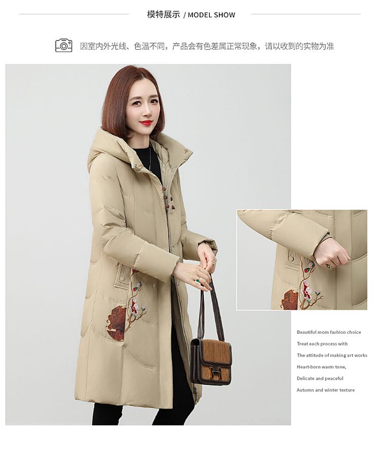 ROMON authentic brand red down jacket new Chinese style mid-length over-the-knee thickened warm embroidered hooded jacket mother's outfit red 2XL recommended 111-125 Jin Jin equals 0.5 kg