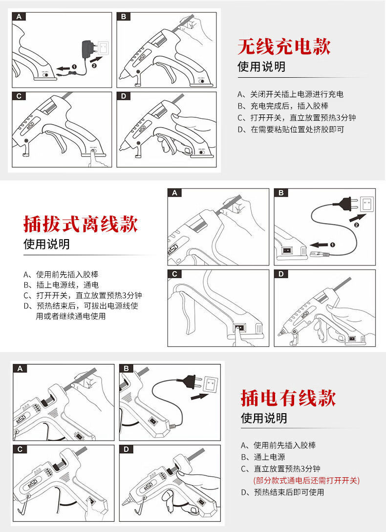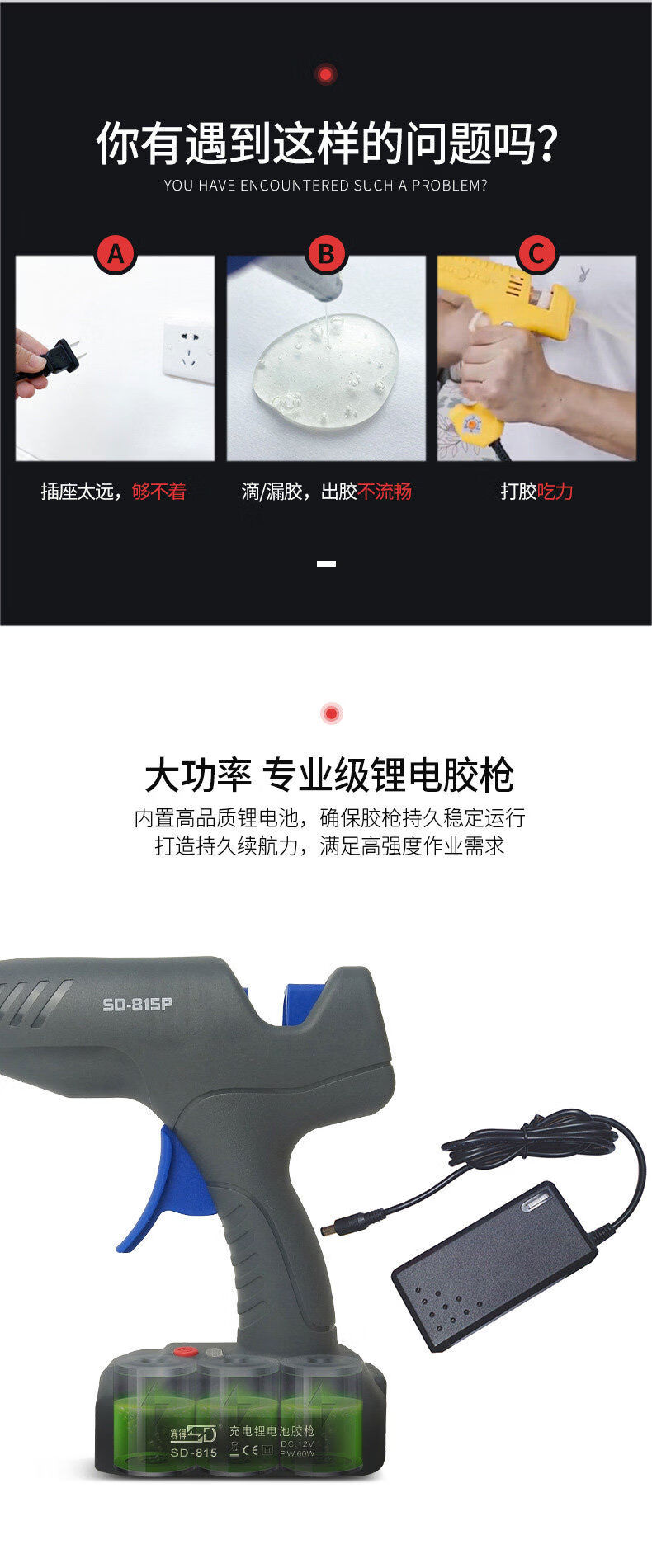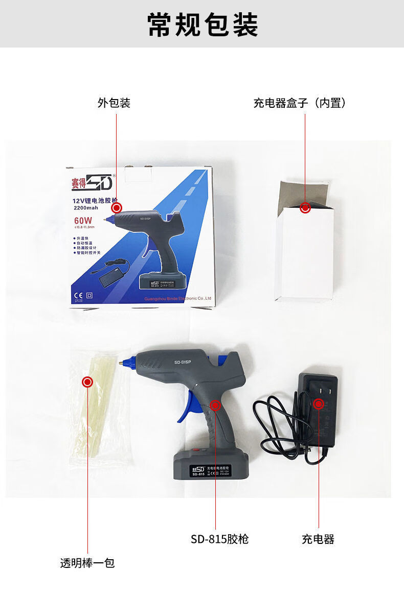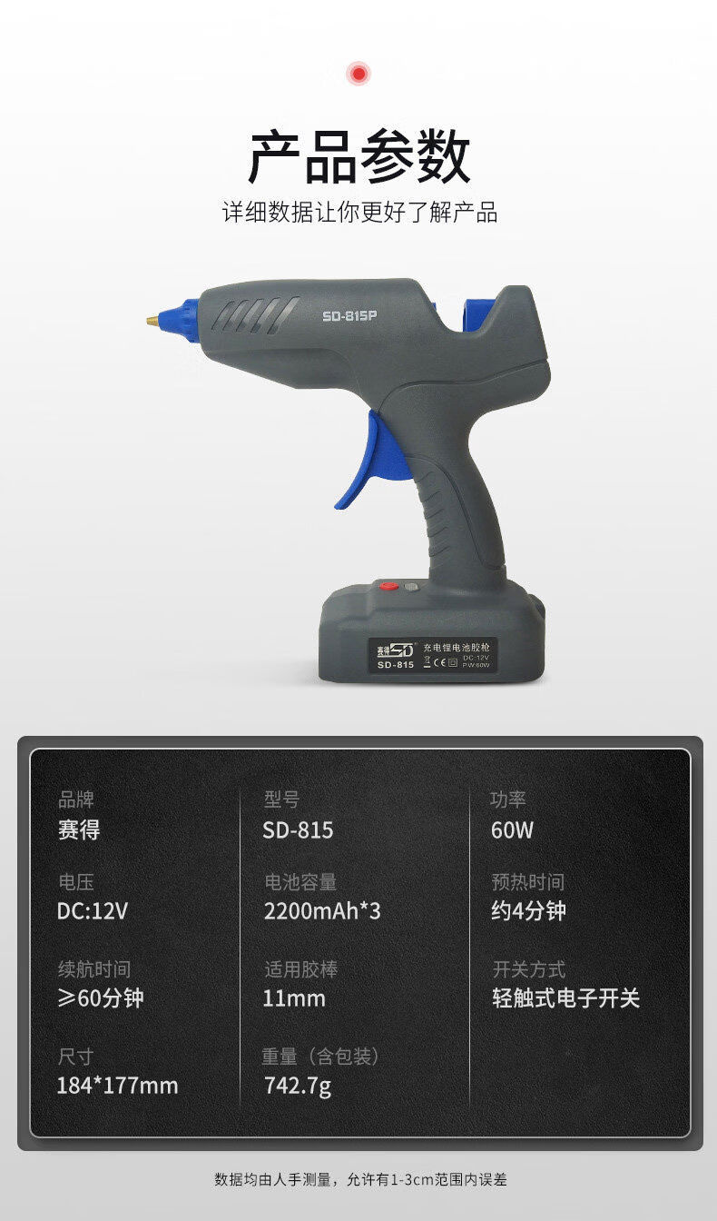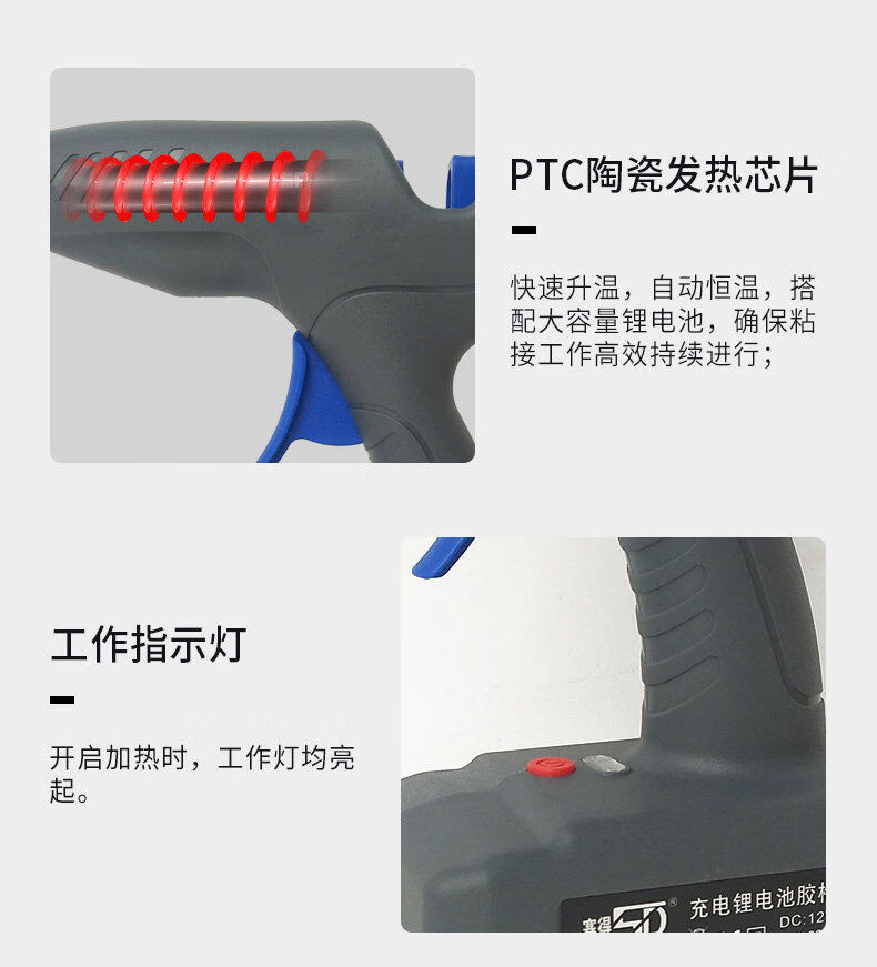 Jieyunmao hot melt glue household high-power manual hot melt glue wireless lithium battery glue SD81560W charging glue SD-815 hot melt glue wireless lithium battery model 60W gray