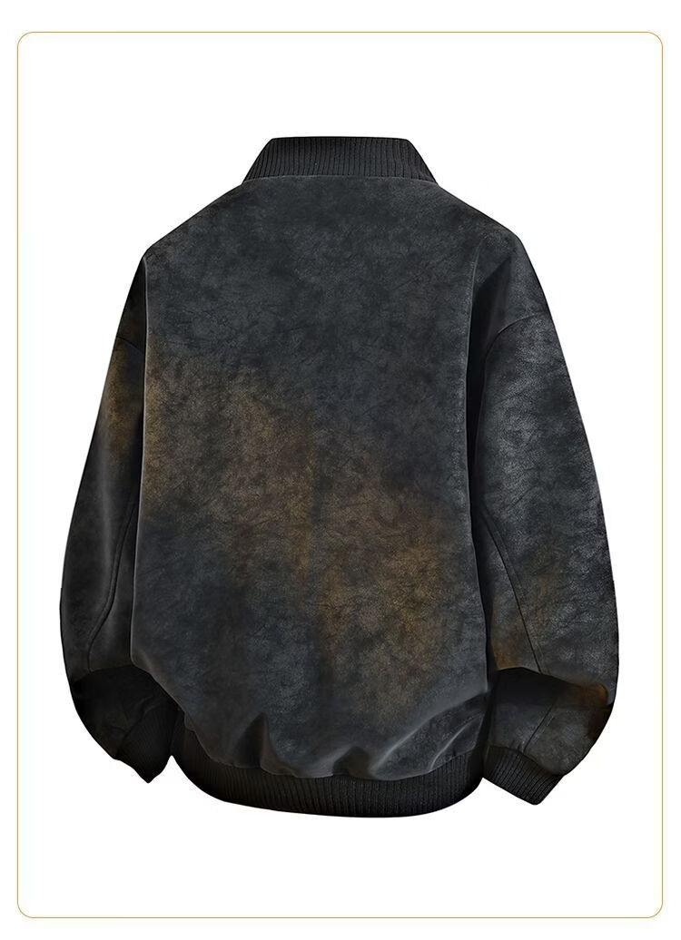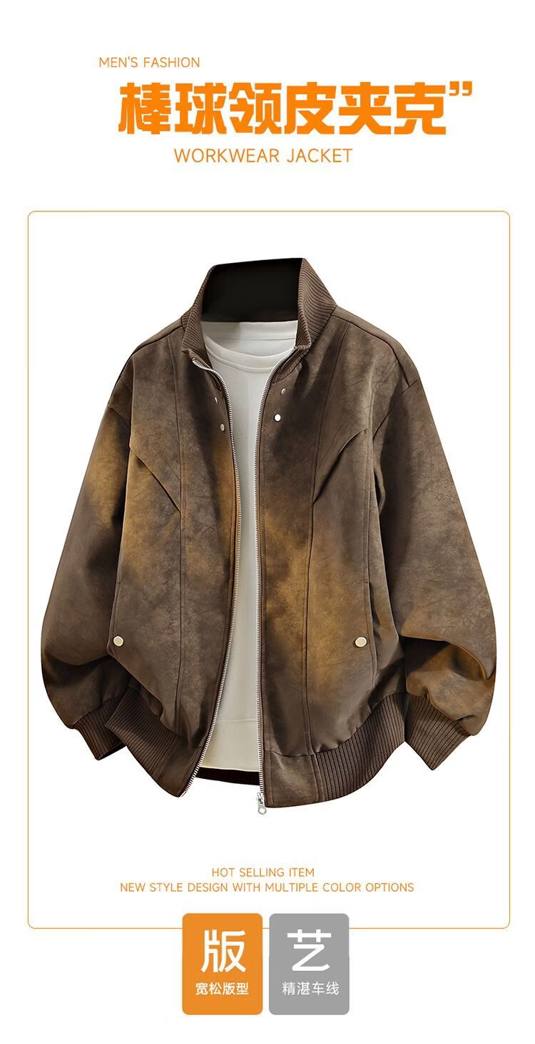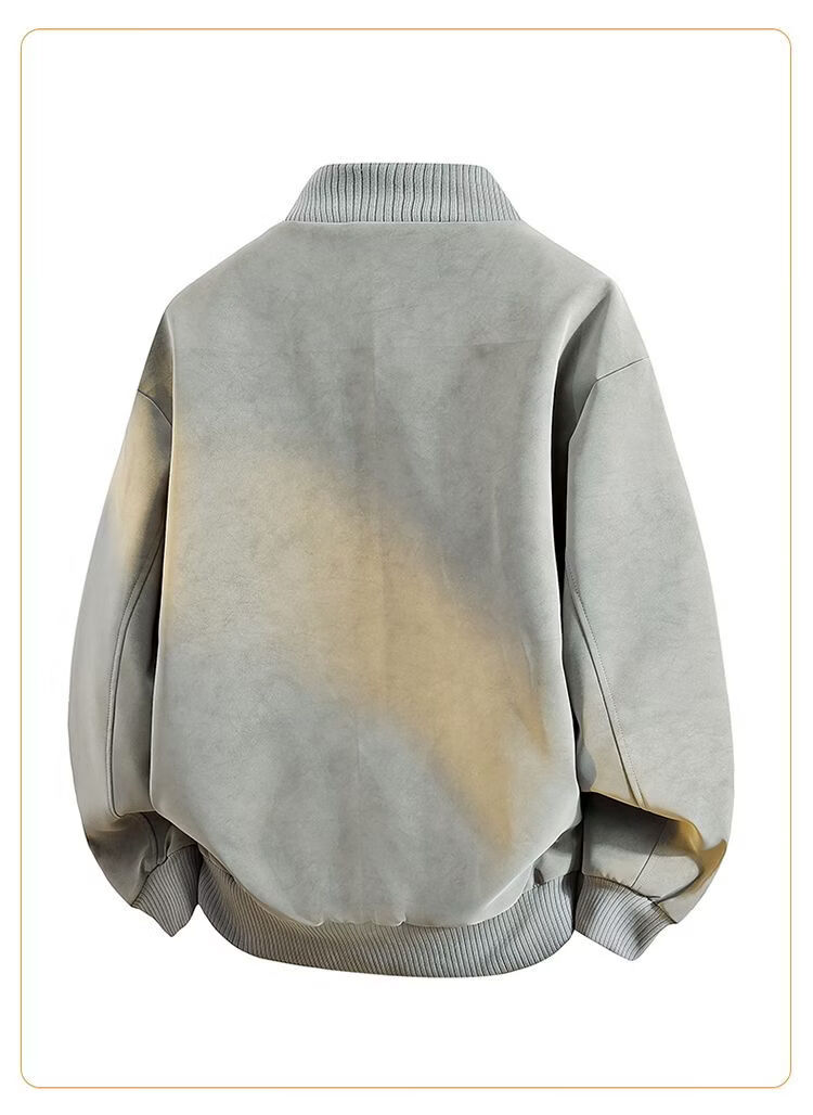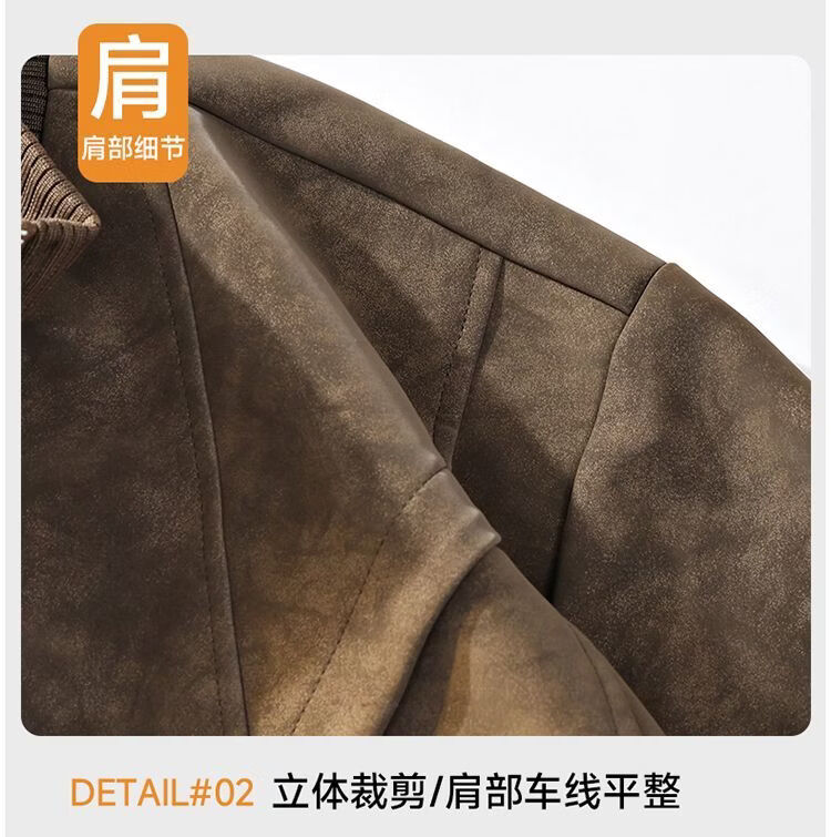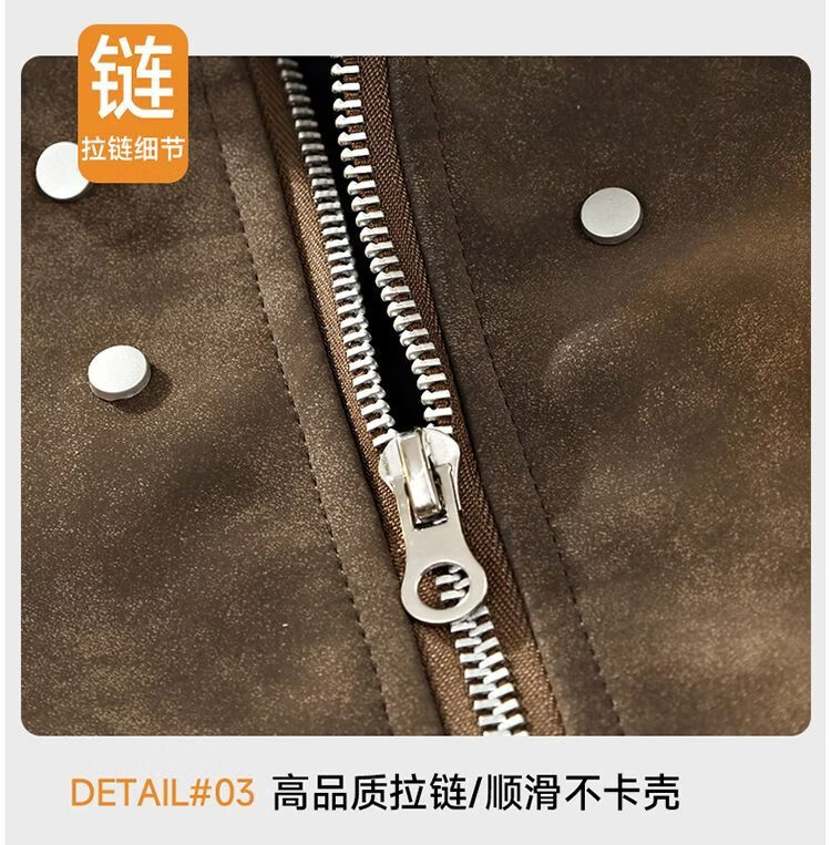 WPP American Rib Stand Collar Pilot PU Leather Jacket Men's Autumn and Winter Riveted Large Size Velvet Thickened Jacket Velvet Style - Light Gray M Recommended 90-110 Jin Jin equals 0.5 kg
