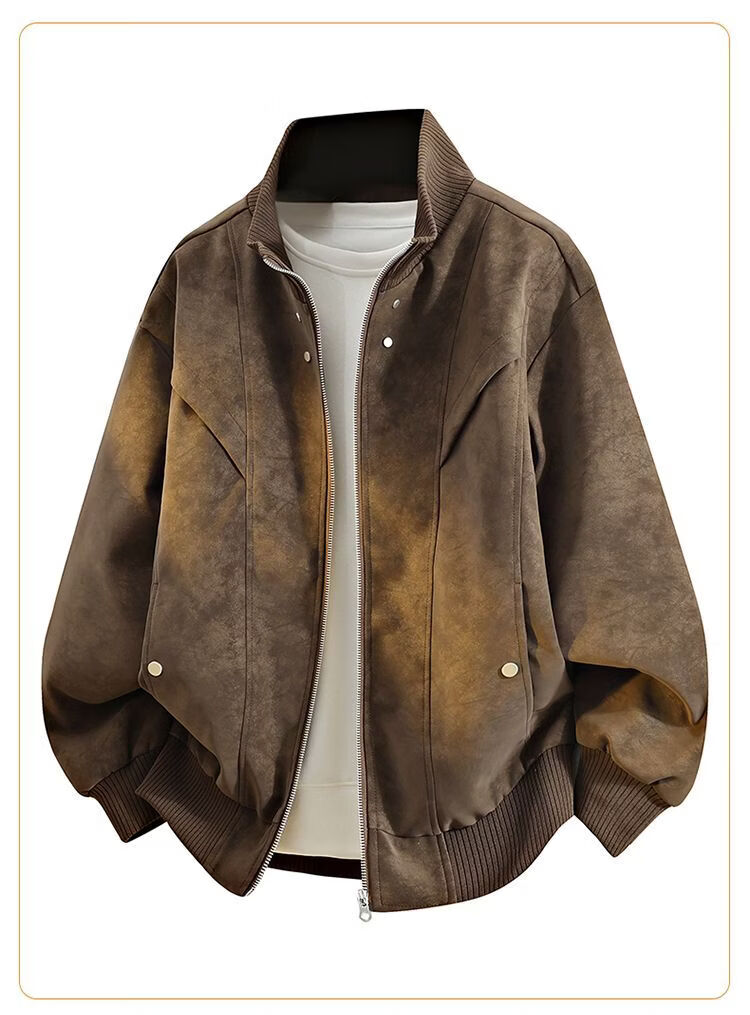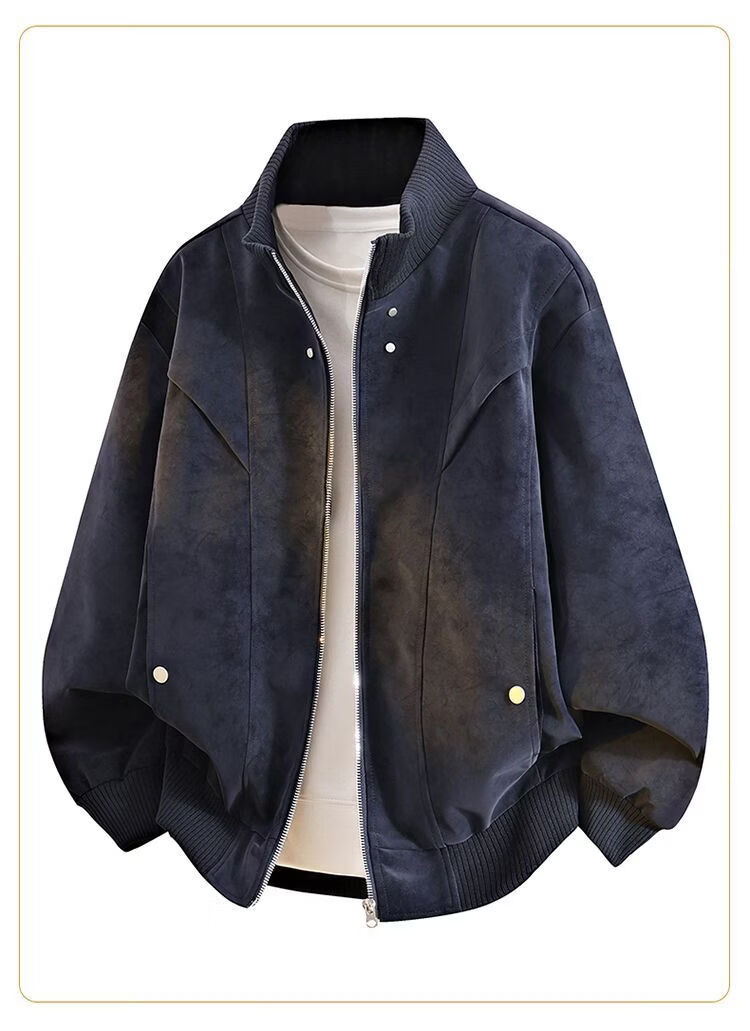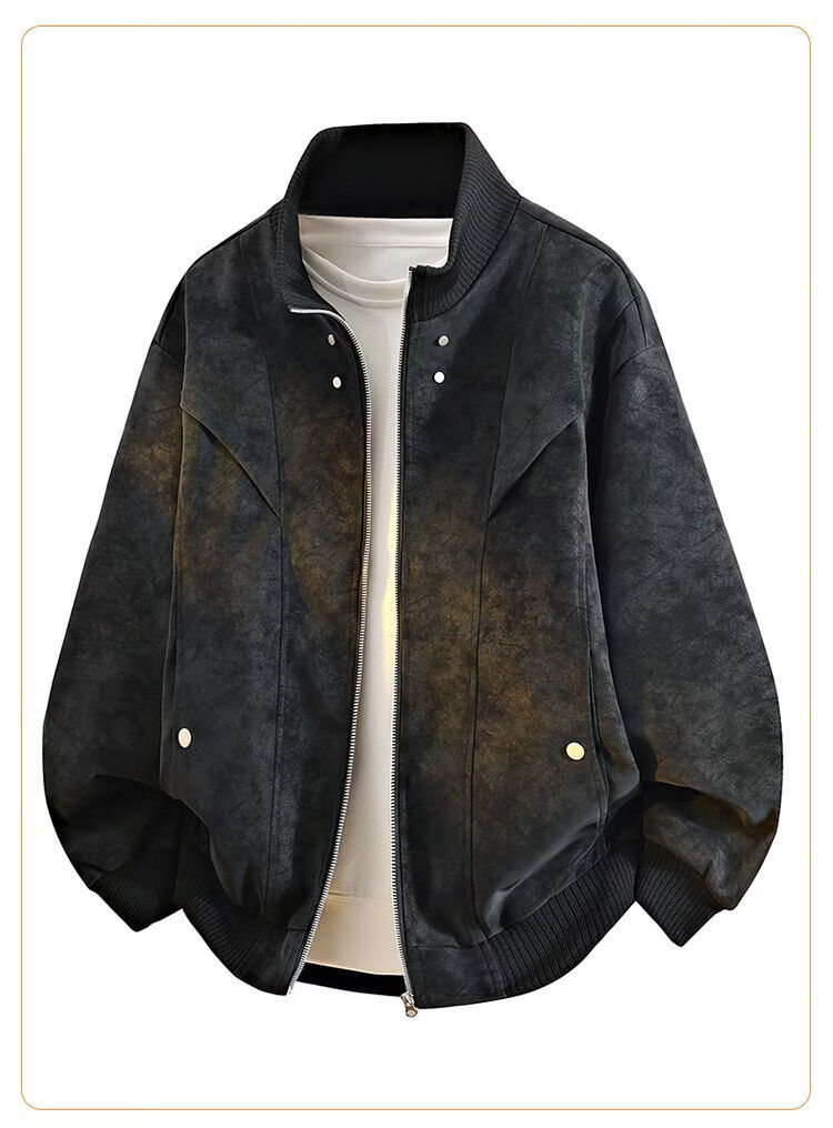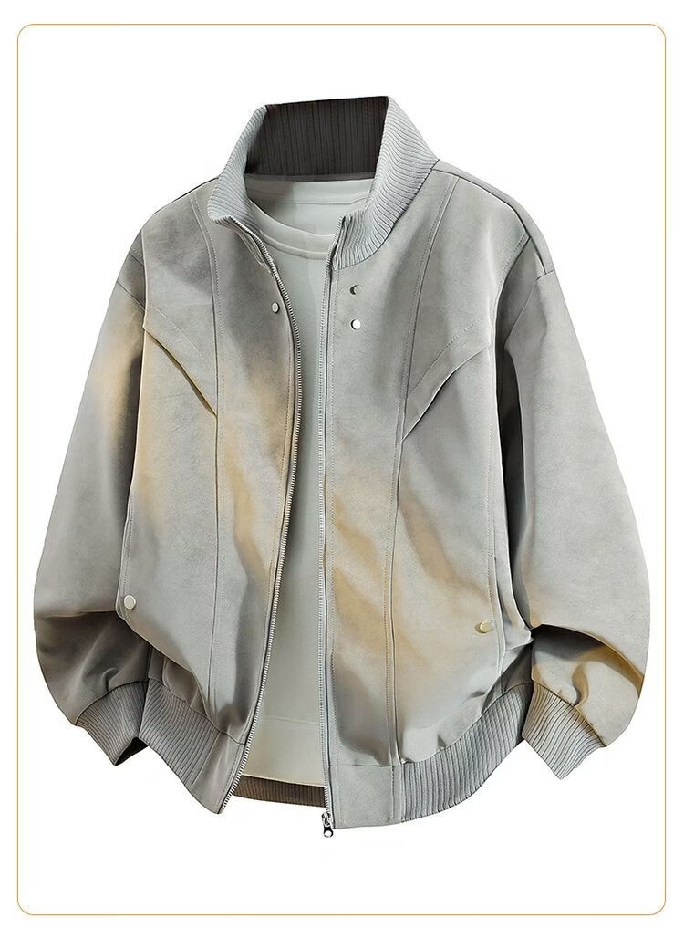 WPP American Rib Stand Collar Pilot PU Leather Jacket Men's Autumn and Winter Riveted Large Size Velvet Thickened Jacket Velvet Style - Light Gray M Recommended 90-110 Jin Jin equals 0.5 kg
