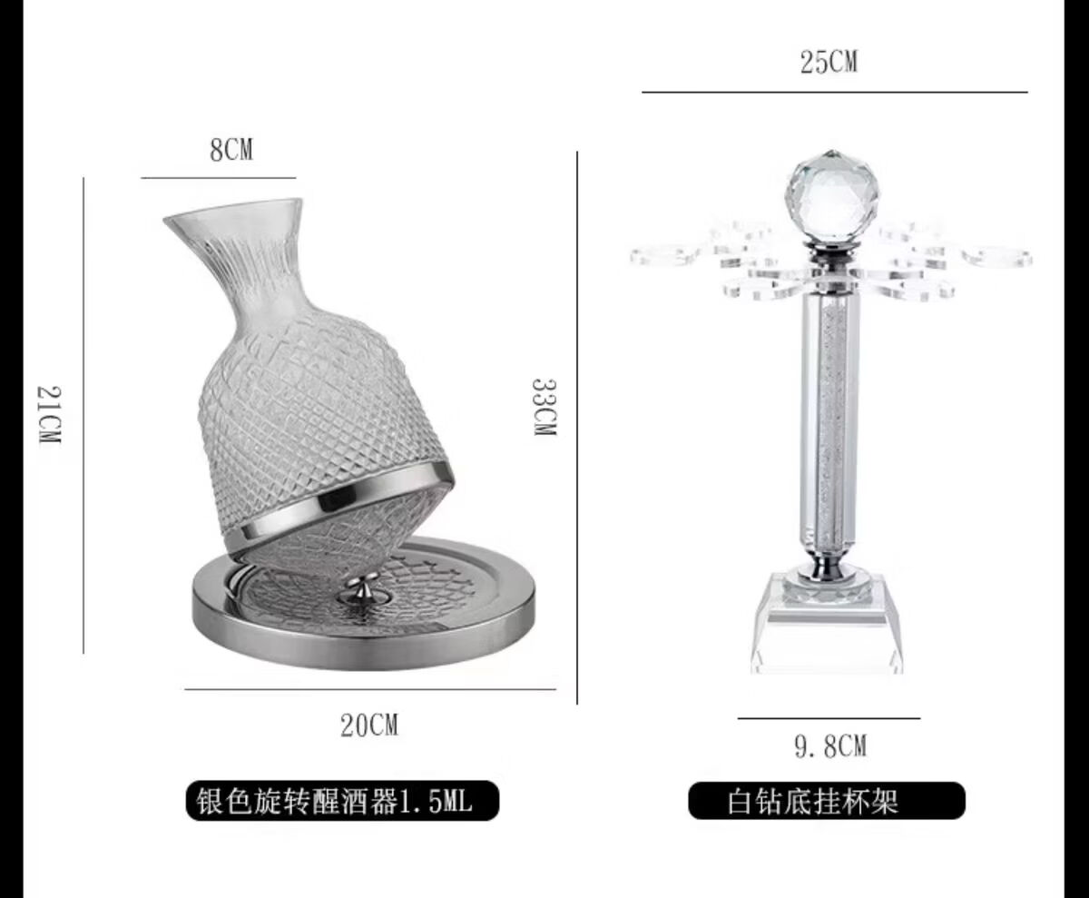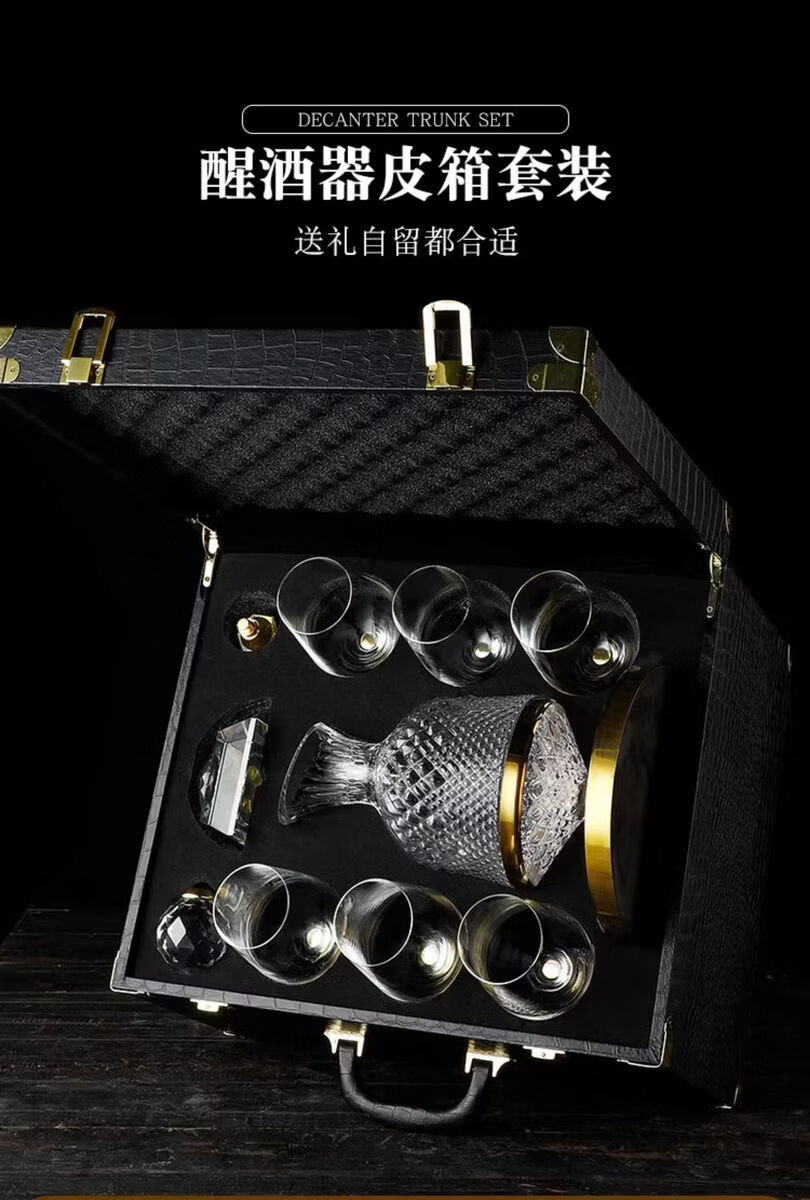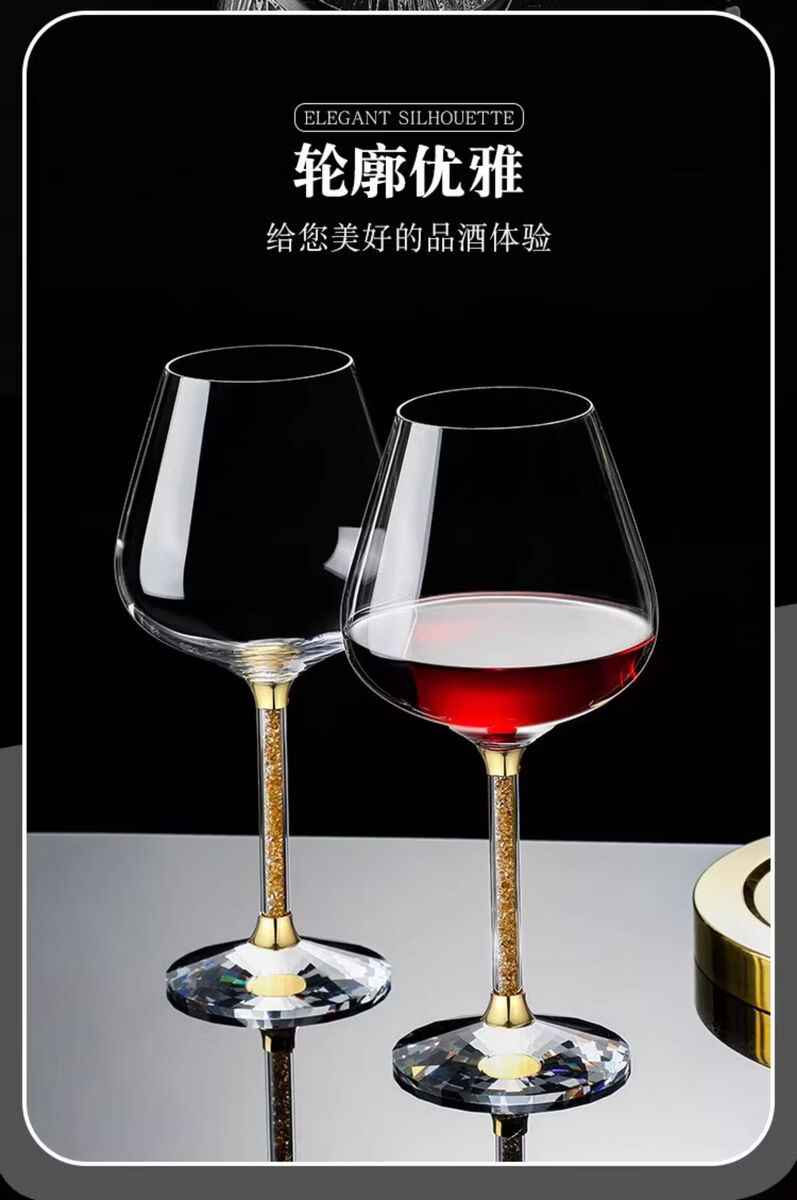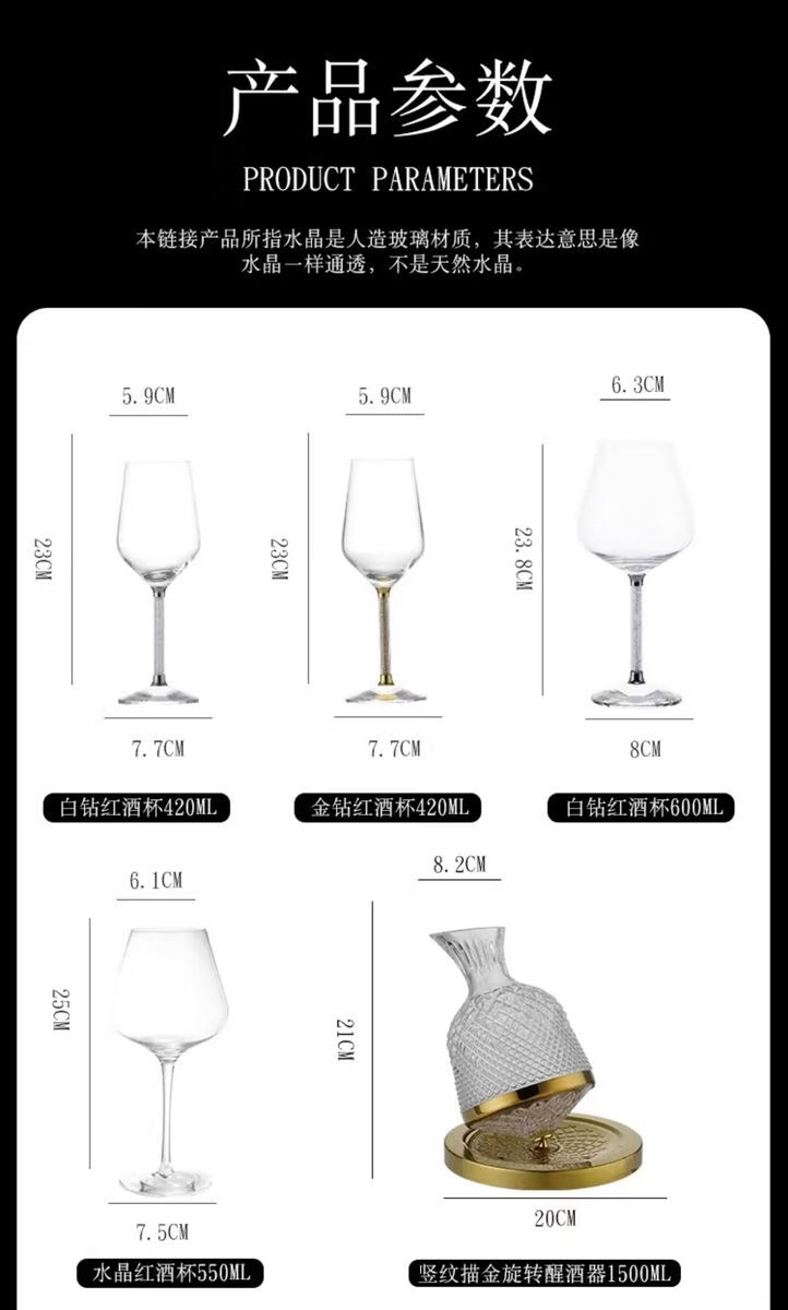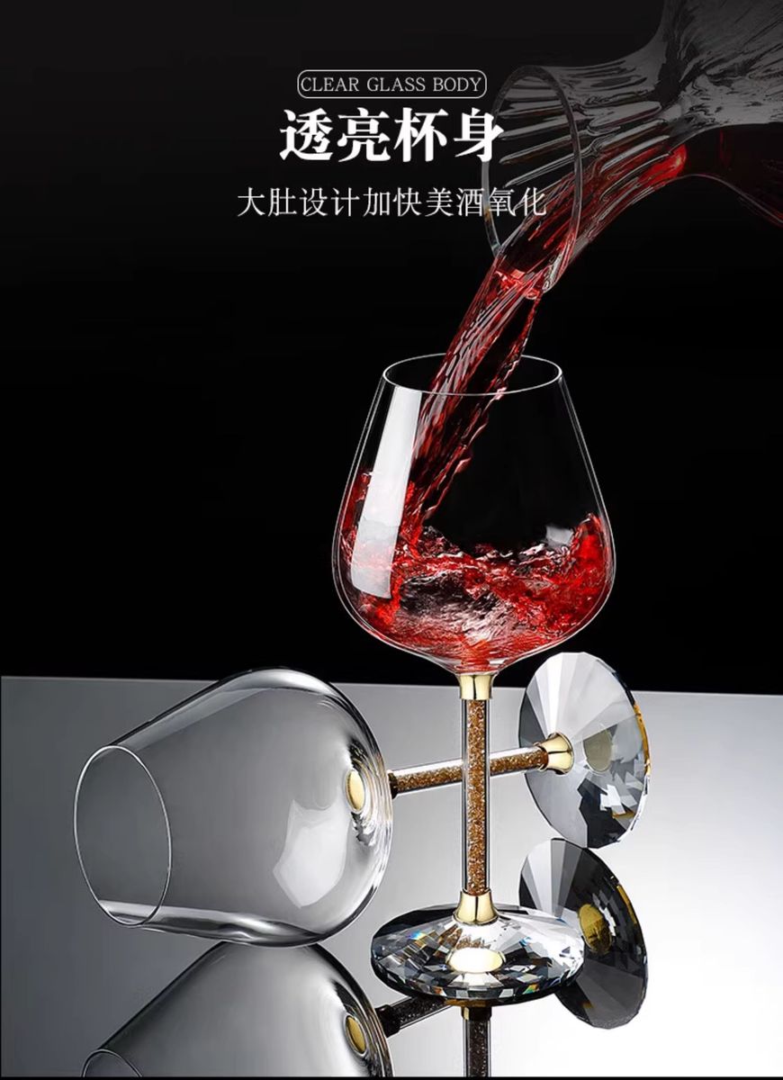 Fantasy Golden Diamond Red Wine Glass Set Decanter Wine Glass Ornaments as Gifts Main Image Eight-piece Set 600ml Gold Diamond Red Wine Glass x6 + Gold Decanter