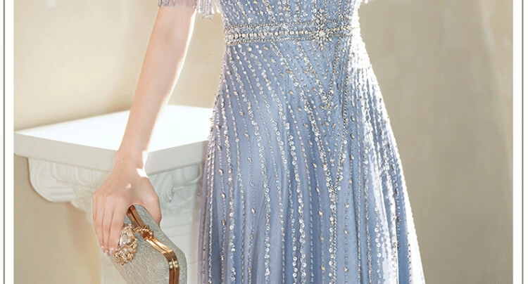 LISM Designer International Light Luxury Brand Evening Dress High-end Light Luxury Niche 2026 Temperament Happy Mom Wedding Banquet Toast Wear Purple Blue S