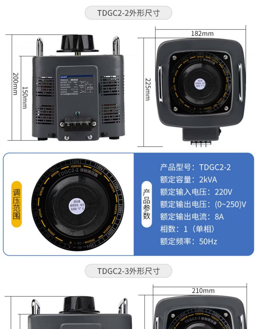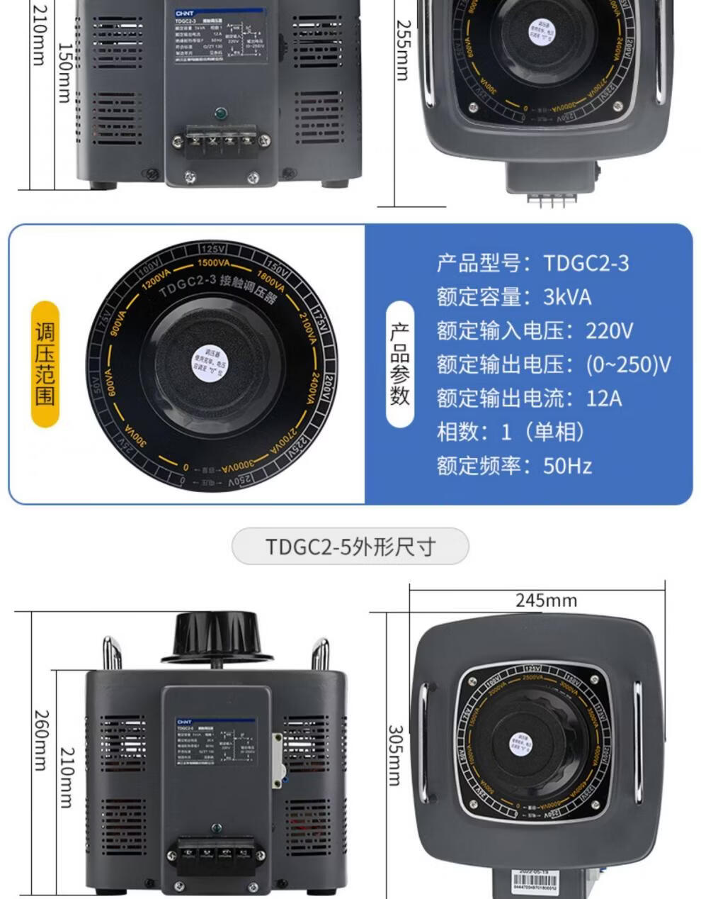 Chint single-phase voltage regulator adjustable voltage transformer contact 220V AC 0v-250v regulator TDGC2-15