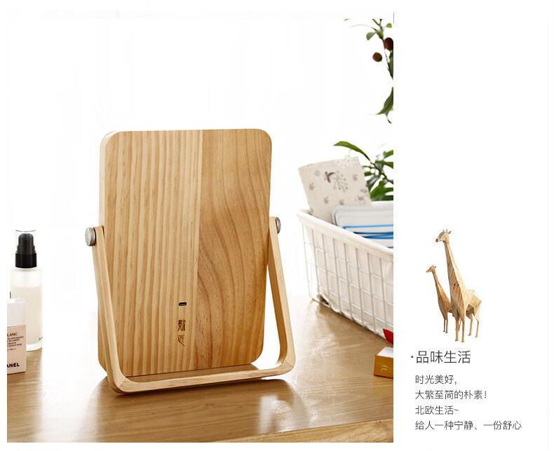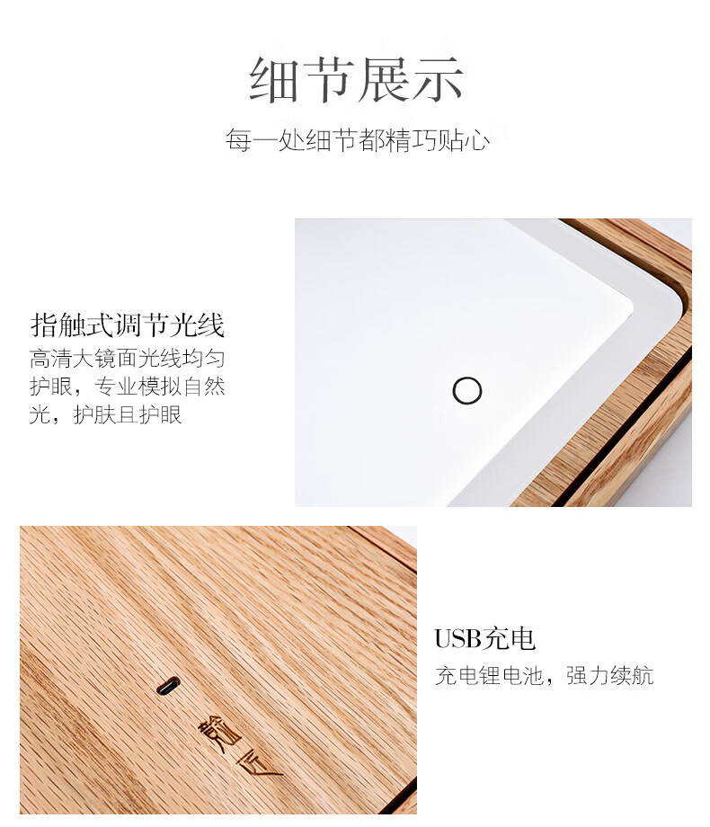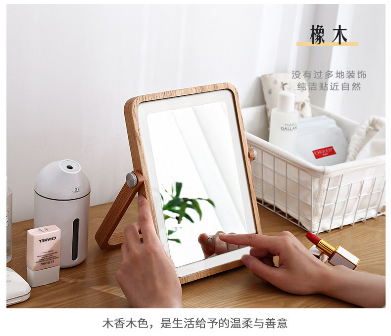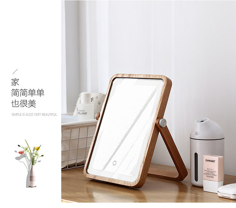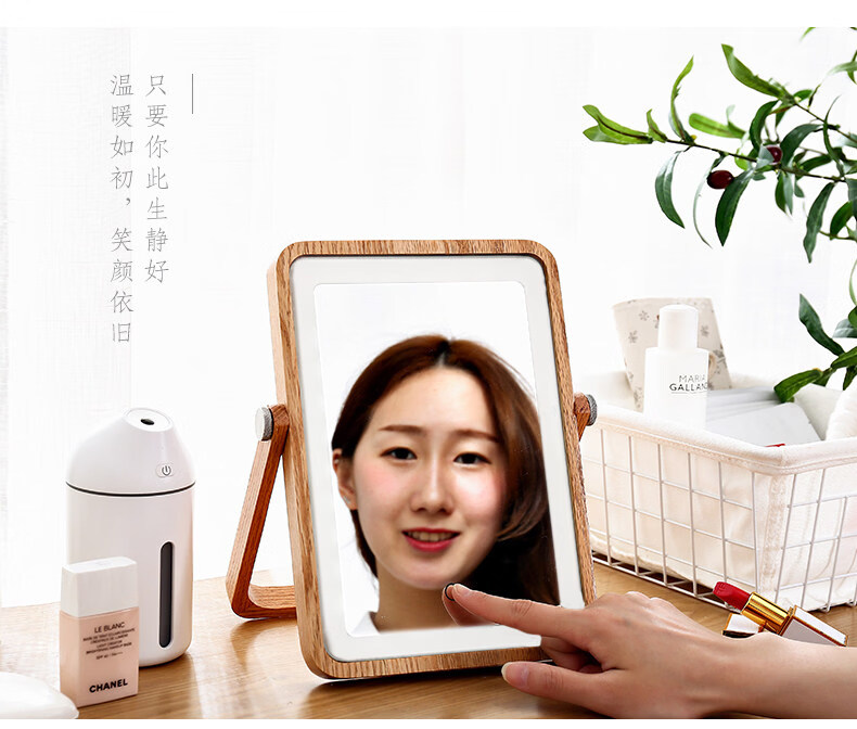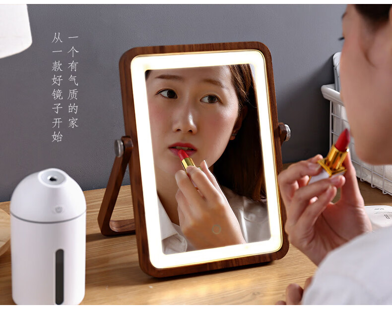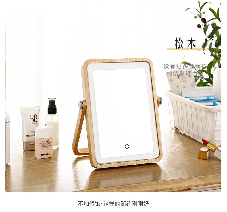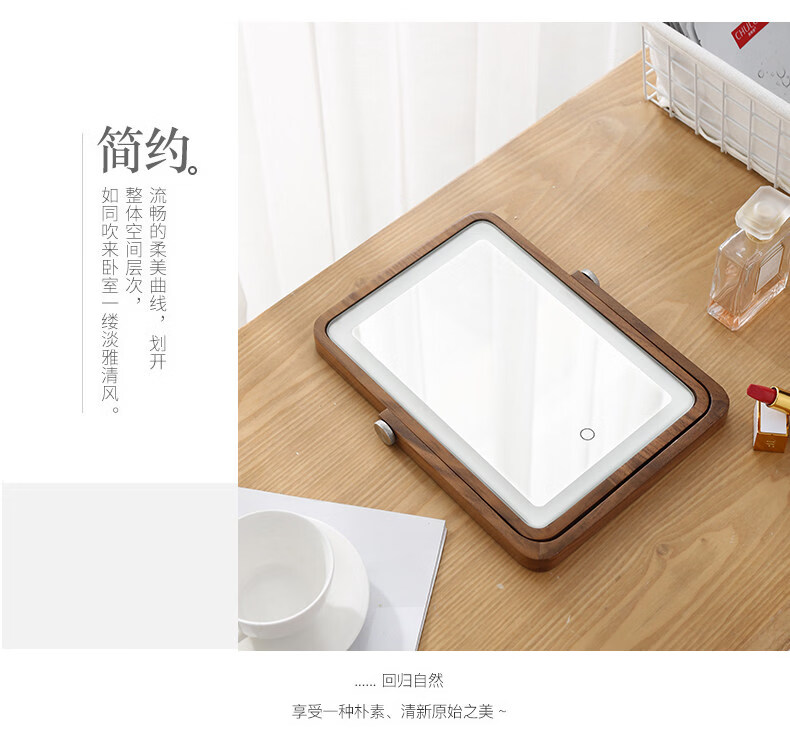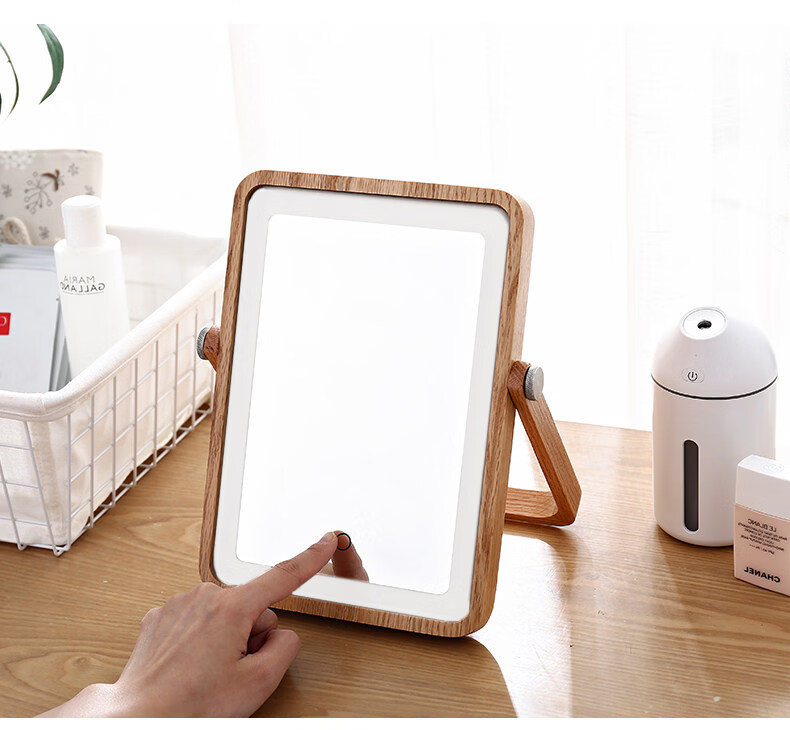 Solid wood LED desktop makeup mirror, foldable and rechargeable desktop makeup mirror with light, girls dormitory fill-in mirror, North American walnut