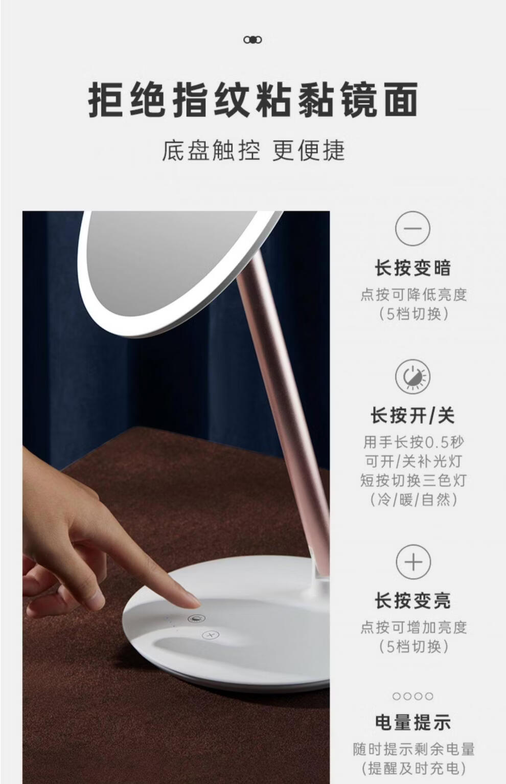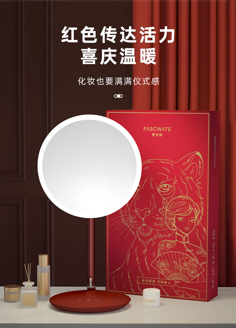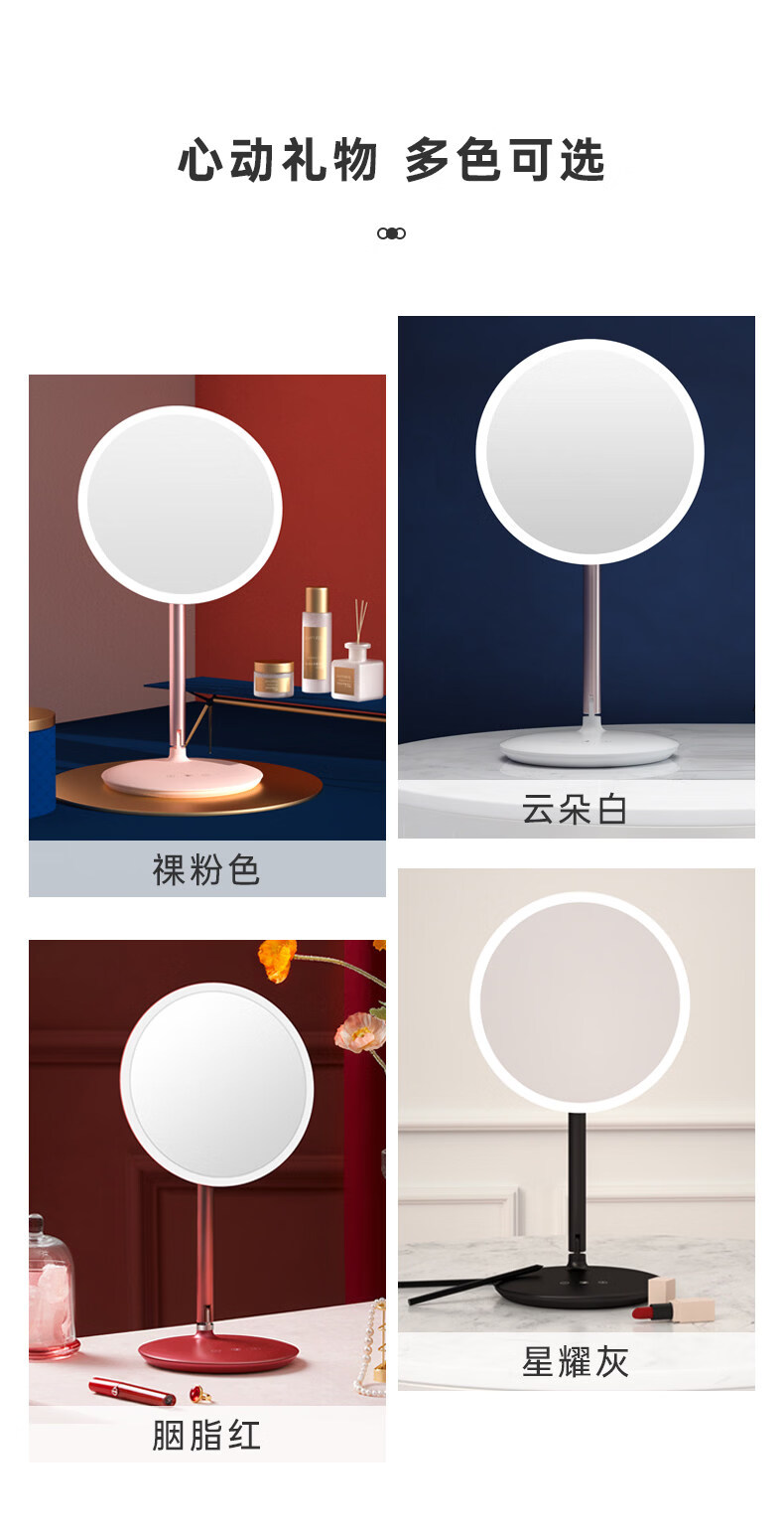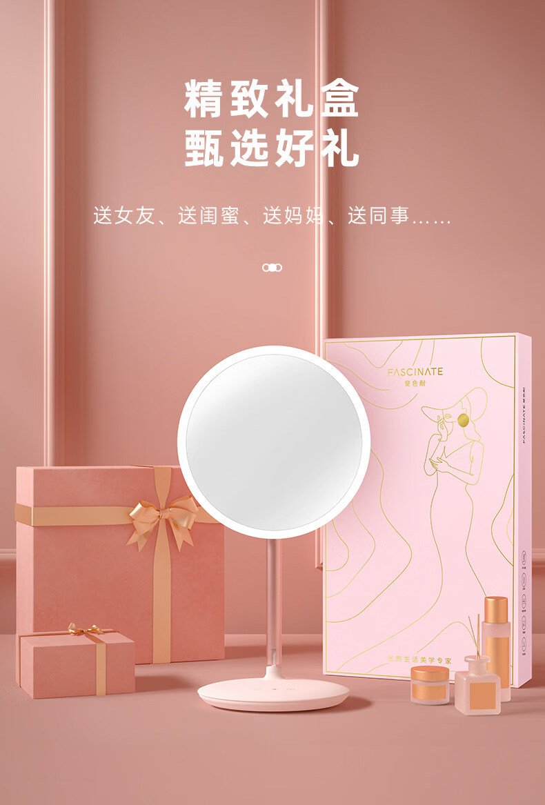 Feisenne Jiujiu Mirror Desktop Led Light Makeup Mirror Smart Filled Light Desktop Makeup Girl Portable Gift Yunduo White Gift Box