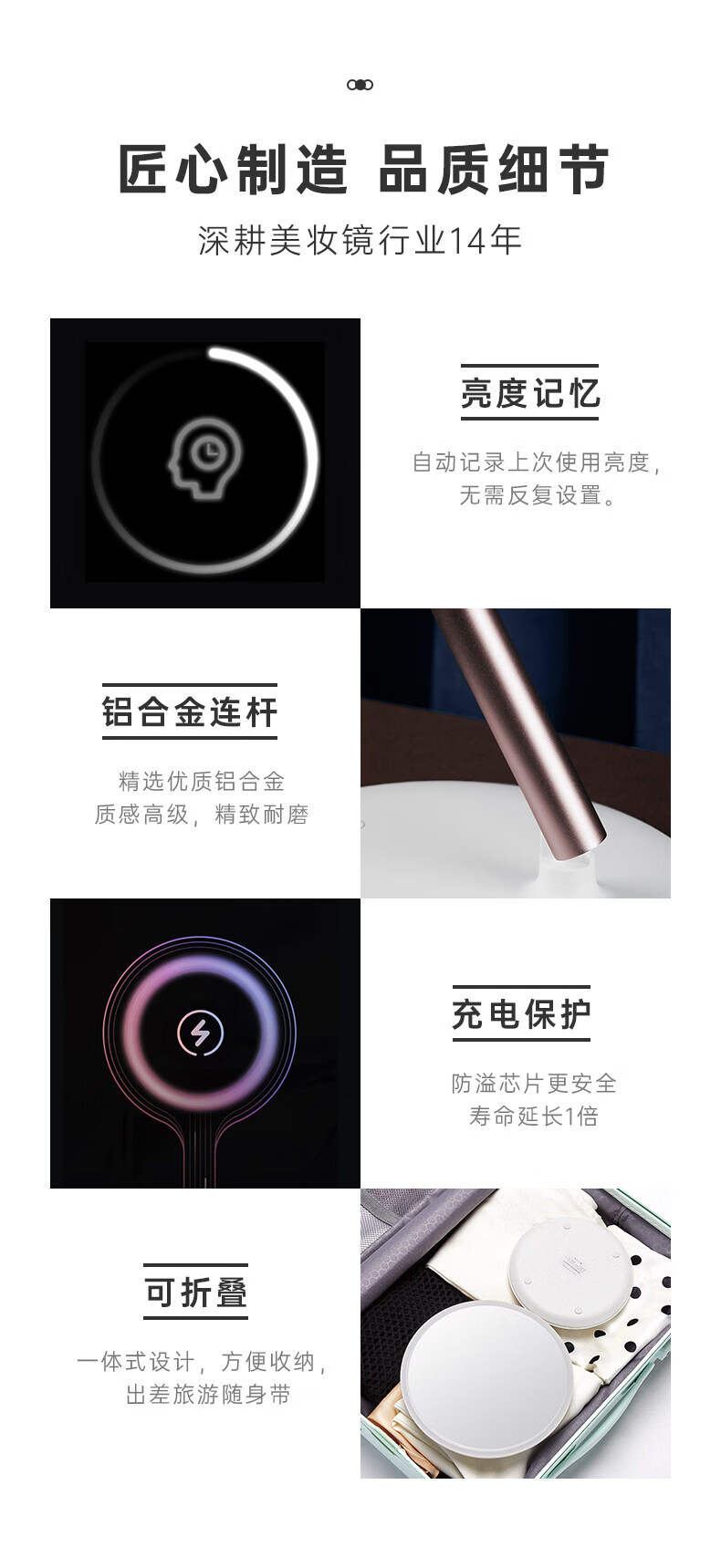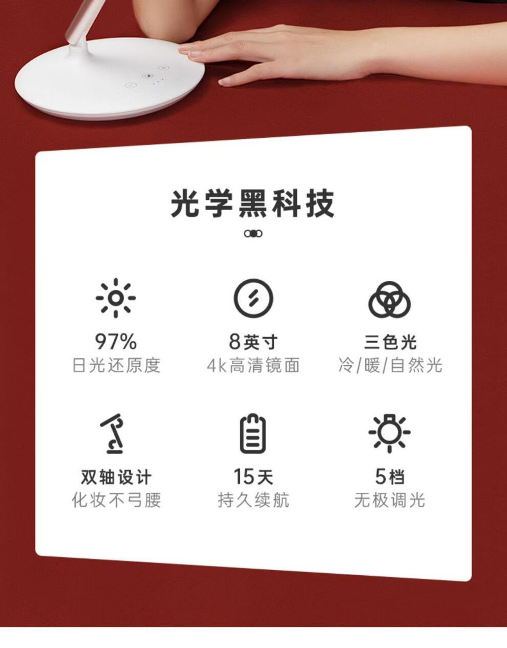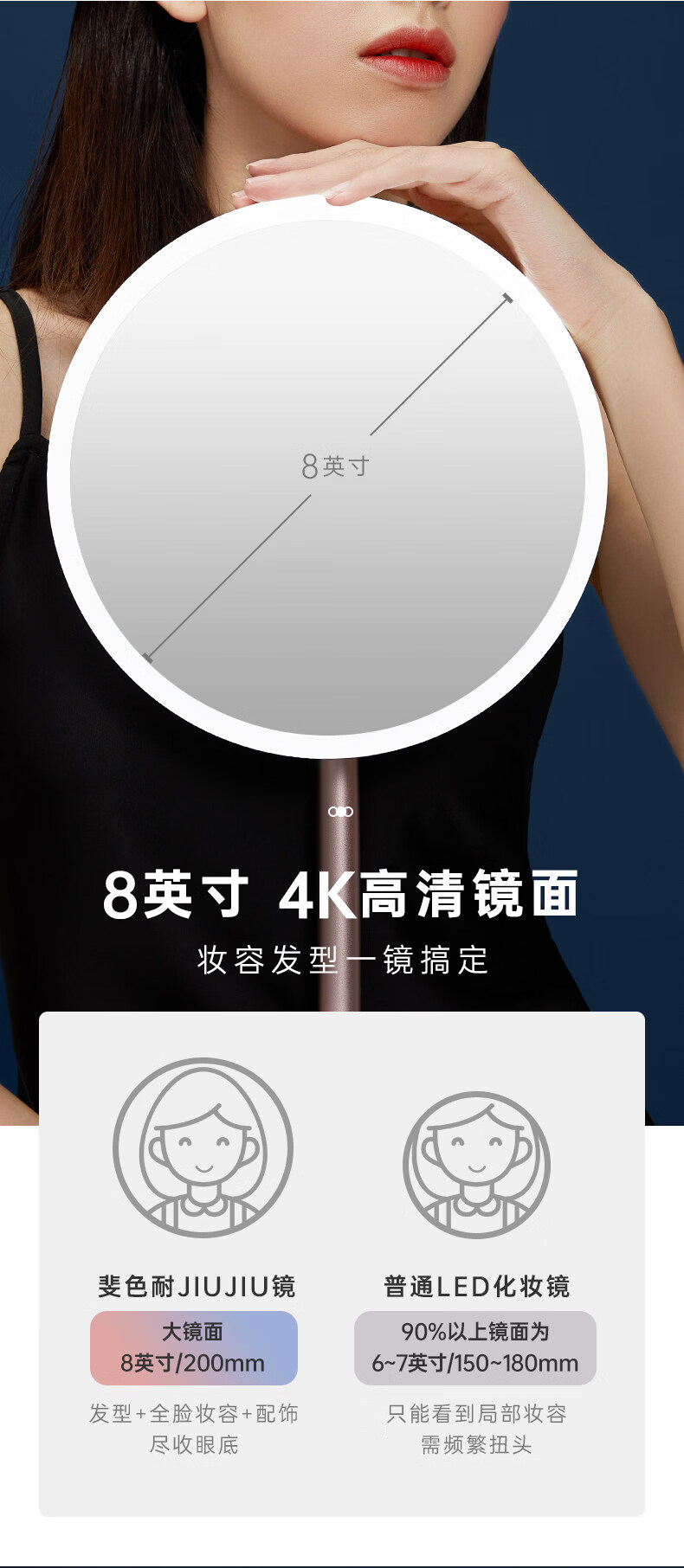 Feisenne Jiujiu Mirror Desktop Led Light Makeup Mirror Smart Filled Light Desktop Makeup Girl Portable Gift Yunduo White Gift Box