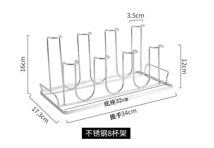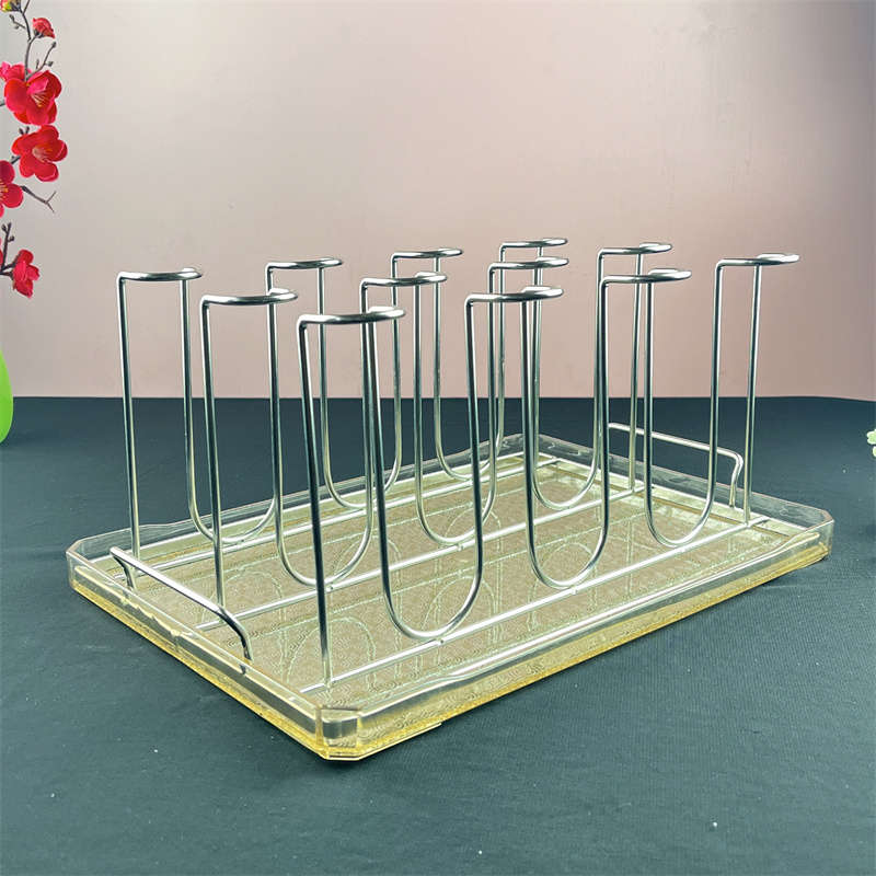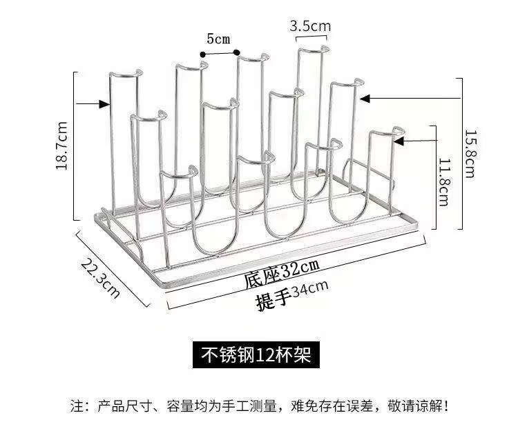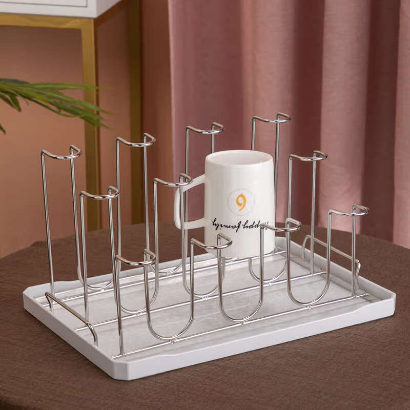 Pupan Cup Storage Rack Stainless Steel Cup Rack Tray Upside Down Rack Living Room 8 Cup Rack Drain Rack 12 Cup Rack Storage Rack 12 Position Cup Rack High and Low (Silver) + Transparent Tray