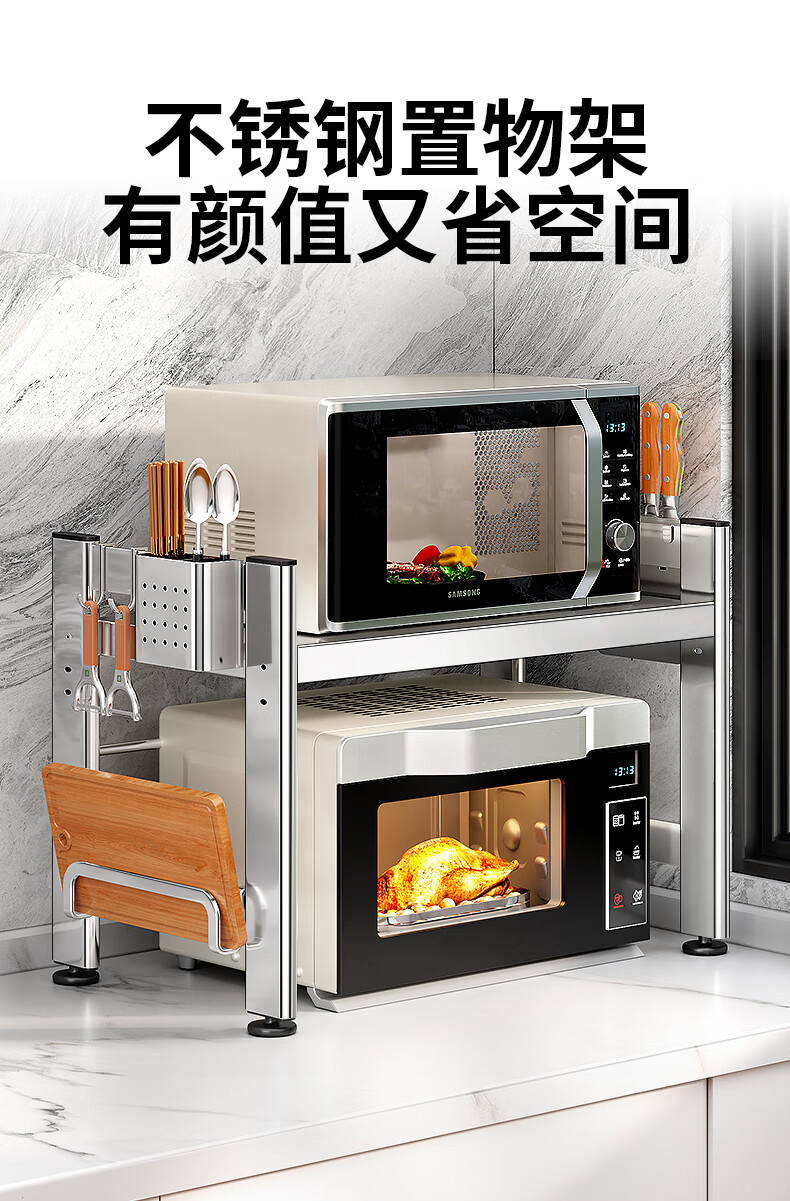 Sailotou quality 304 stainless steel microwave oven rack multi-functional shelf double layer household oven 304 stainless steel tube thick 40 three D