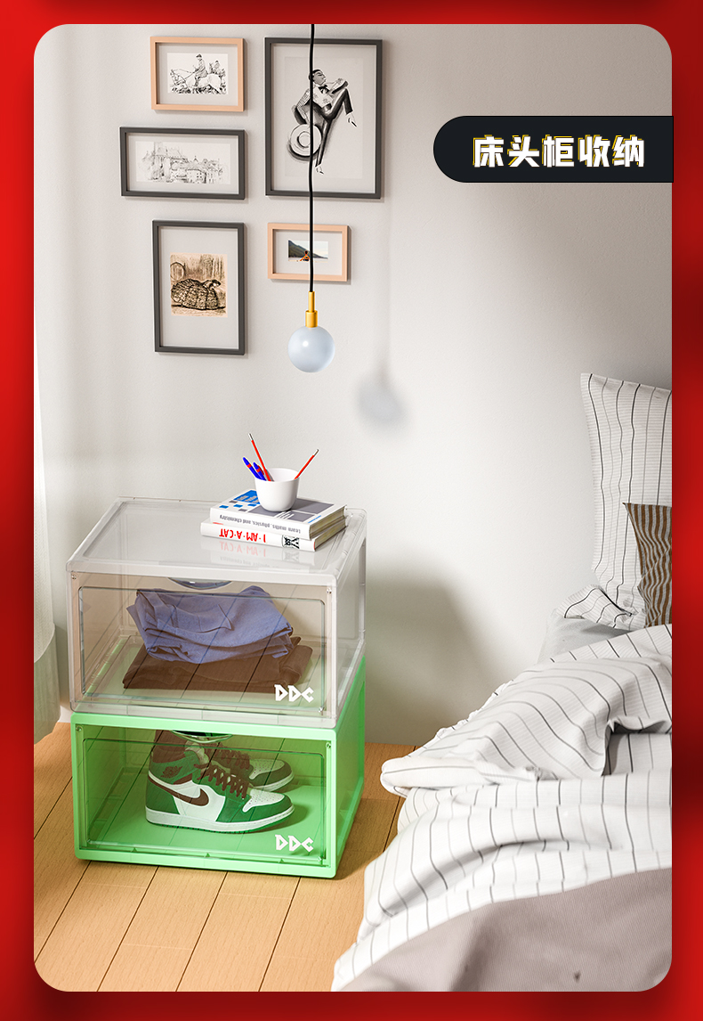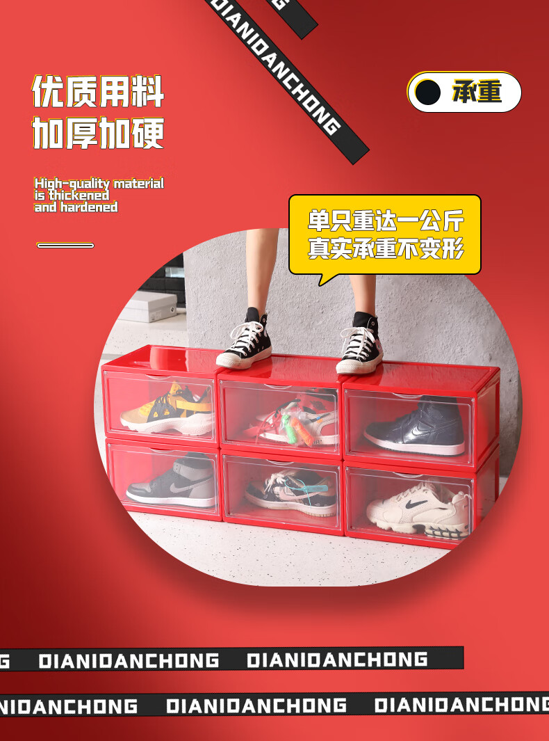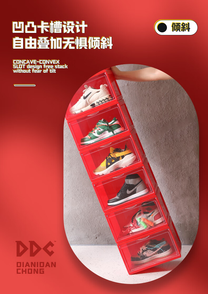 Car shoe box ddc shoe box sneaker storage box transparent acrylic shoe rack shoe anti-oxidation plastic internet celebrity magnet red 2 pieces