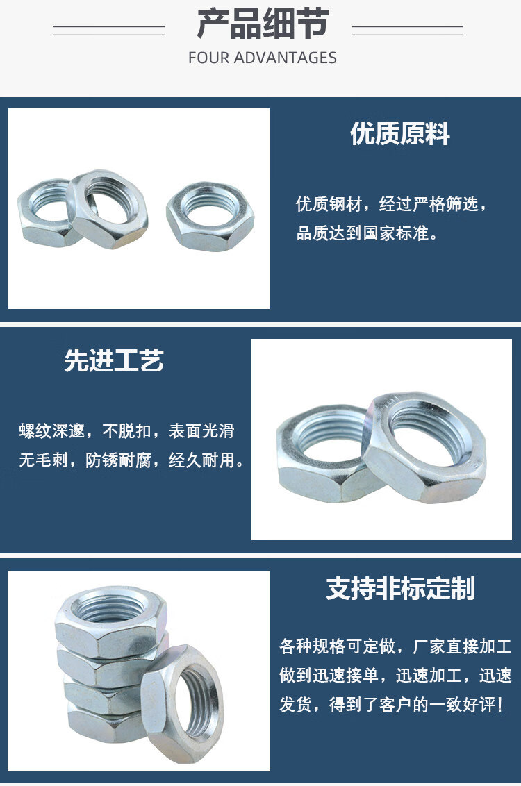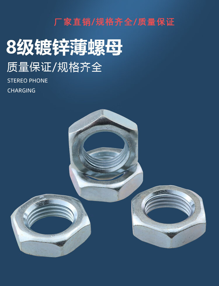 Grade 8 GB6172 galvanized hexagonal thin nut nut thin screw cap M5M6M8M10M12M16M20M24-M42 standard thread M6/200 pieces