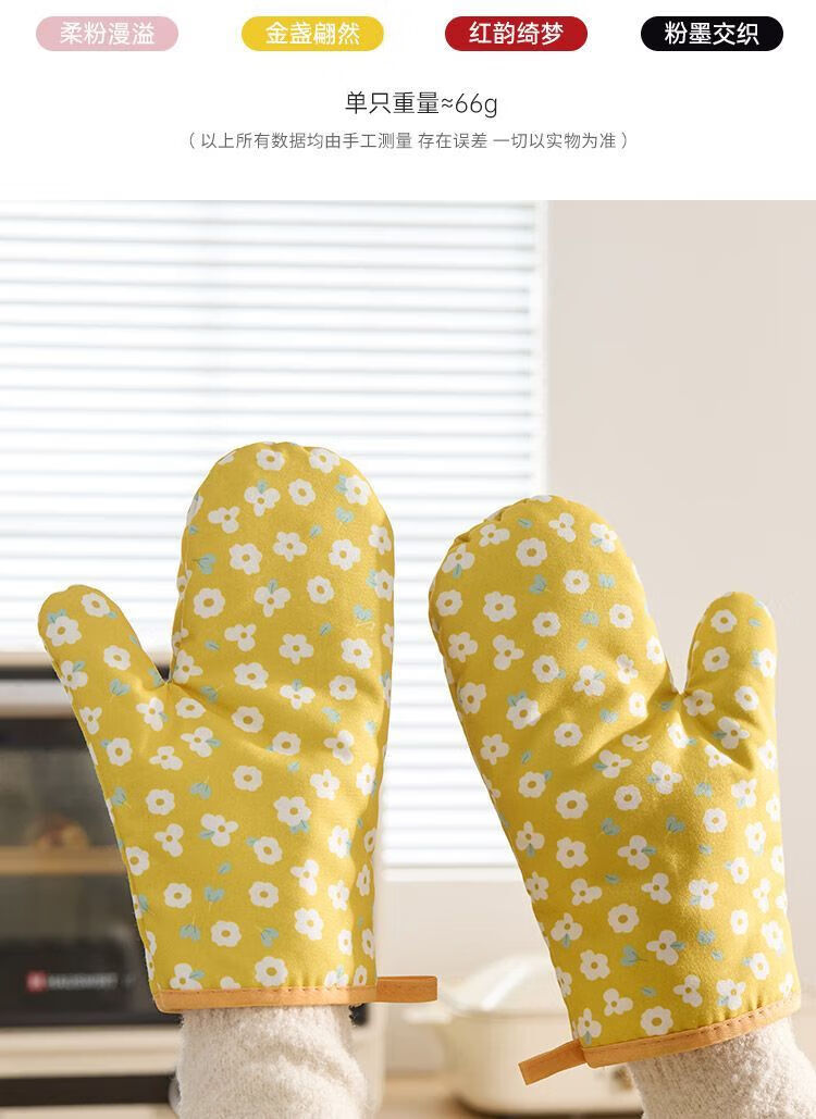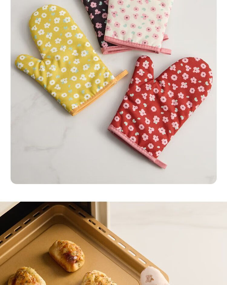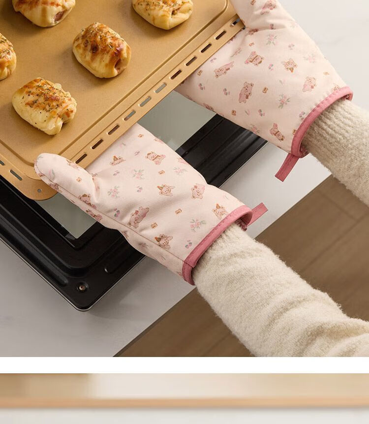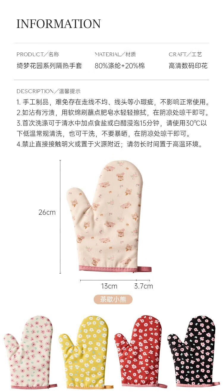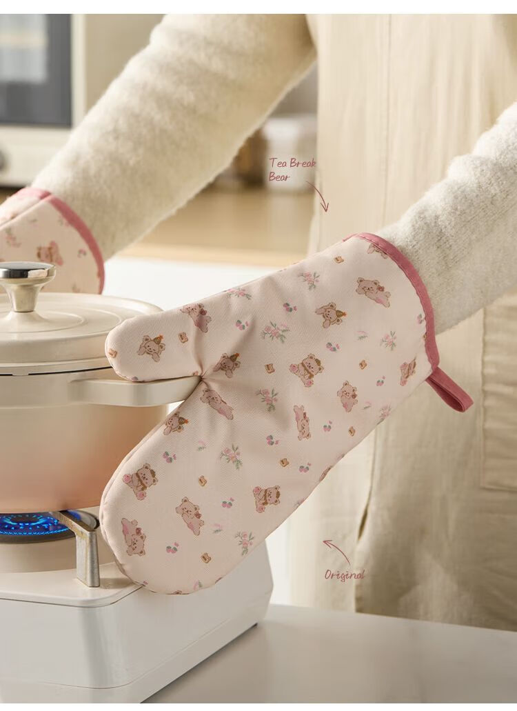 Yong Huan Mi Li Feng Wu Thickened Microwave Oven Gloves High Temperature Resistant Oven Insulated Anti-scalding Gloves New Kitchen Baking Tools Tea Break Bear Insulated Gloves 2 Pack
