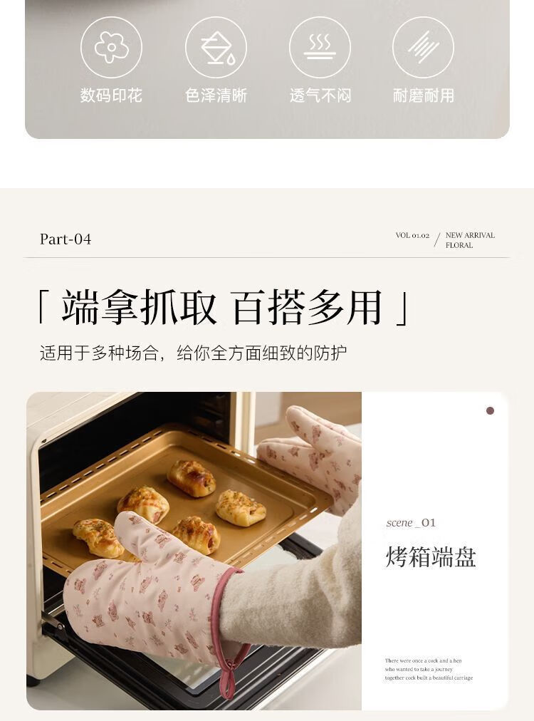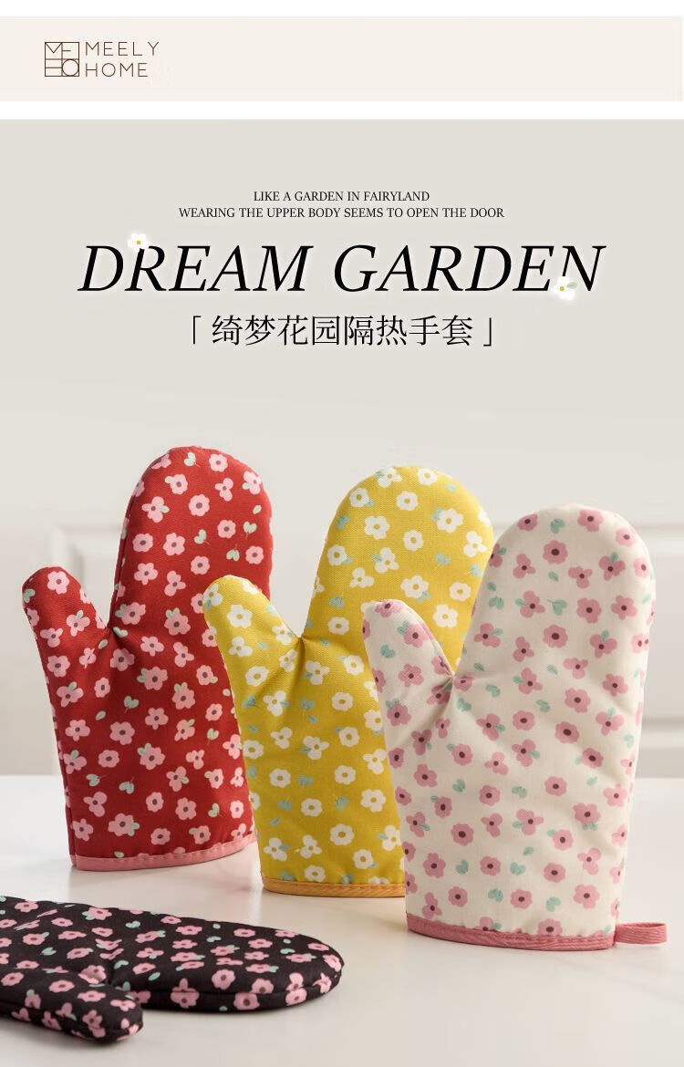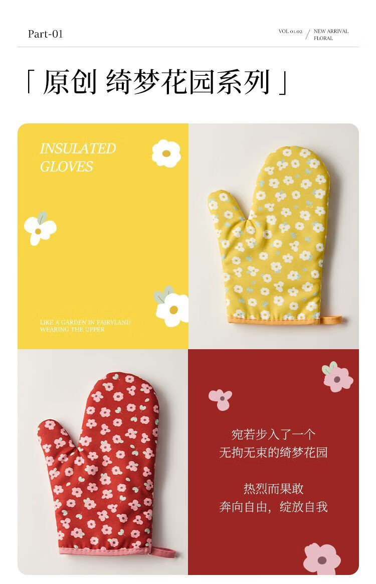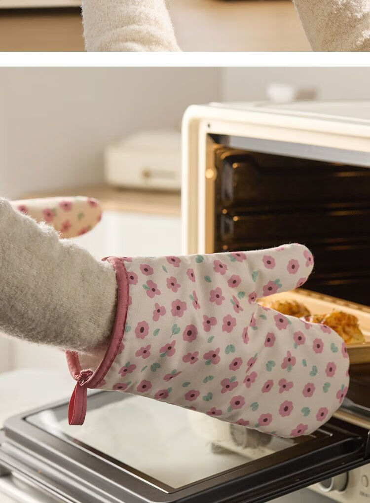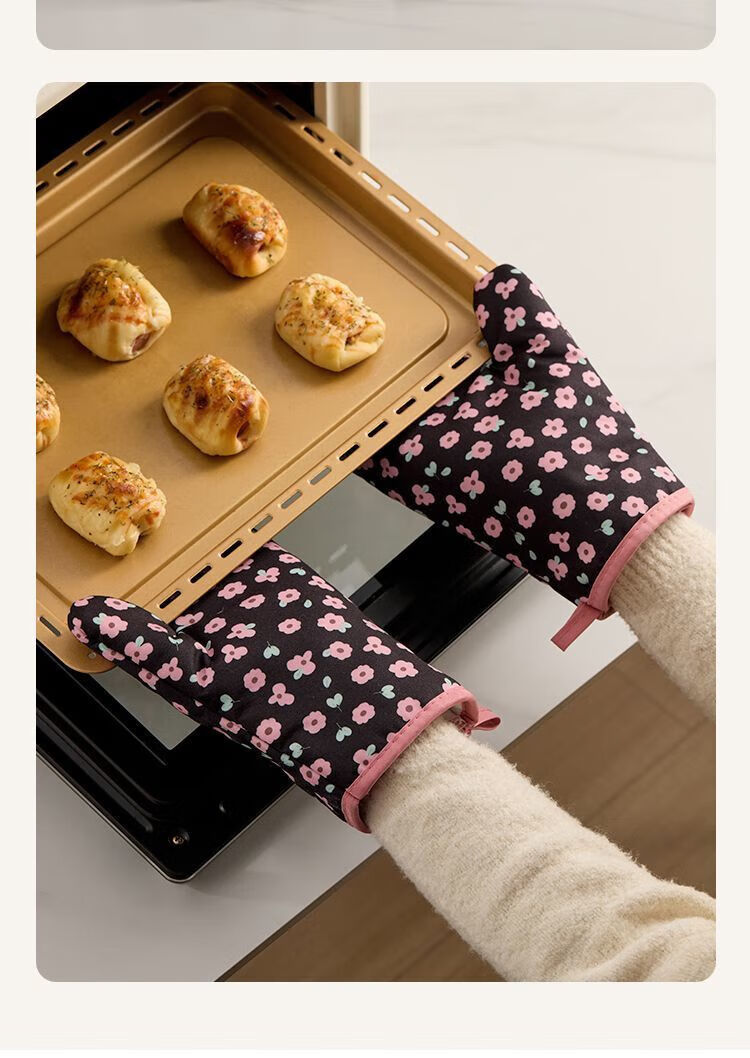 Yong Huan Mi Li Feng Wu Thickened Microwave Oven Gloves High Temperature Resistant Oven Insulated Anti-scalding Gloves New Kitchen Baking Tools Tea Break Bear Insulated Gloves 2 Pack
