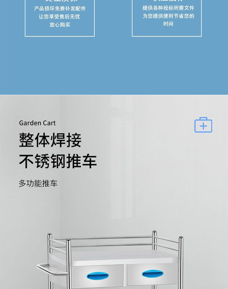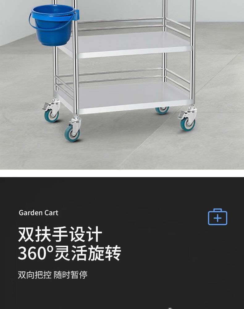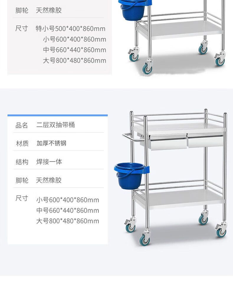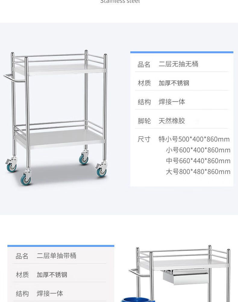 Sailoto stainless steel trolley welding nurse trolley multi-functional tool trolley with drawer treatment trolley instrument trolley two-story large drawer-less brake wheel