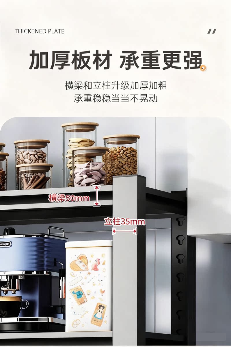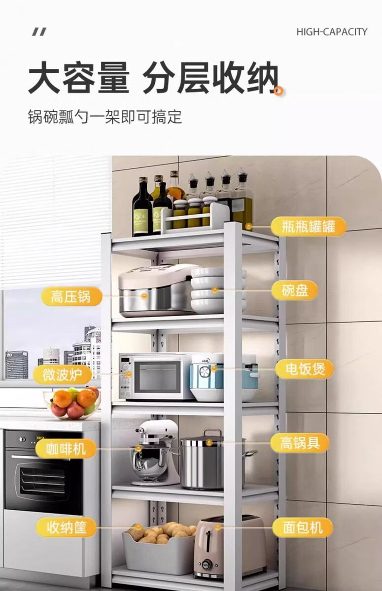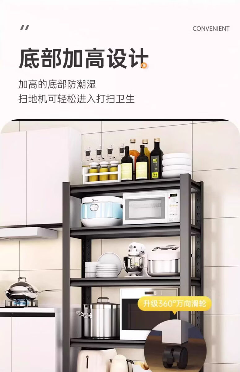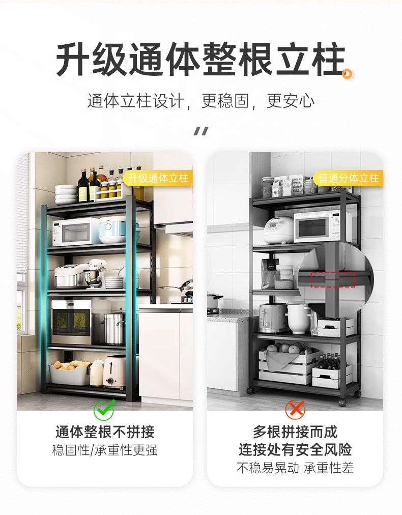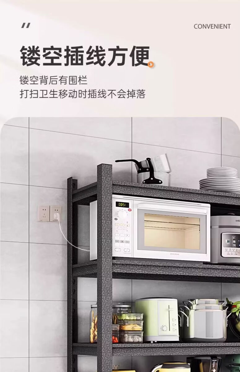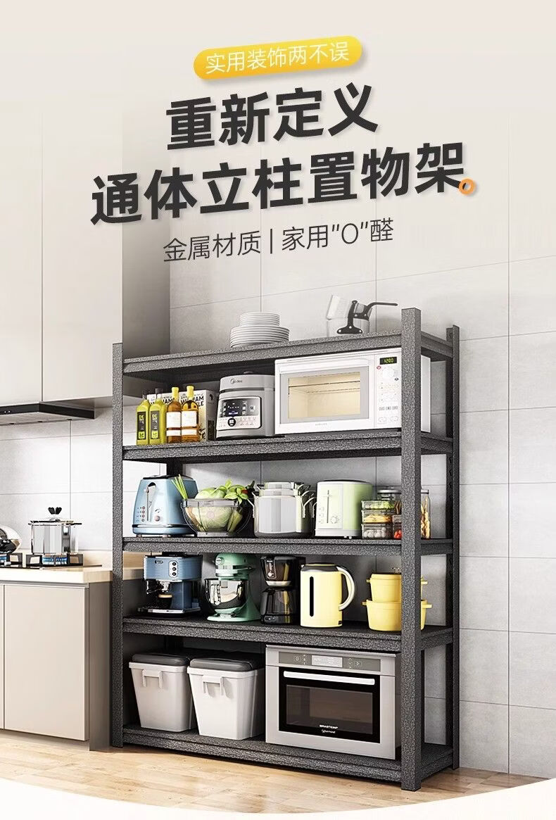 Sanqihu kitchen rack floor-standing rack microwave storage rack oven pot rack storage rack shelf black 4 layers + height 118cm classic simple + durable length 100 width 45cm