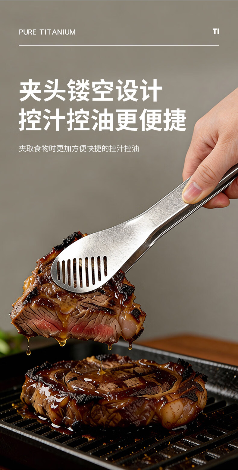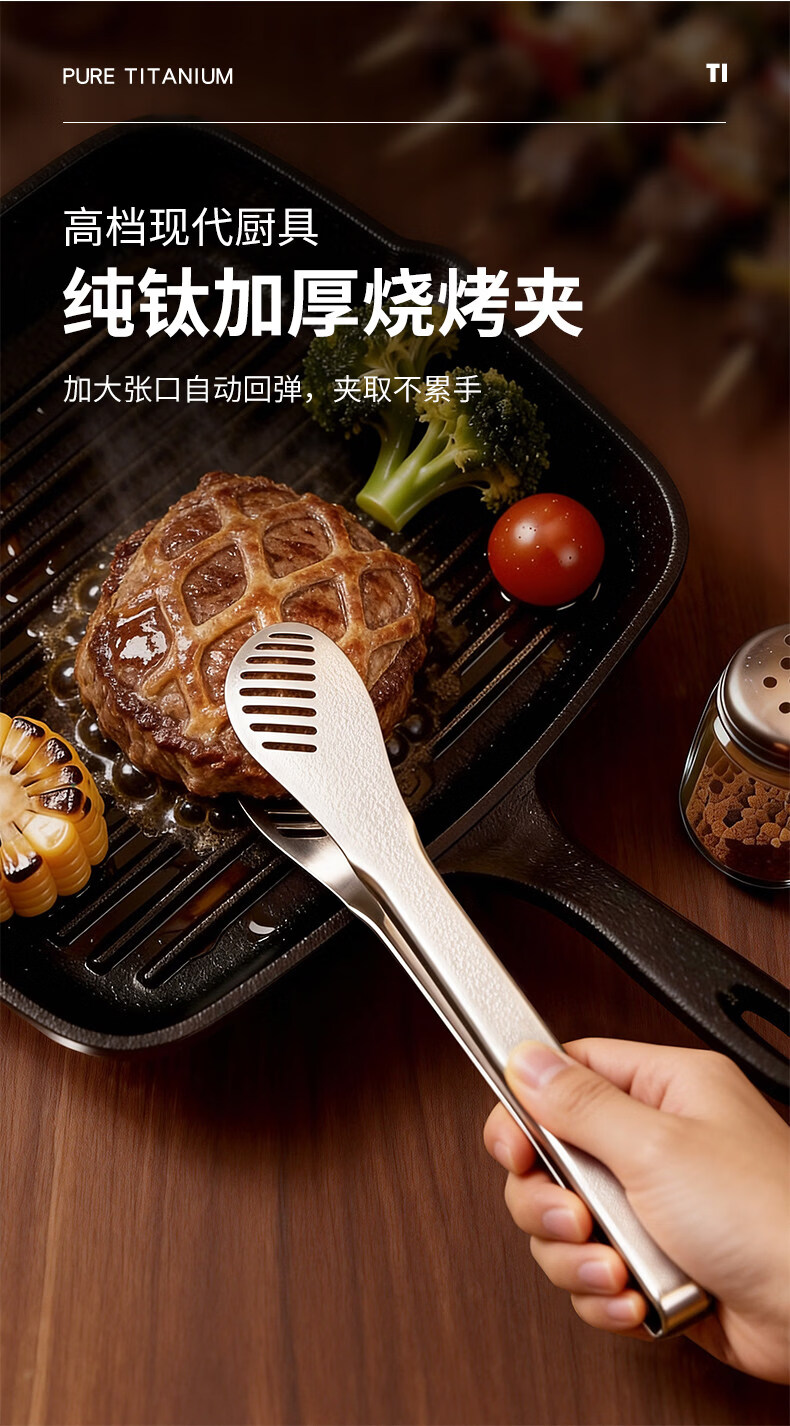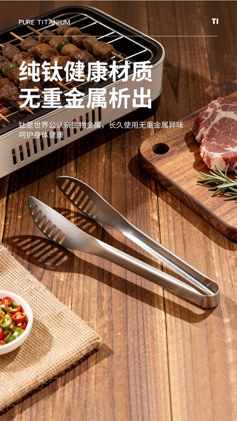 BEYZK German imported quality pure titanium thickened barbecue clips healthy drain clips food barbecue steak clips simple tableware pure titanium barbecue clips-titanium crystal style