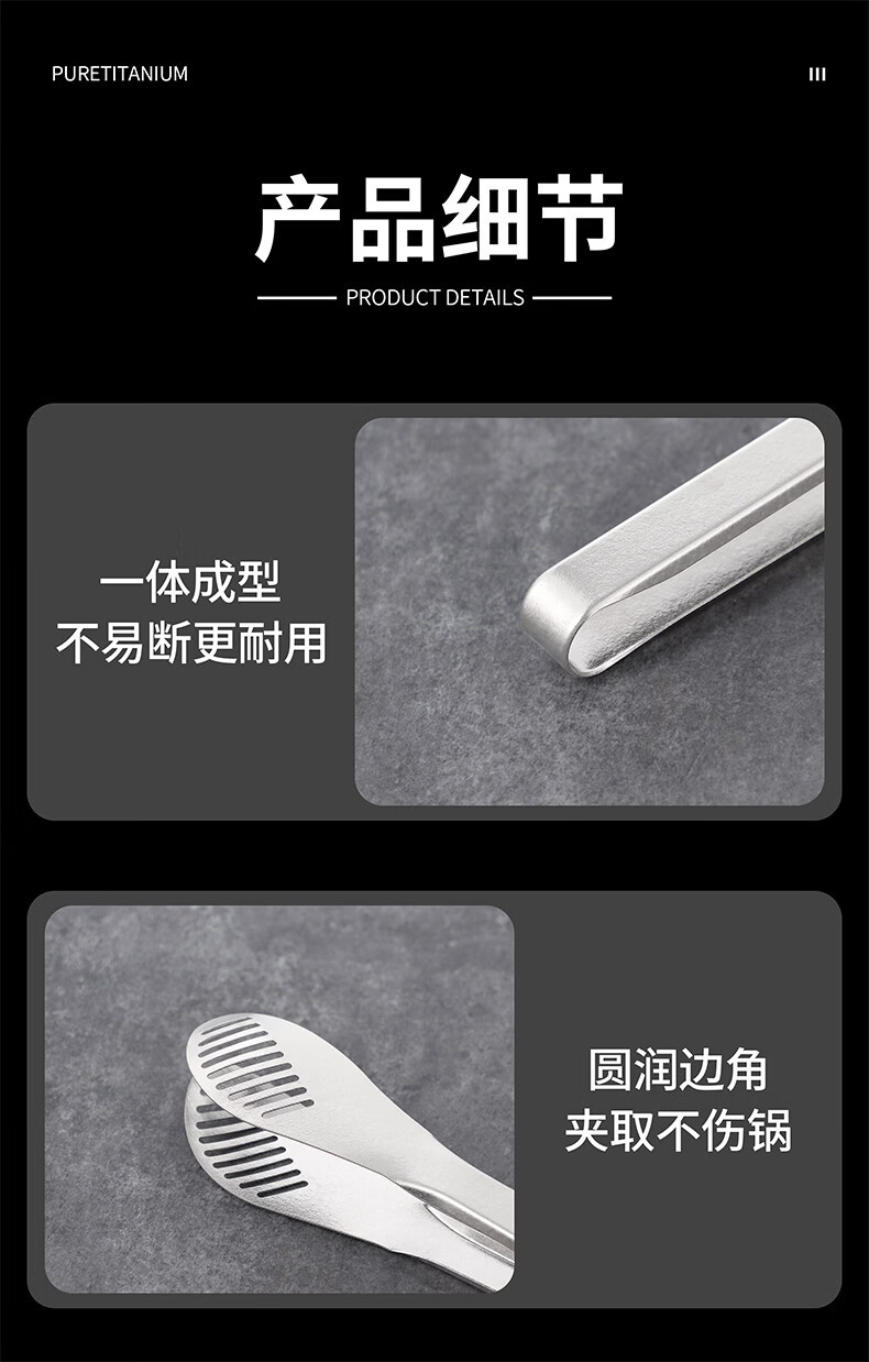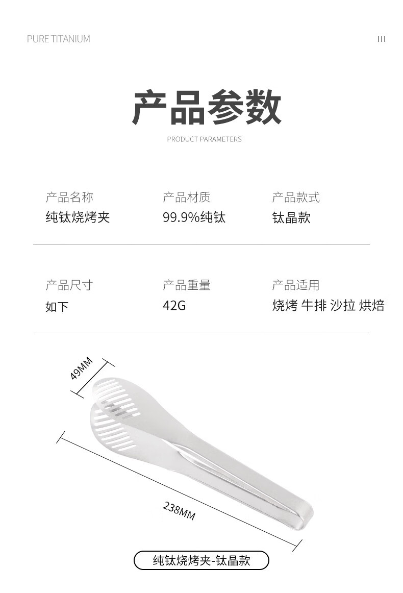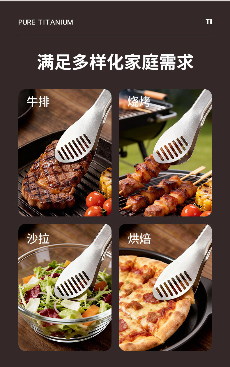 BEYZK German imported quality pure titanium thickened barbecue clips healthy drain clips food barbecue steak clips simple tableware pure titanium barbecue clips-titanium crystal style