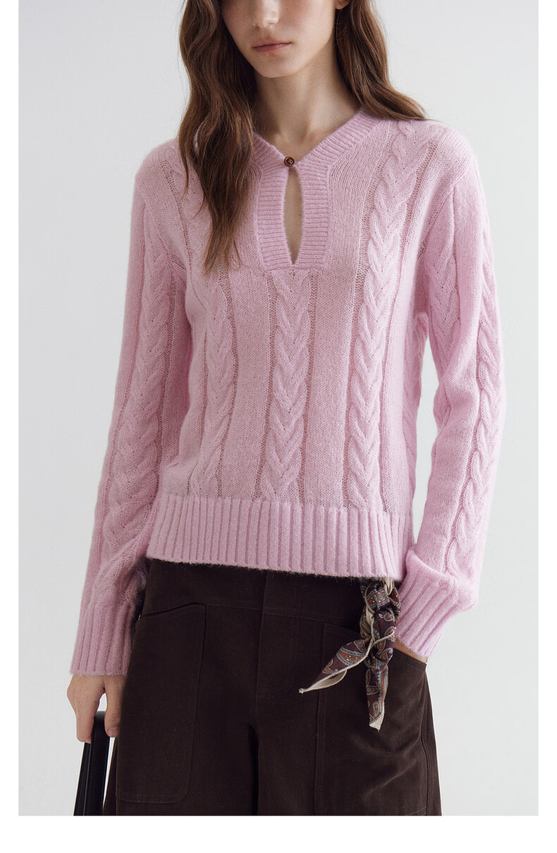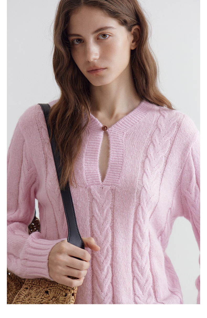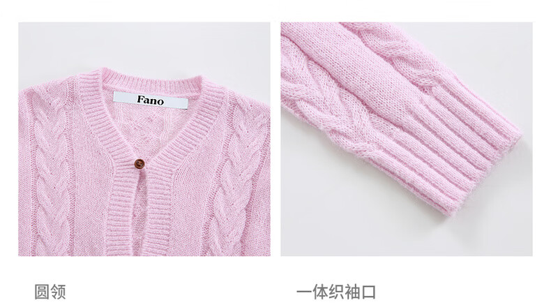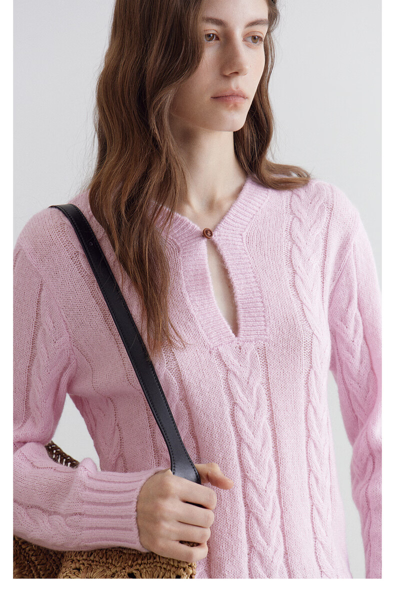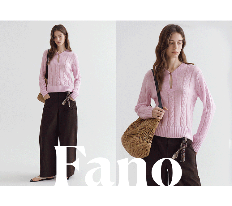 Fano studios Fan Luo Fano pink gentle mohair sweater for women 2026 spring one button hollow V-neck cable tie top pink ready stock M