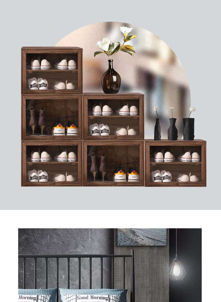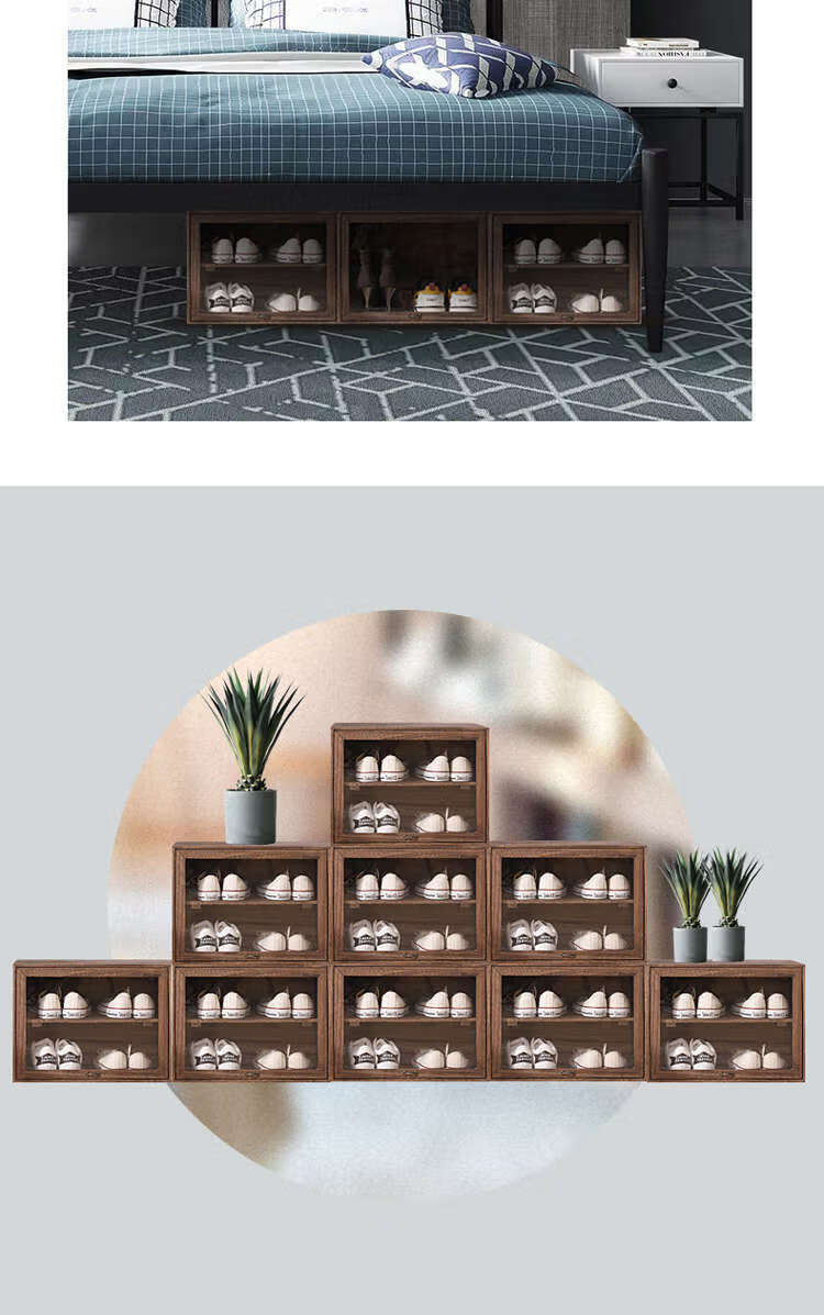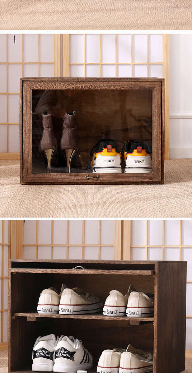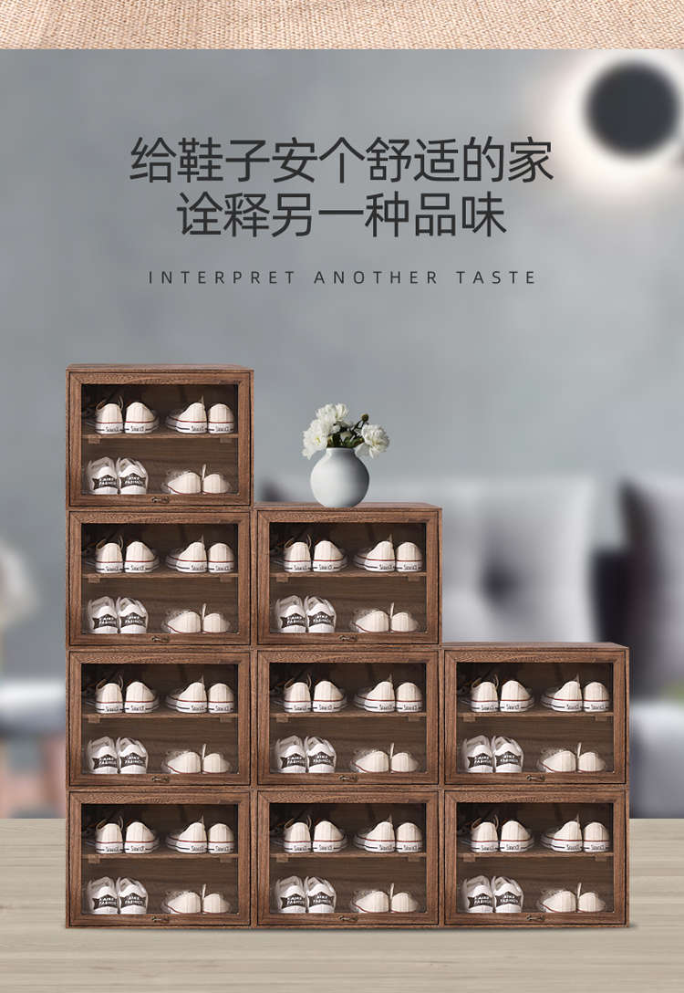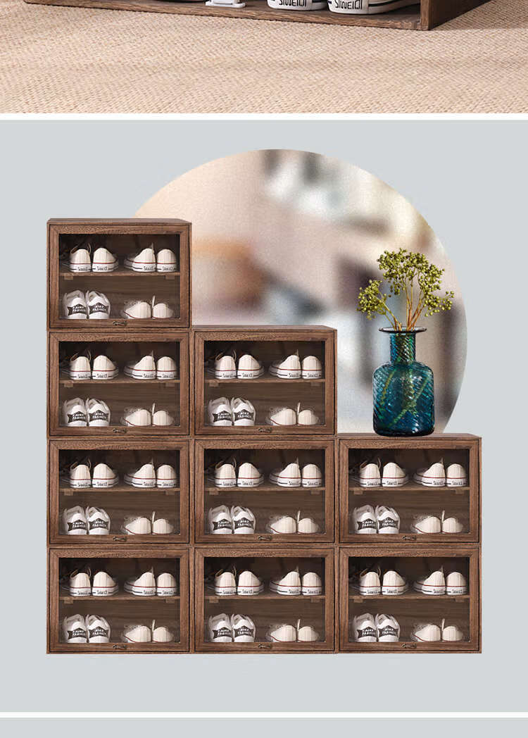 Yusenyi solid wood dust-proof transparent storage rack shoe box sneaker storage box shoe rack anti-oxidation shoe cabinet shoe wall dormitory DZ+31 refired 46x34x34cm