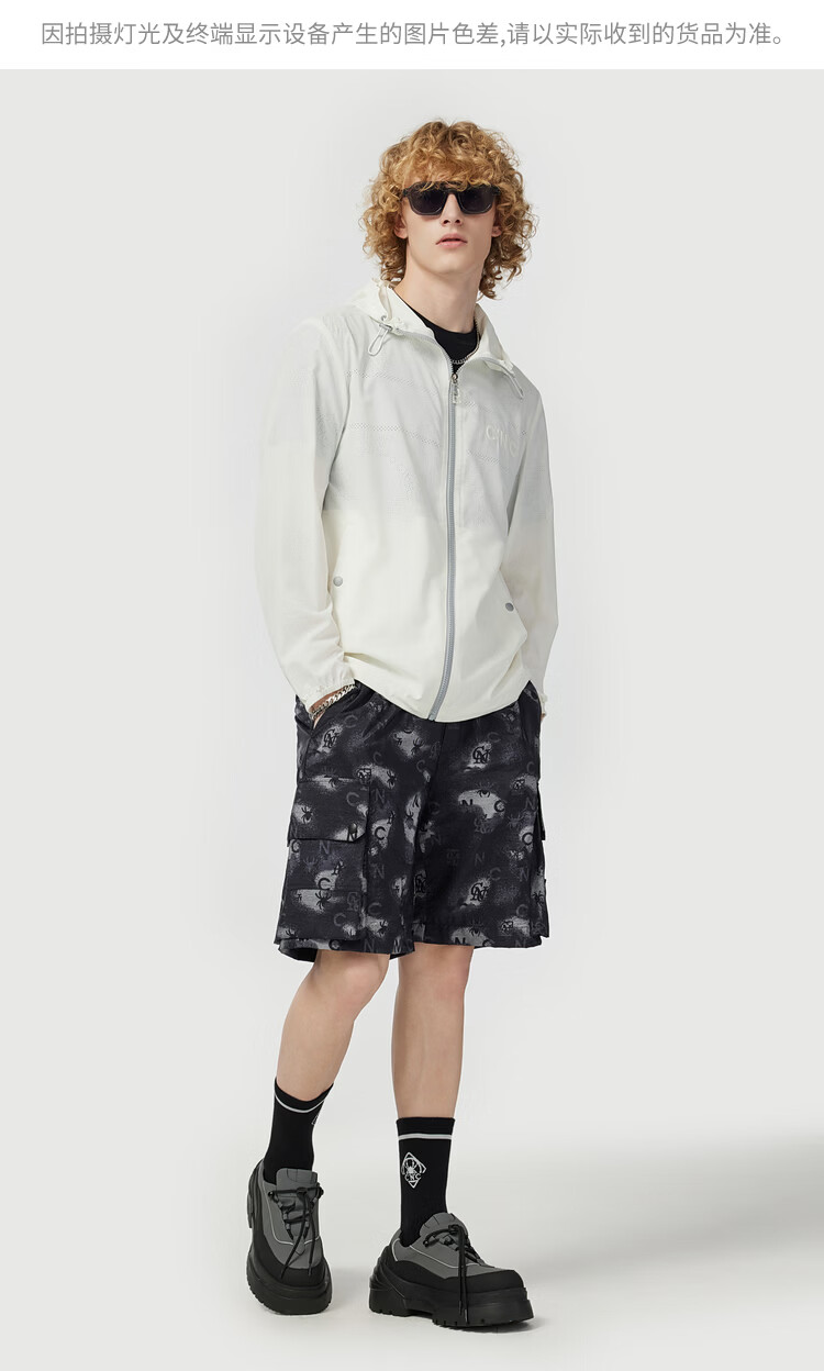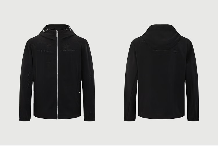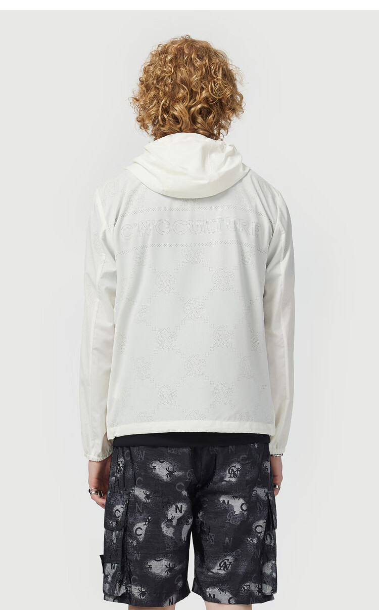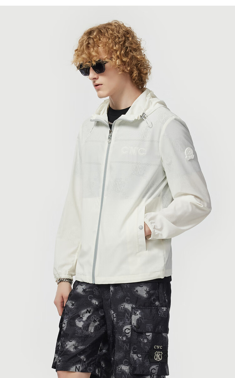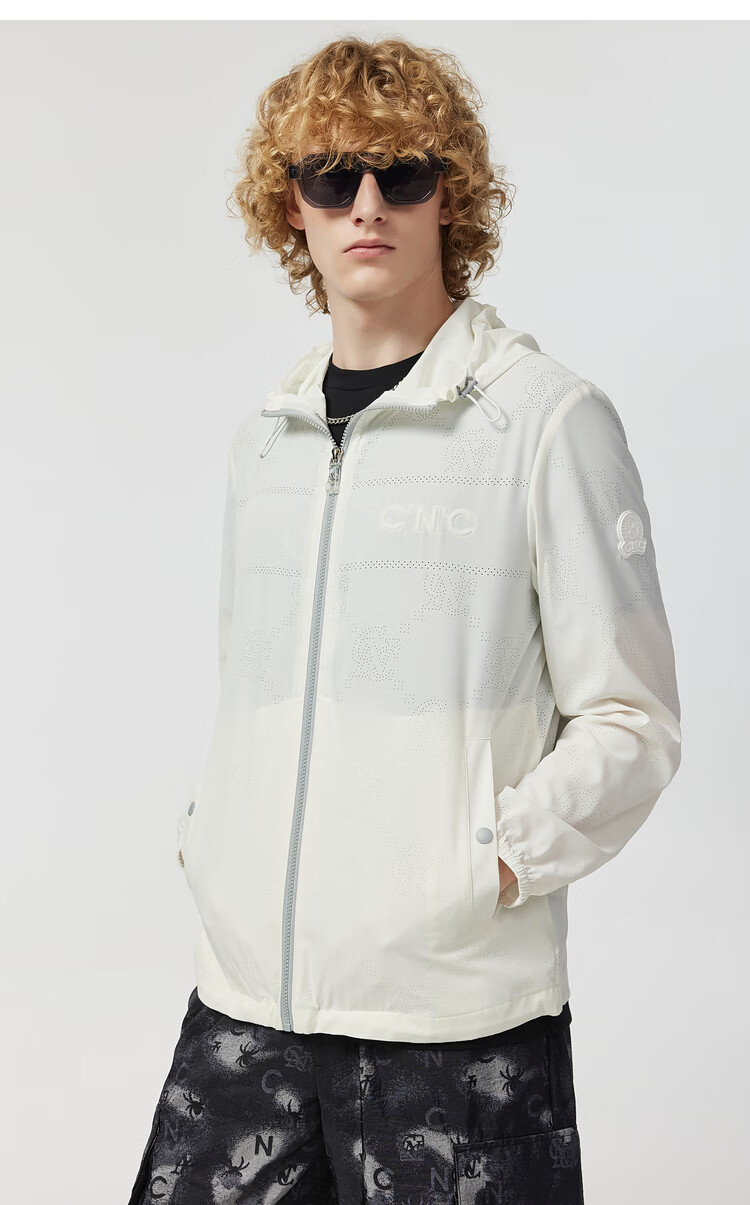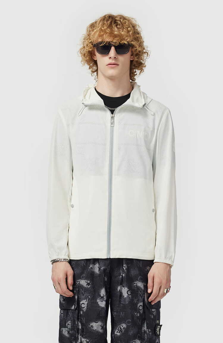C N C men's Outlet logo printed mesh breathable CNC hooded jacket men's spring and summer trend light luxury zipper jacket black 46 /XS/(165/84A)