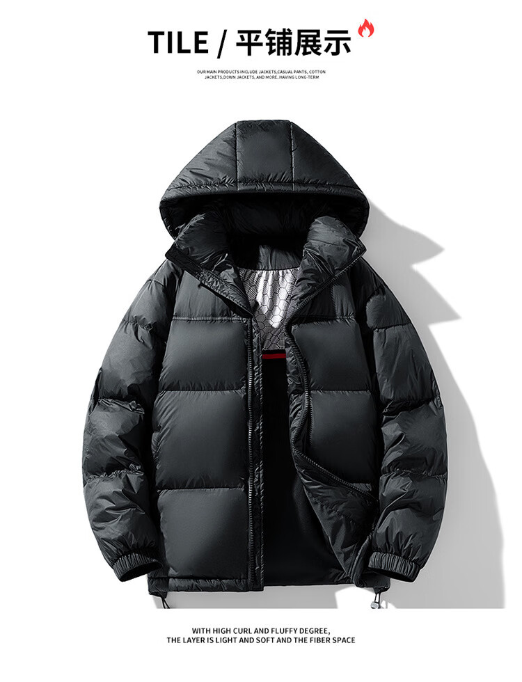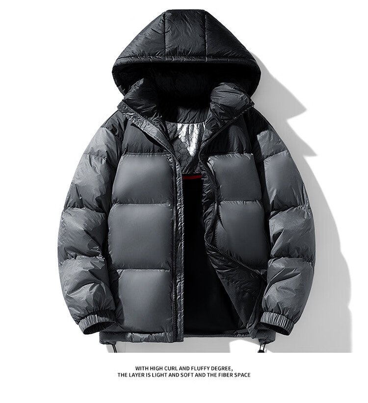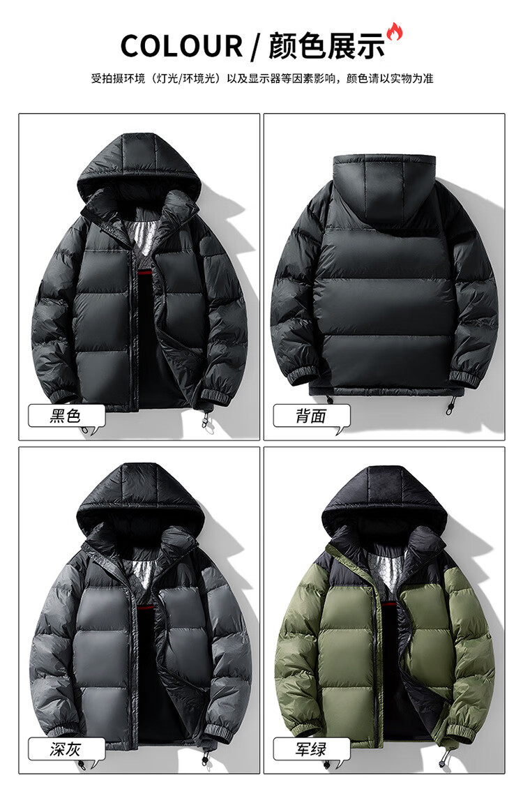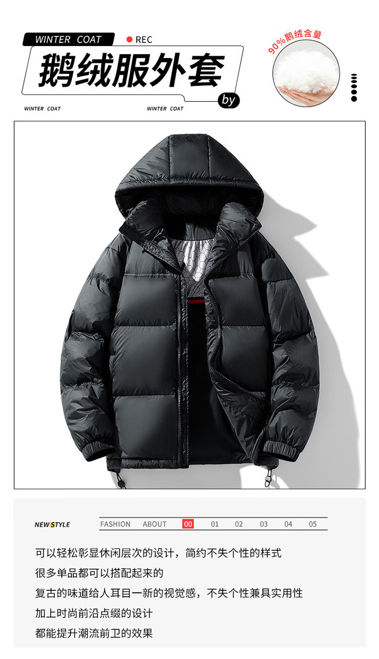 ROMON Winter Classic Goose Down Jacket Hooded Down Jacket Couple White Goose Men's Loose Large Size Down Jacket Fashion Dark Gray Goose Down Jacket M