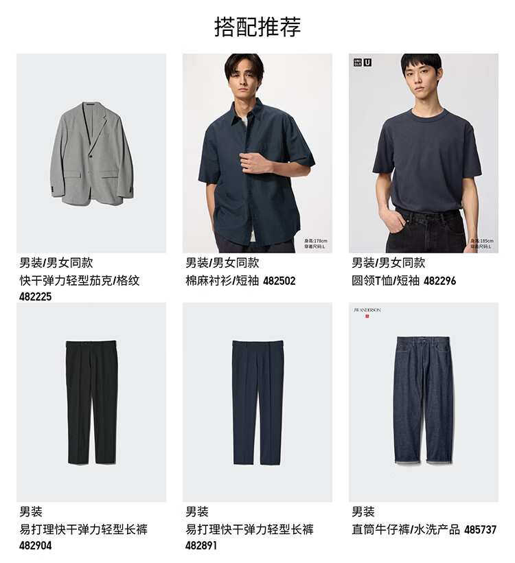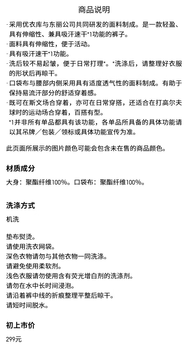 UNIQLO extra long men's easy-care quick-drying elastic lightweight trousers/casual 26 spring and summer new style 482903 09 black 79/170/78A
