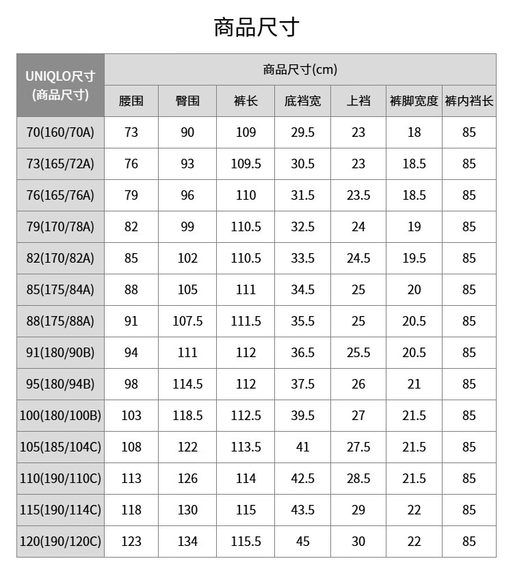 China (cm) 160-165/84-86 165-170 / 88-90 167-172 / 92-96 168-173 / 98-102 170-176 / 106-110