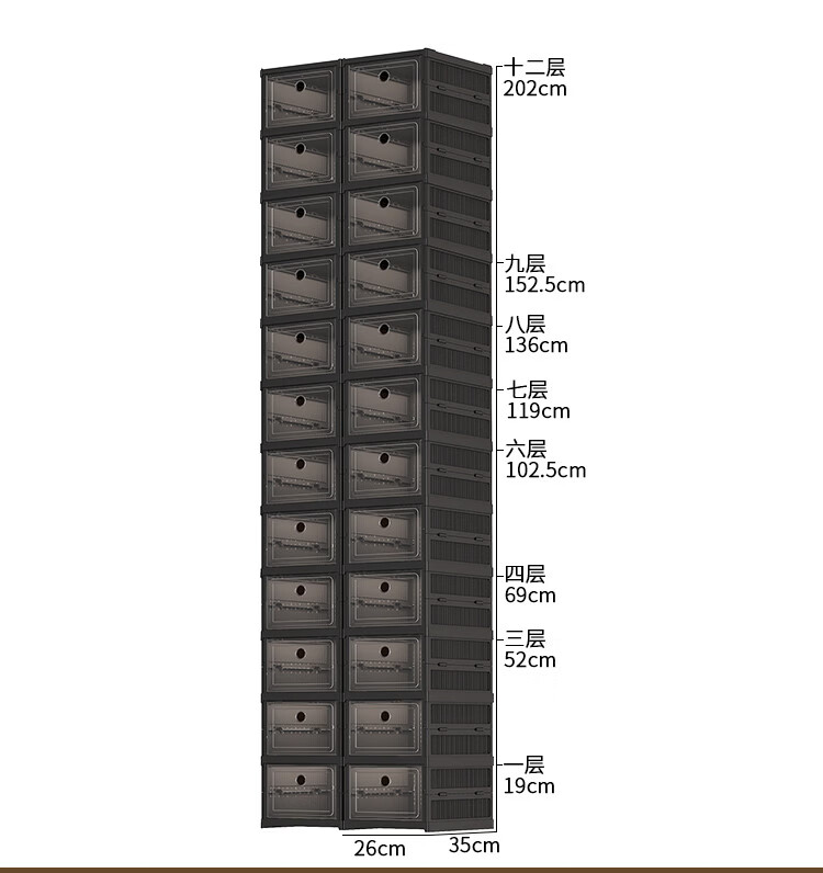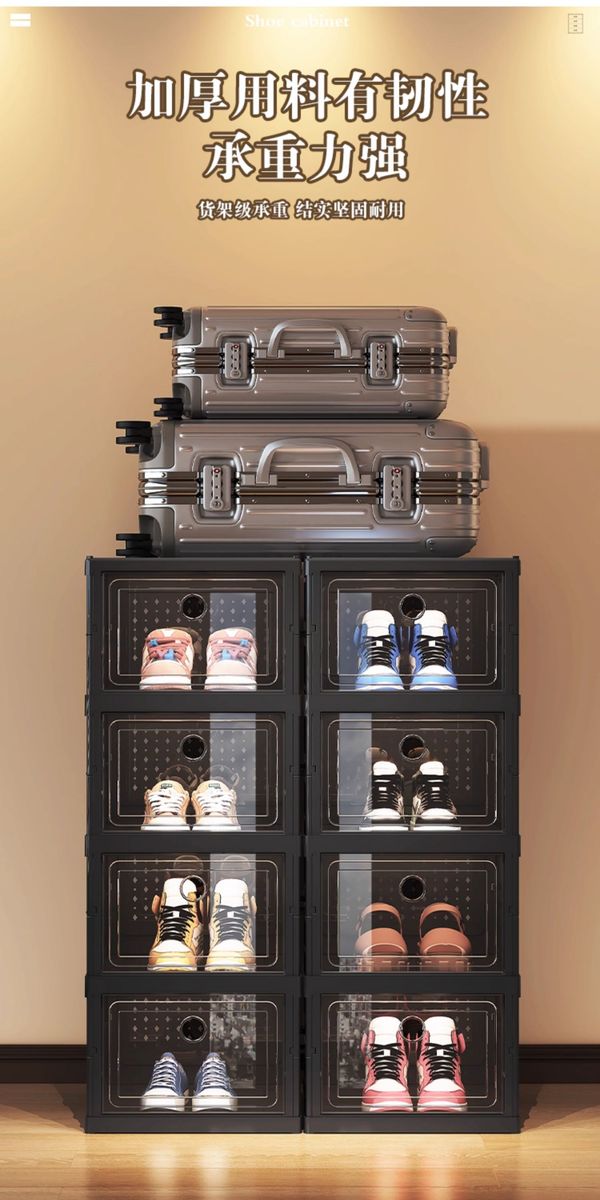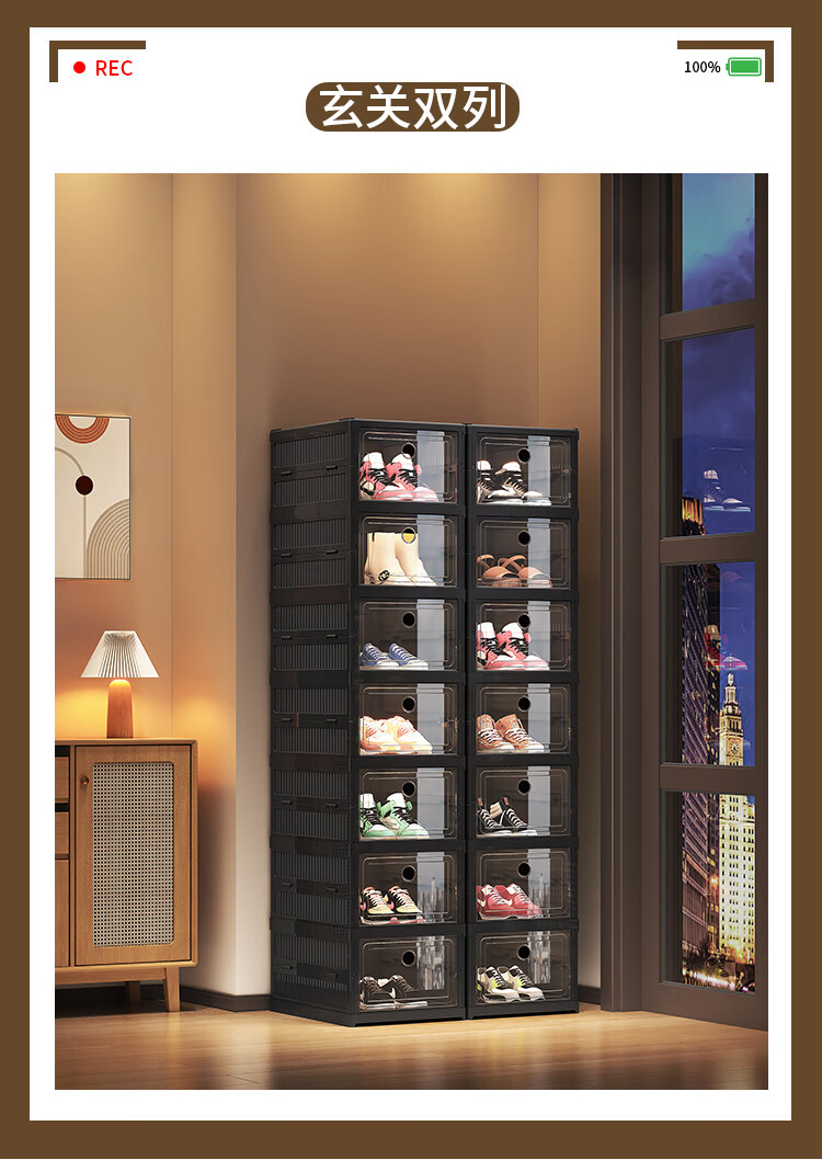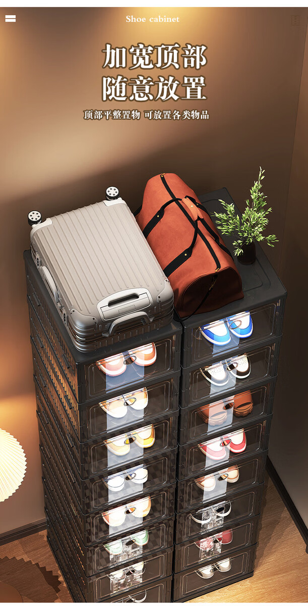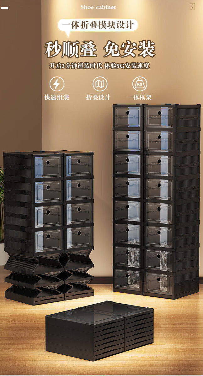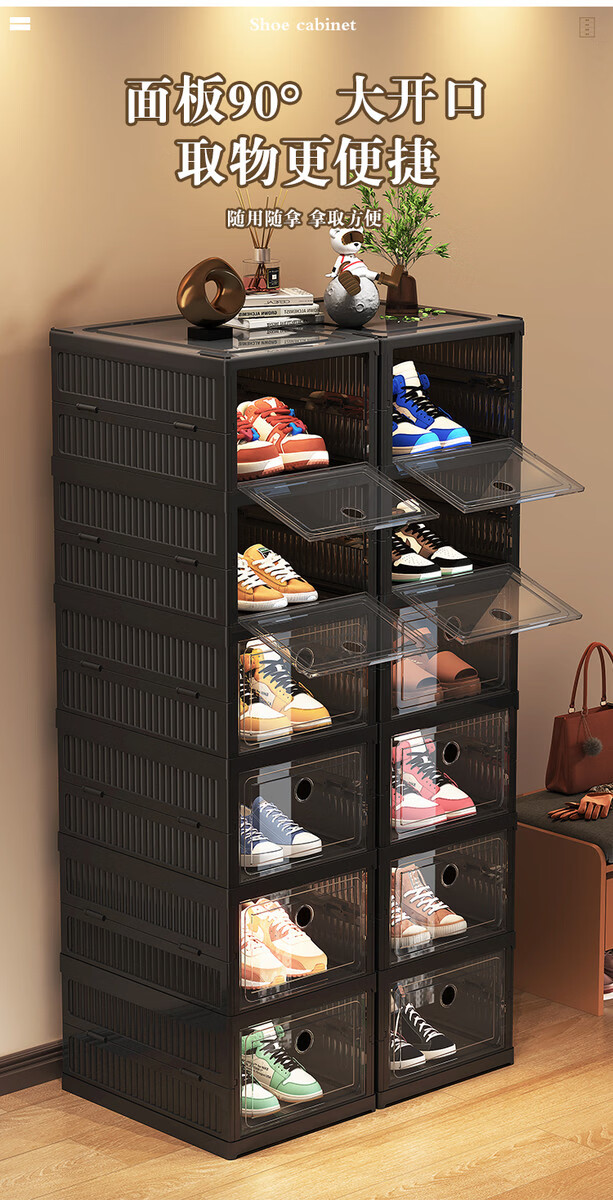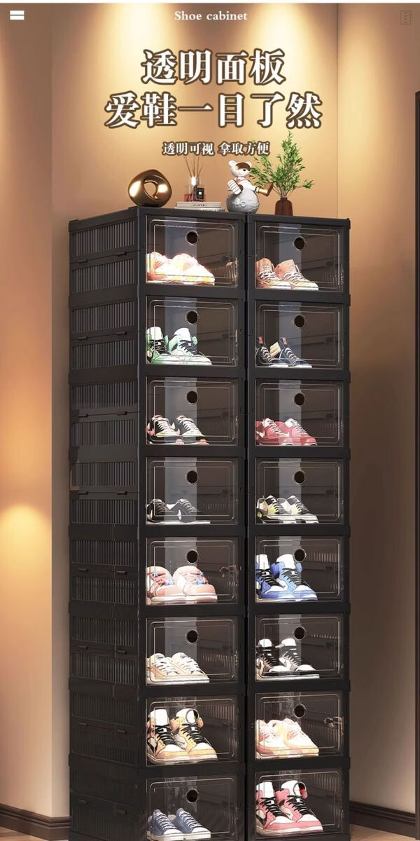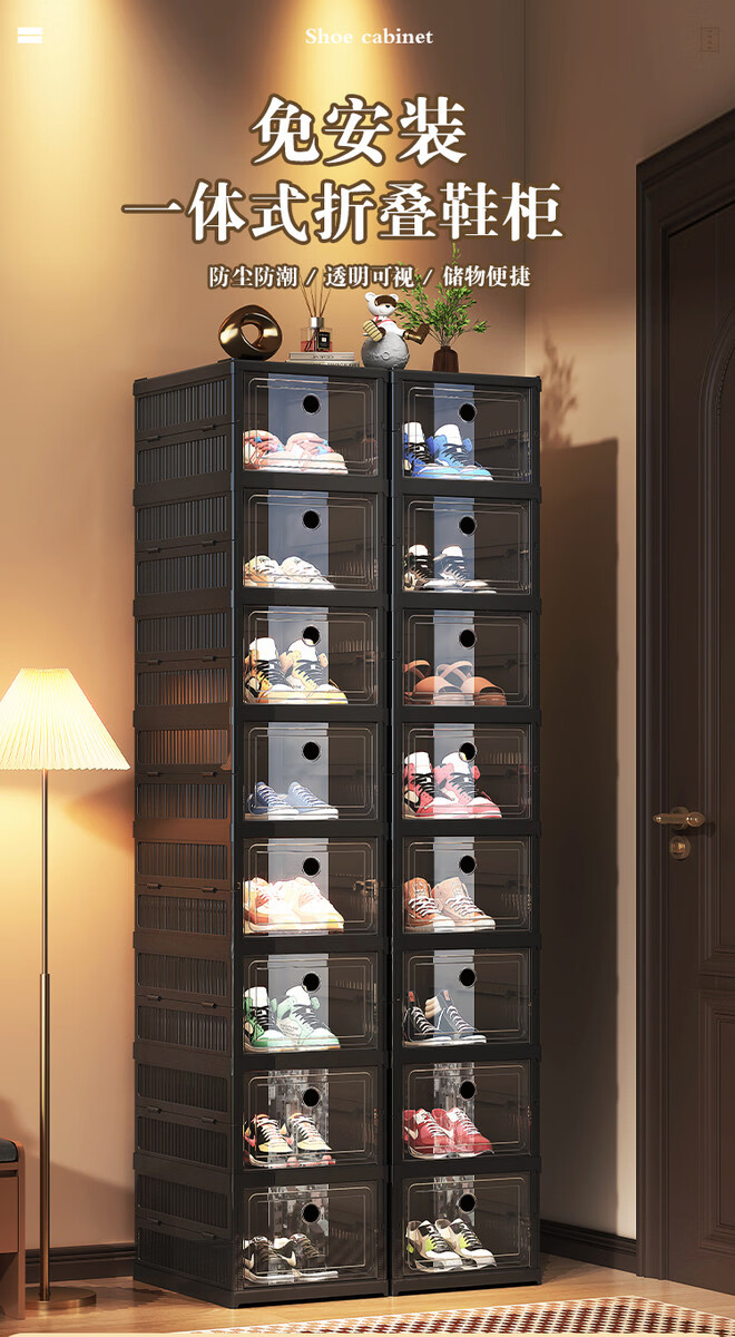 Yusenyi installation-free shoe cabinet folding shoe box storage box transparent home door simple dust-proof shoe rack shoe storage artifact black 2 columns 3 layers 6 compartments