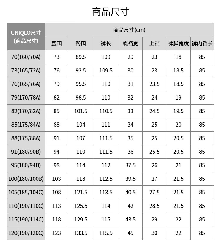 China (cm) 160-165/84-86 165-170 / 88-90 167-172 / 92-96 168-173 / 98-102 170-176 / 106-110