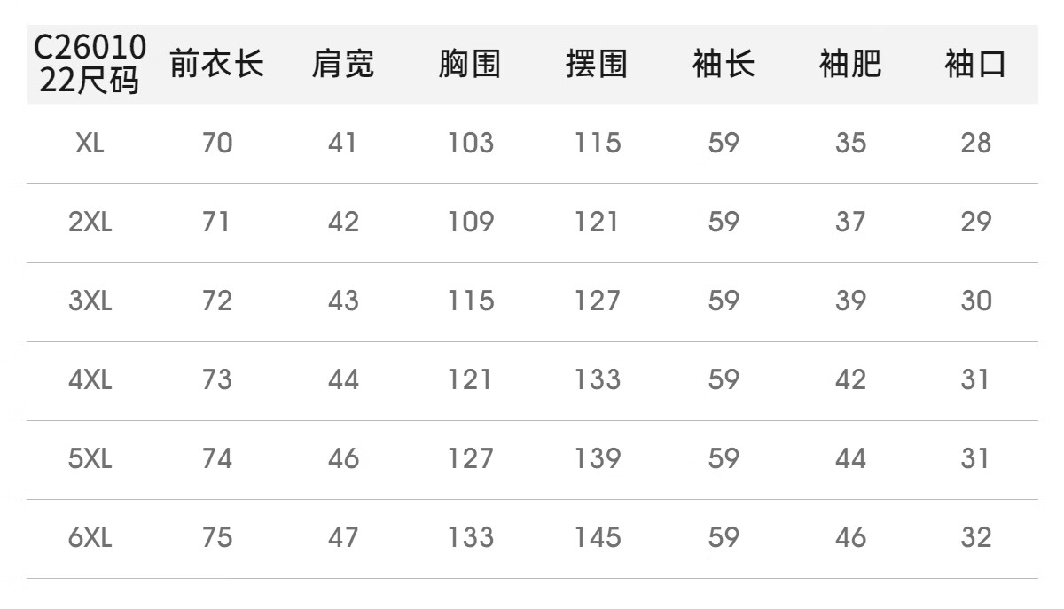 China(cm) 72-76 76-81 81-87 87-93 93-98
