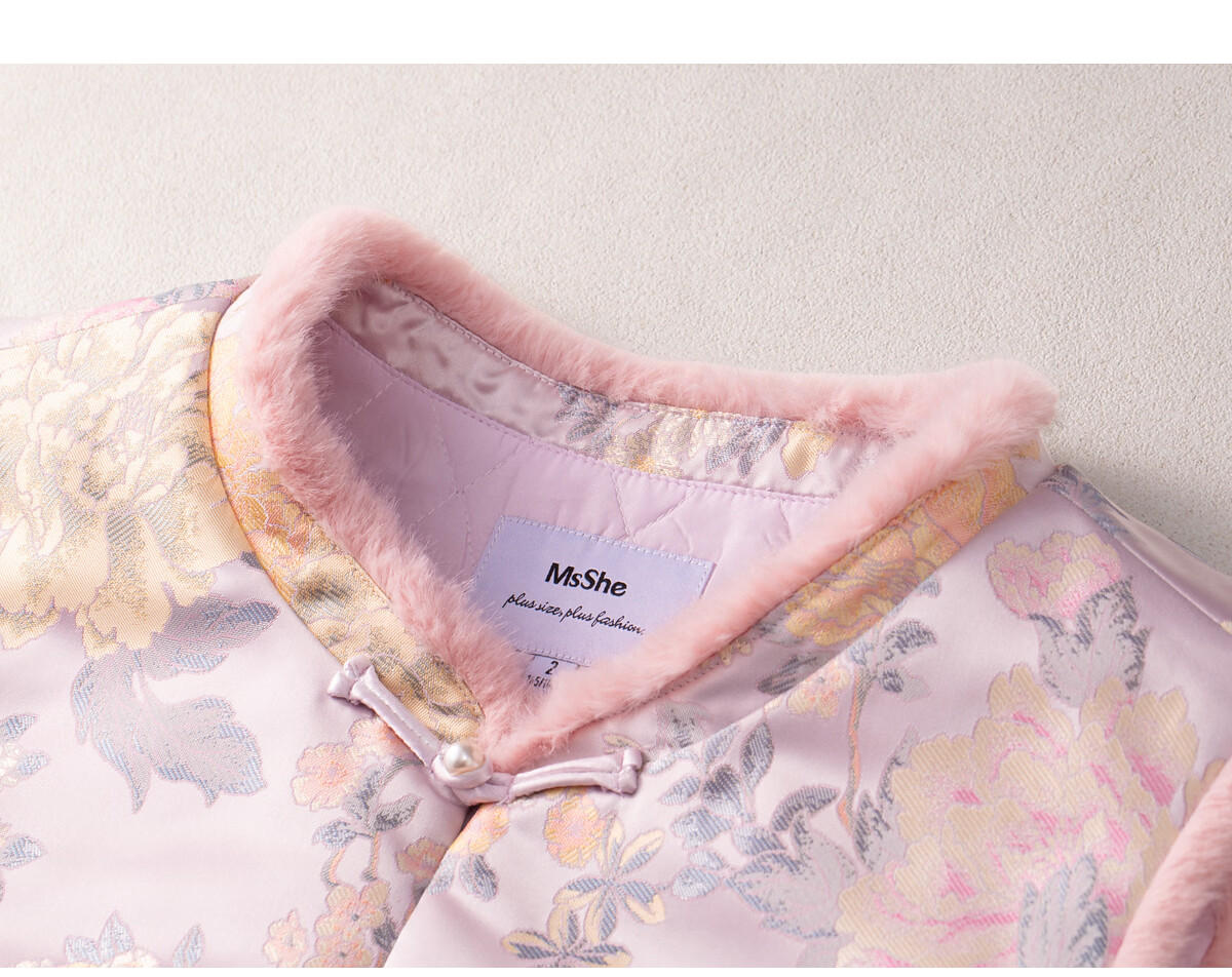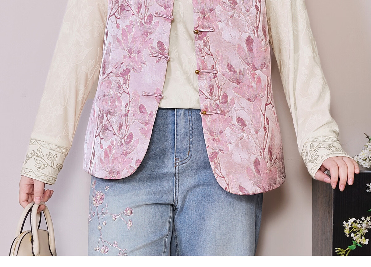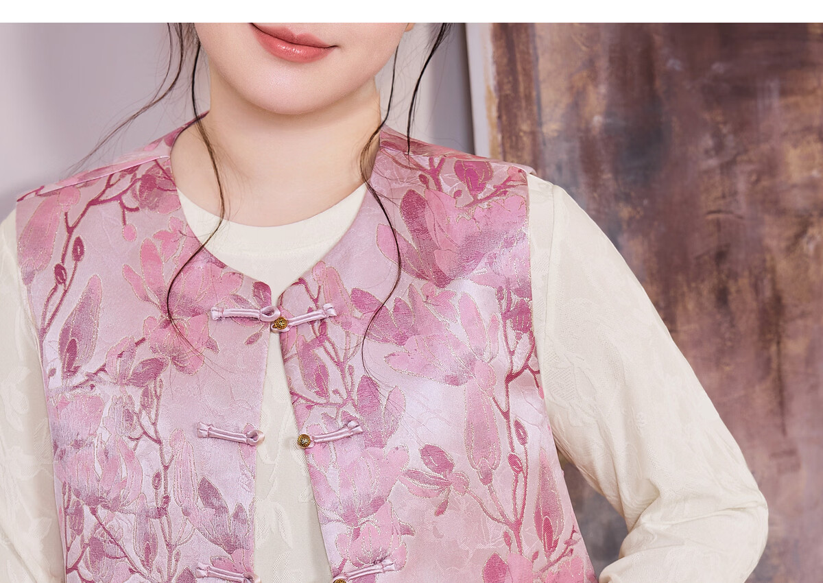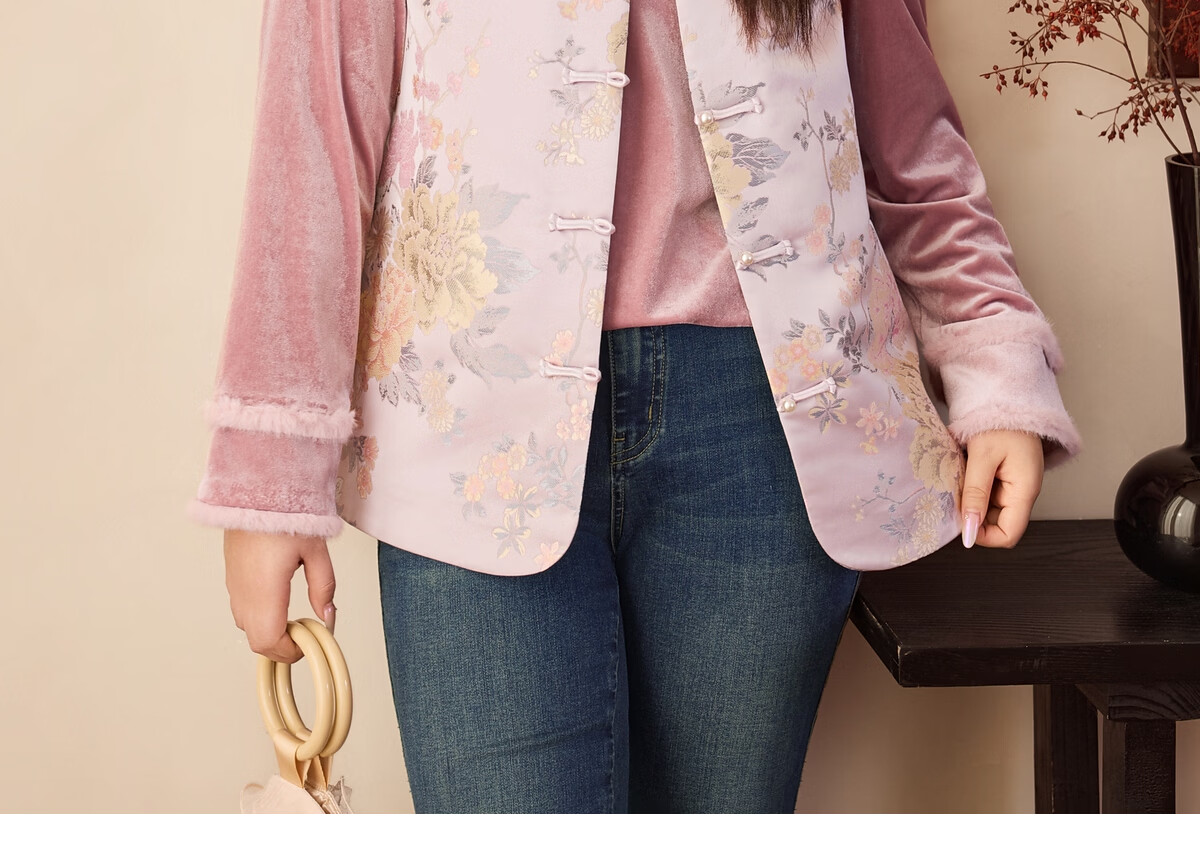 MsShe New Chinese Style Suit Large Size Women's Clothing 2026 Spring Clothes Imitation Mink Strip Buckle Cotton Vest Small Shirt Spring Vest Cherry Blossom Pink Ready Stock 4XL