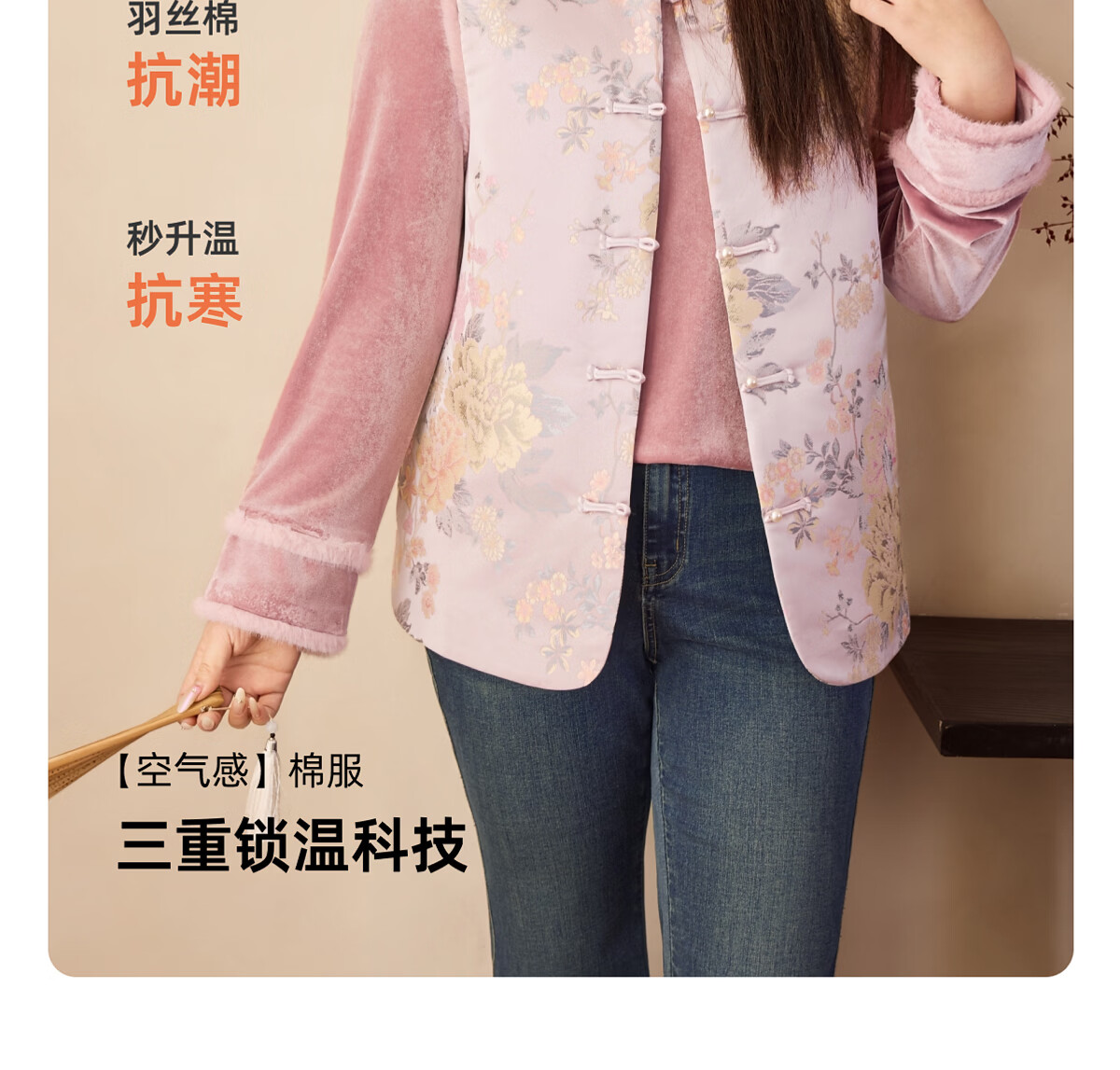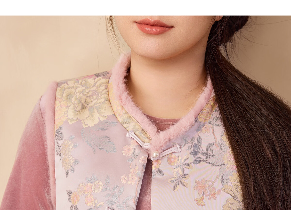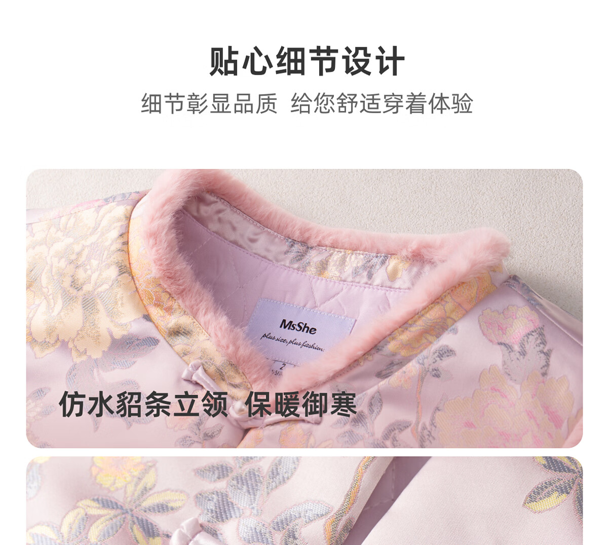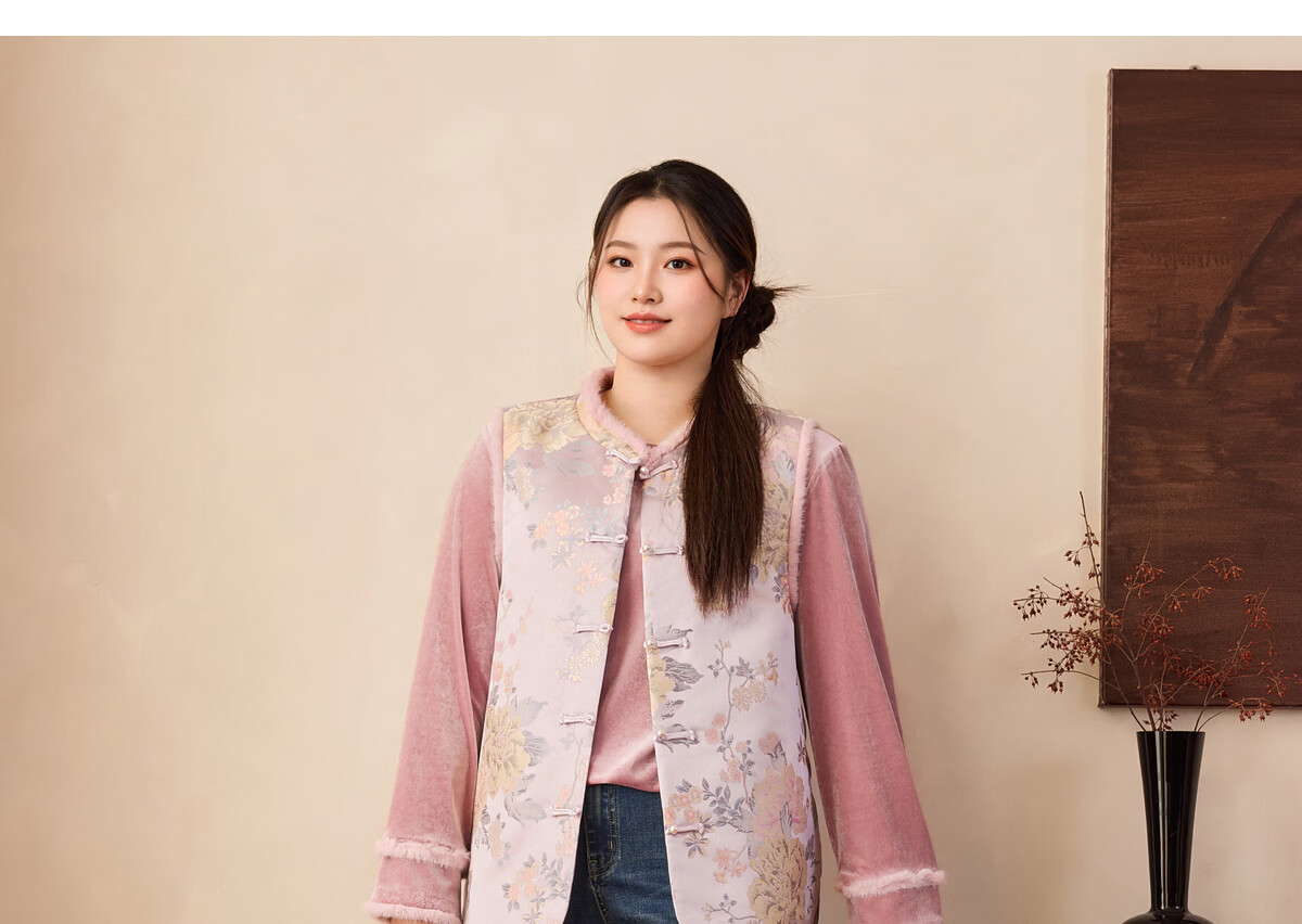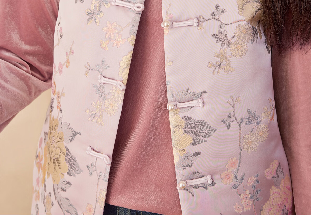 MsShe New Chinese Style Suit Large Size Women's Clothing 2026 Spring Clothes Imitation Mink Strip Buckle Cotton Vest Small Shirt Spring Vest Cherry Blossom Pink Ready Stock 4XL