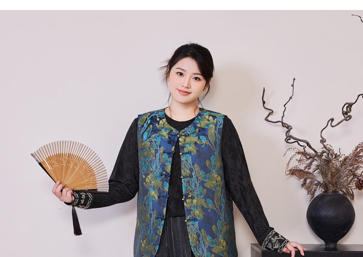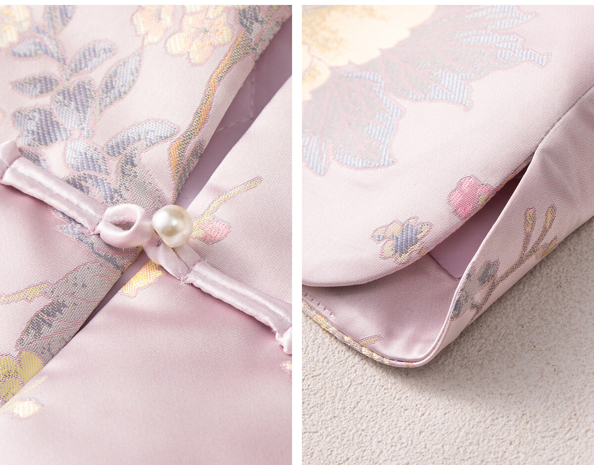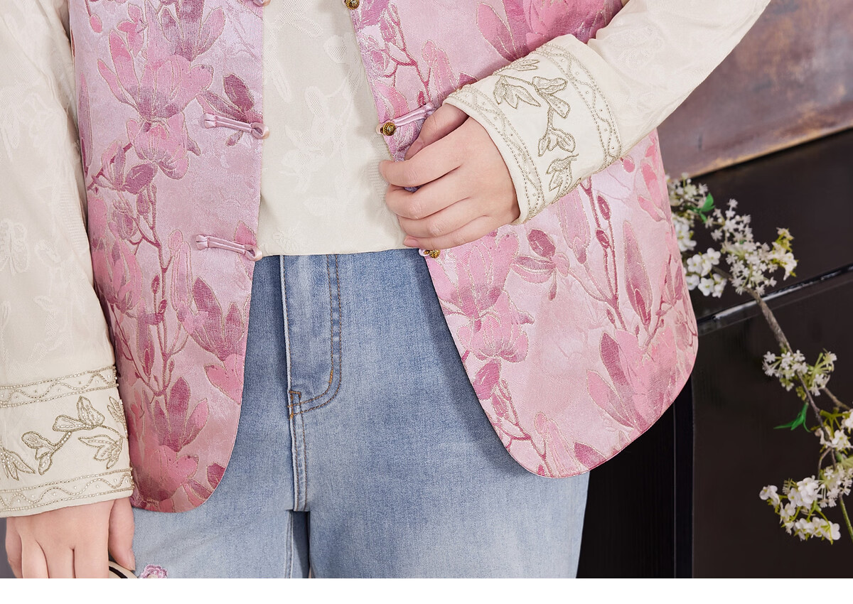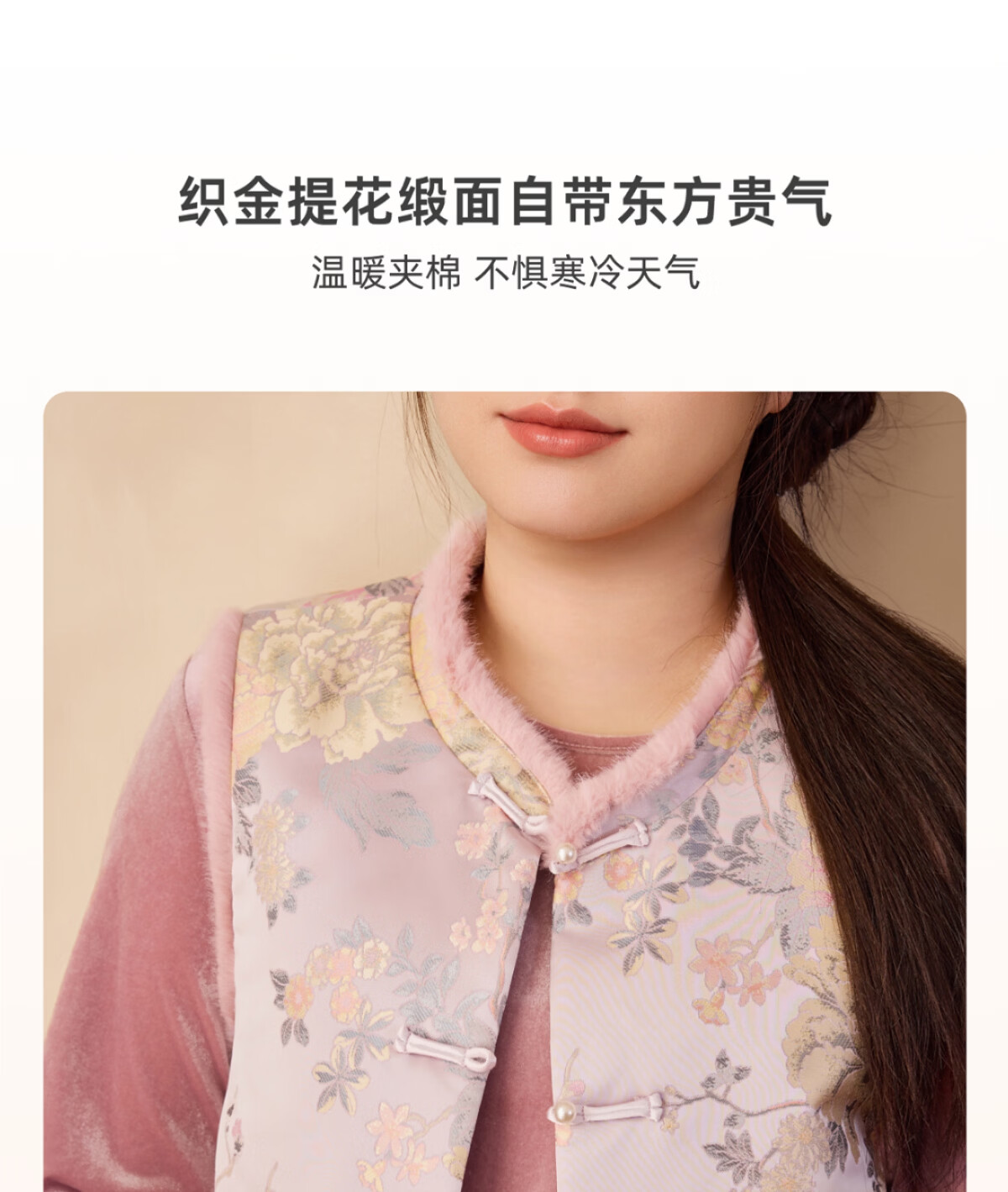 MsShe New Chinese Style Suit Large Size Women's Clothing 2026 Spring Clothes Imitation Mink Strip Buckle Cotton Vest Small Shirt Spring Vest Cherry Blossom Pink Ready Stock 4XL