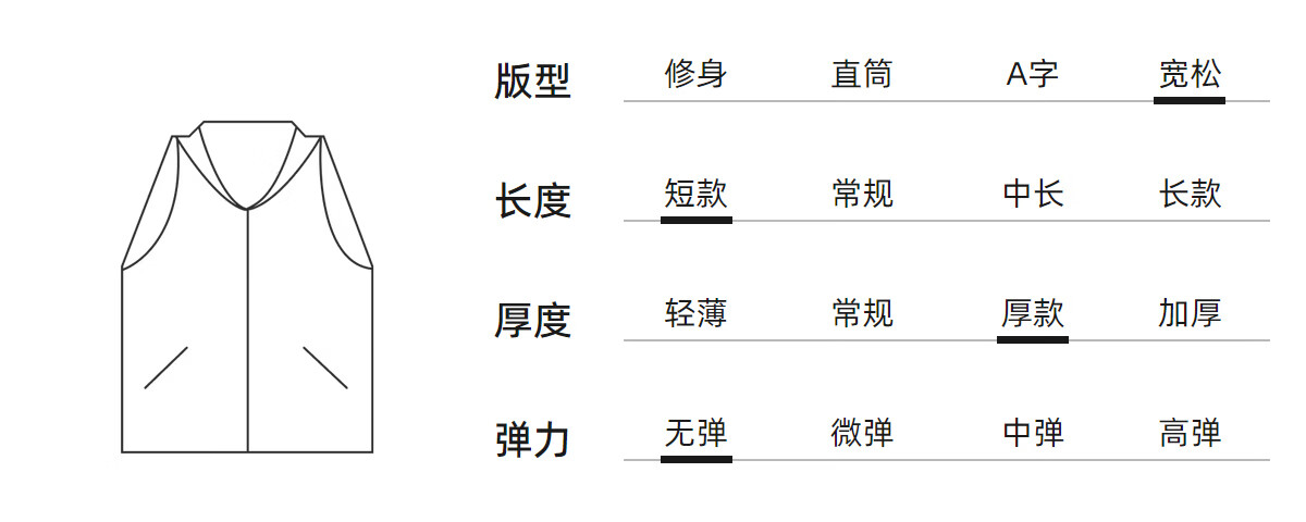 China (cm) 165 / 88-90 170 / 96-98 175 / 108-110 180 / 118-122 185 / 126-130