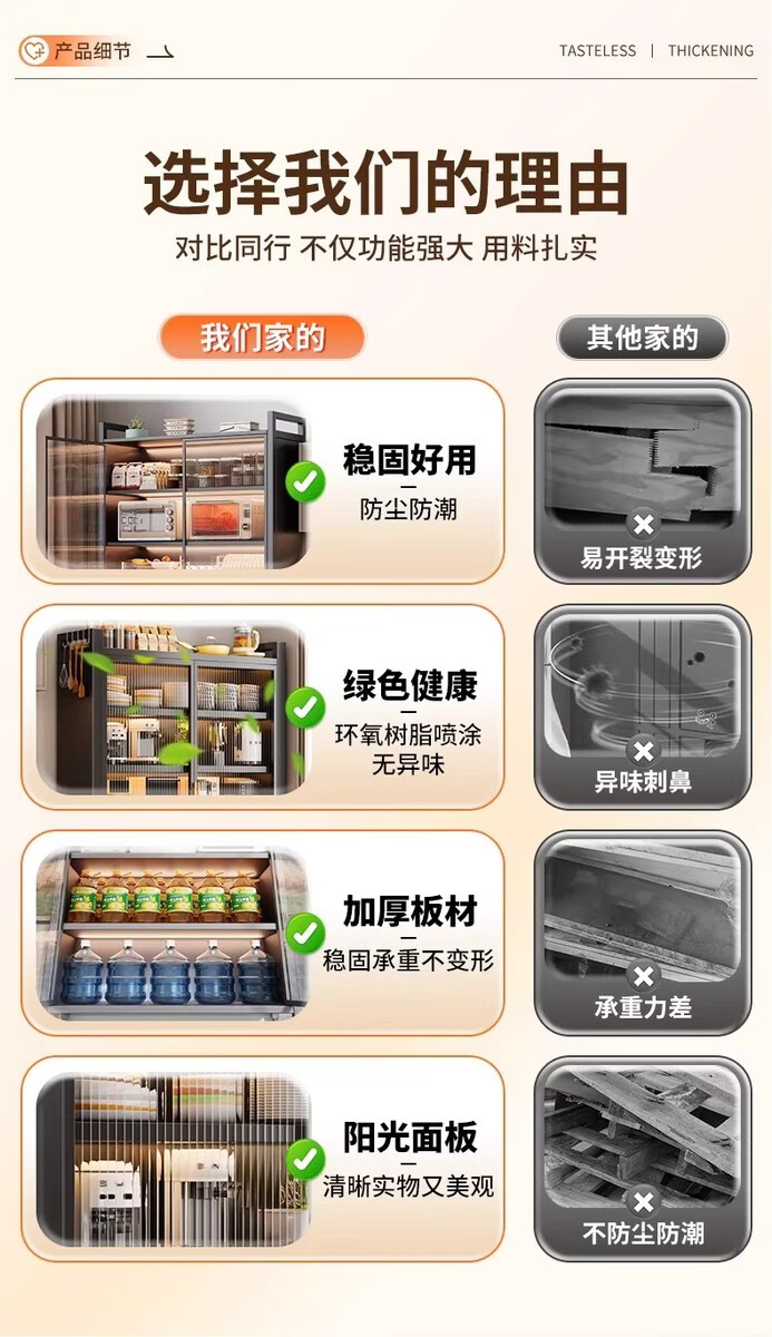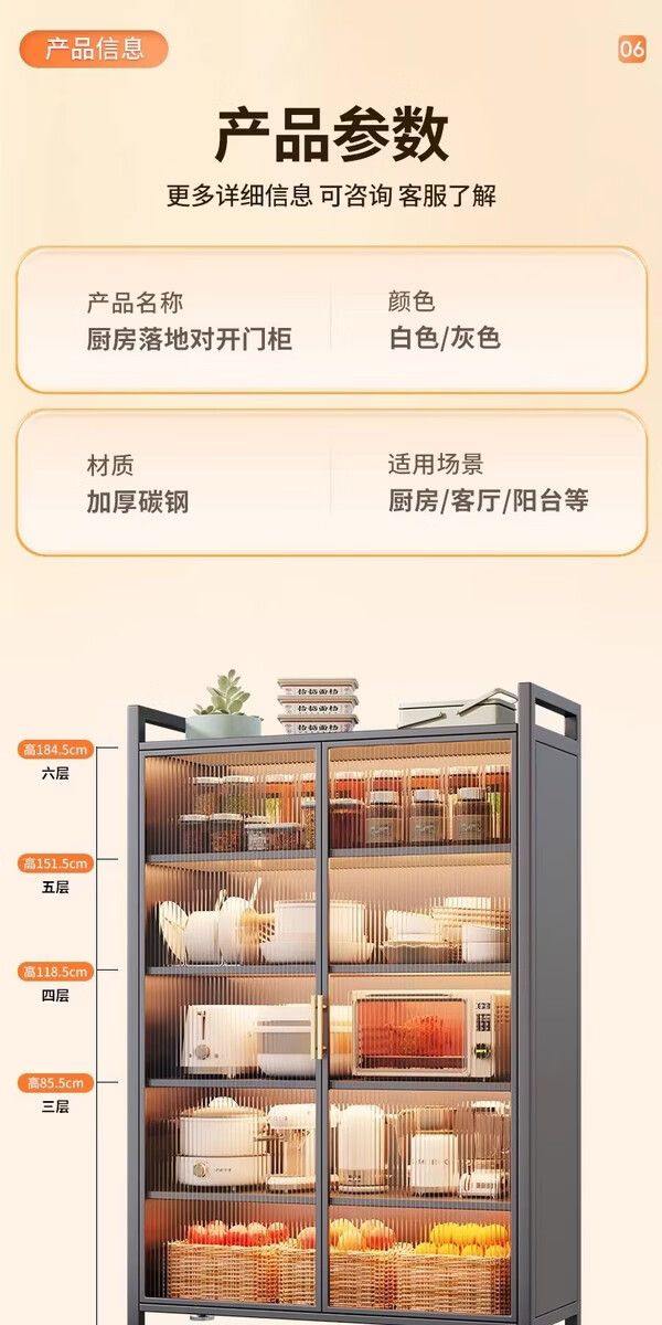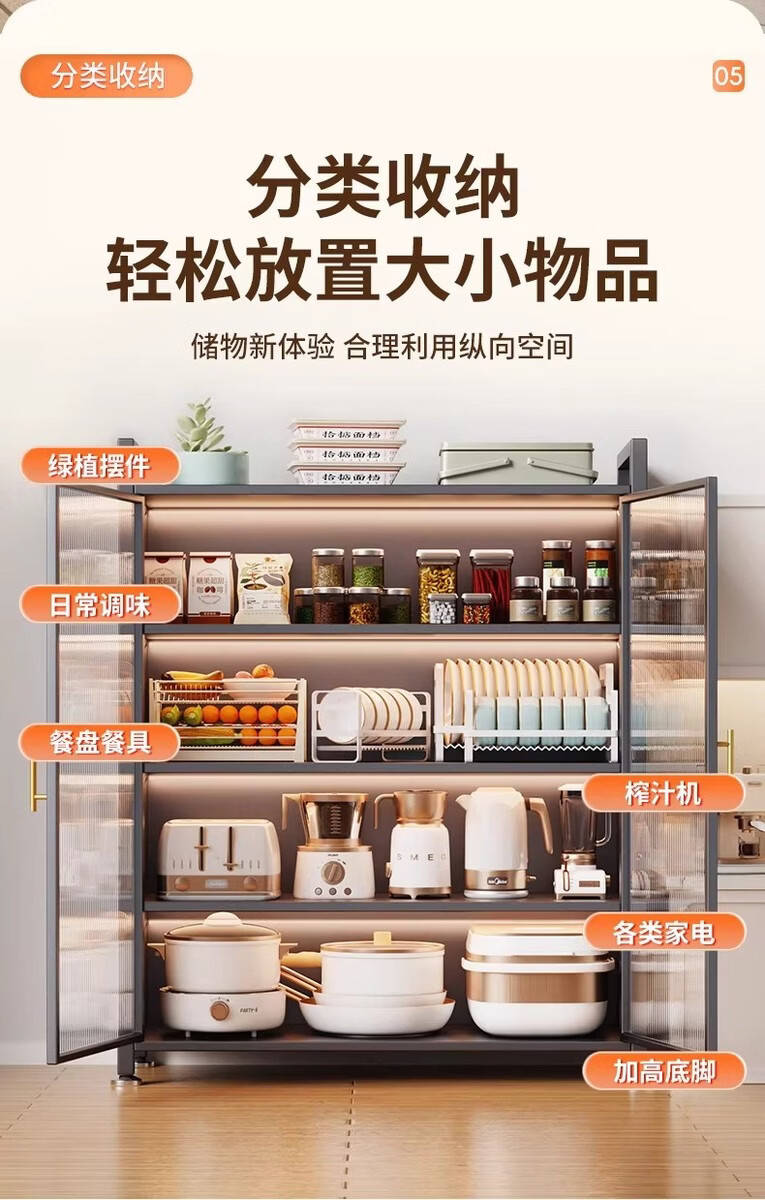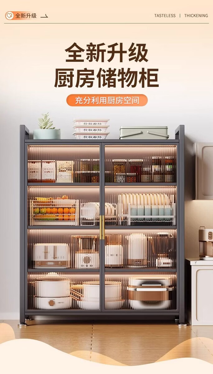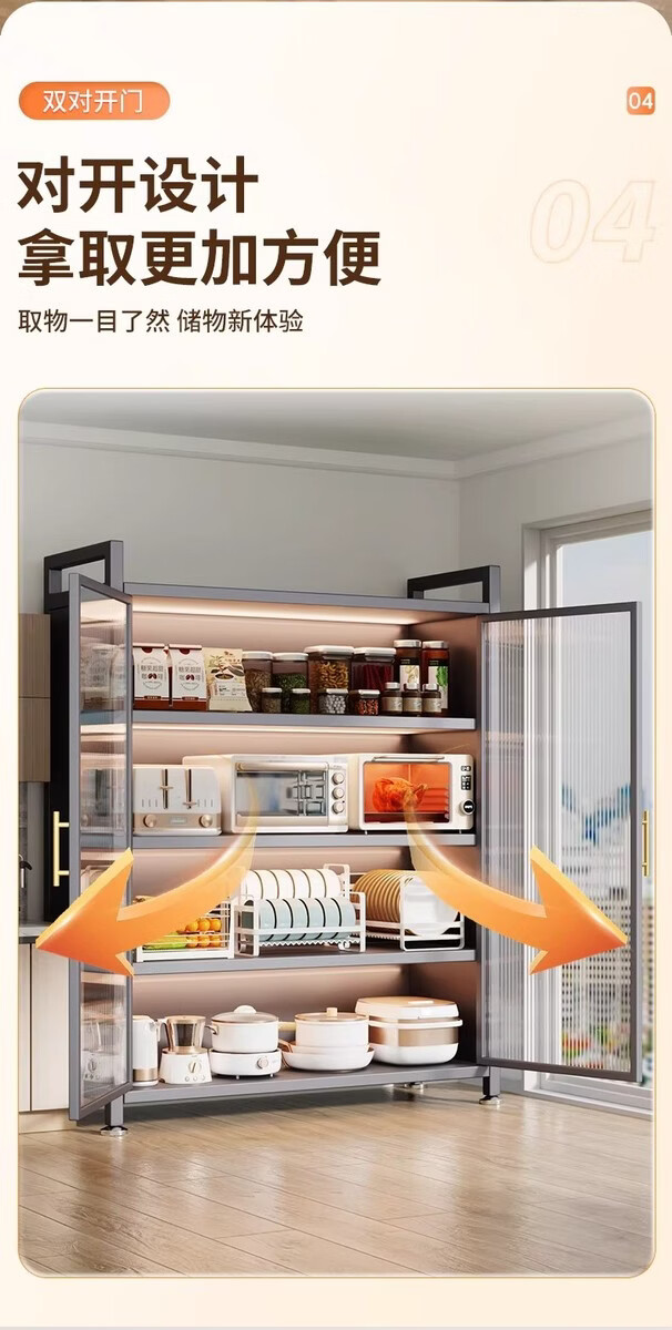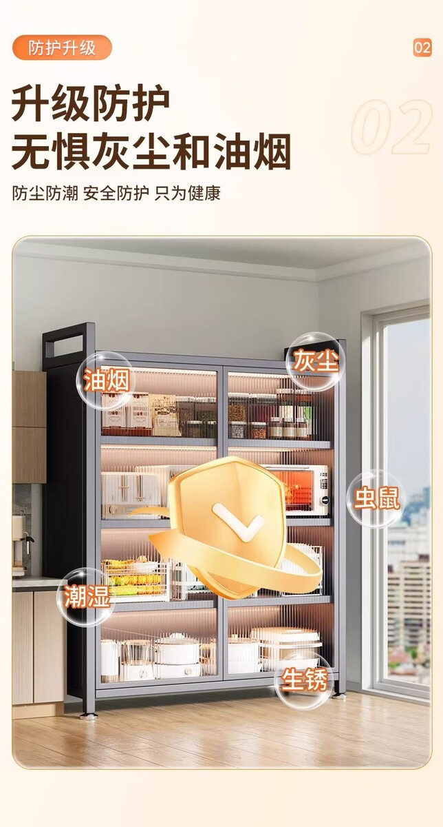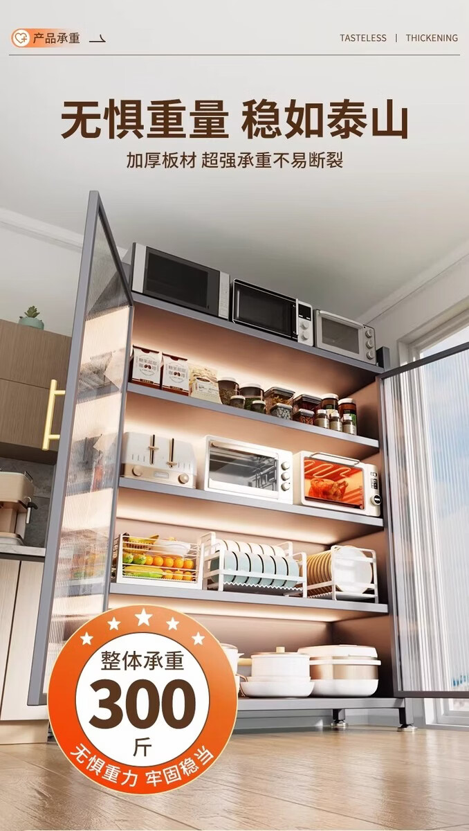 Fantasy kitchen rack floor-standing multi-layer household microwave bowl storage cabinet dust-proof floor-standing multi-functional cabinet storage cabinet gray double-door three-layer 1200x350x855 extra thick extra rough/bearing