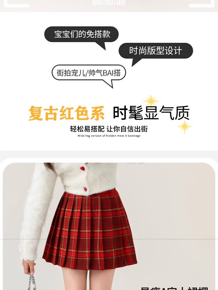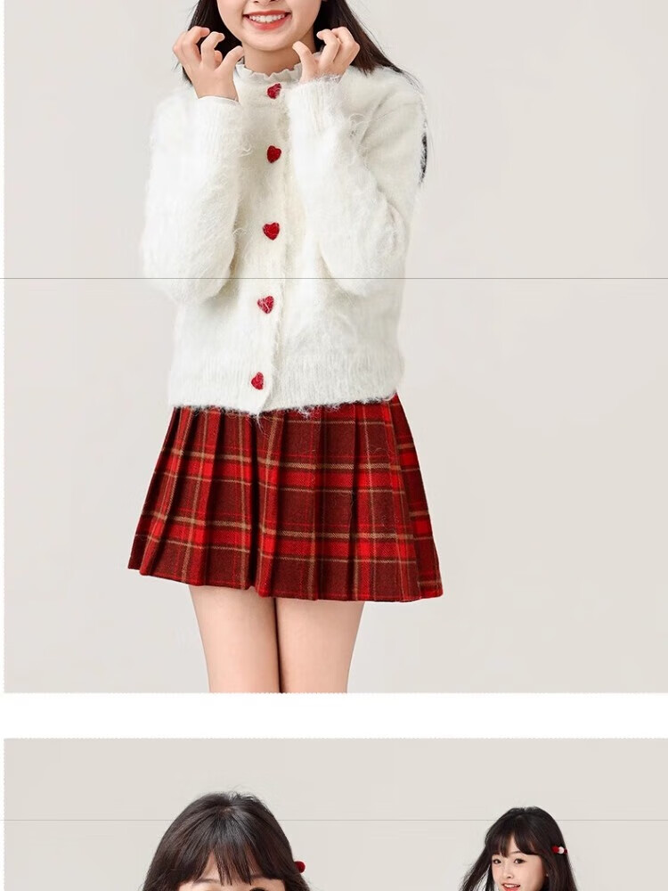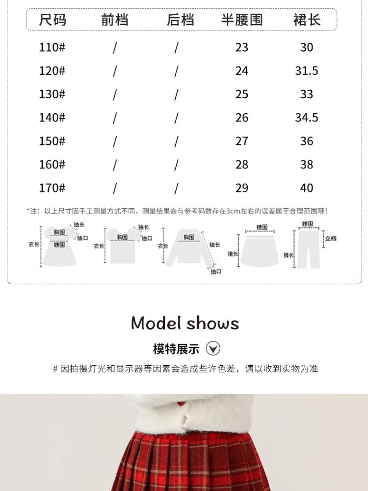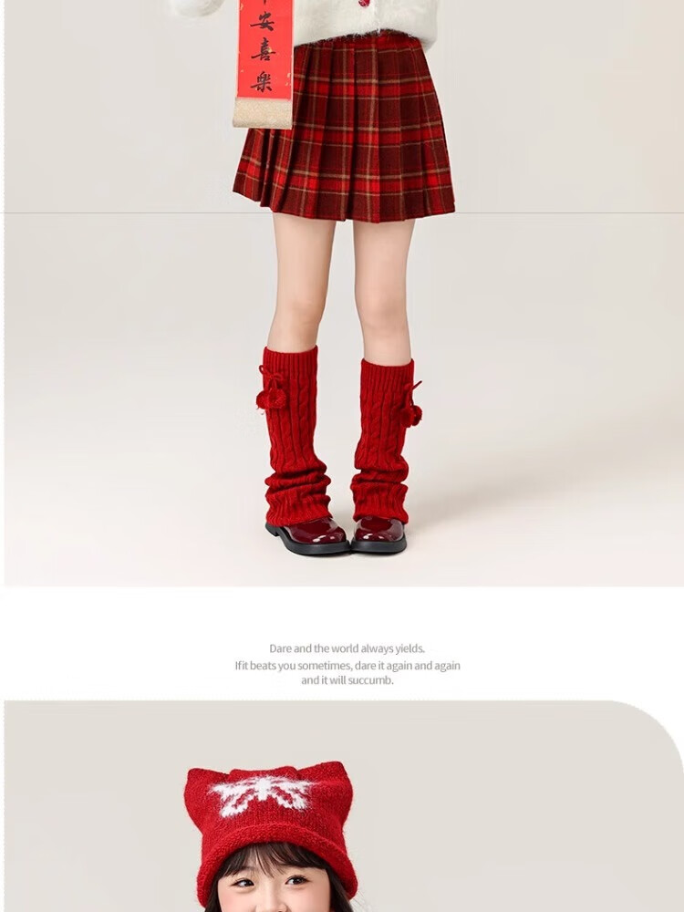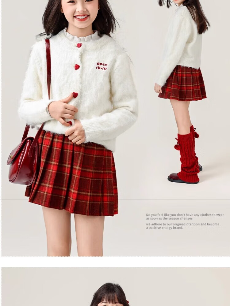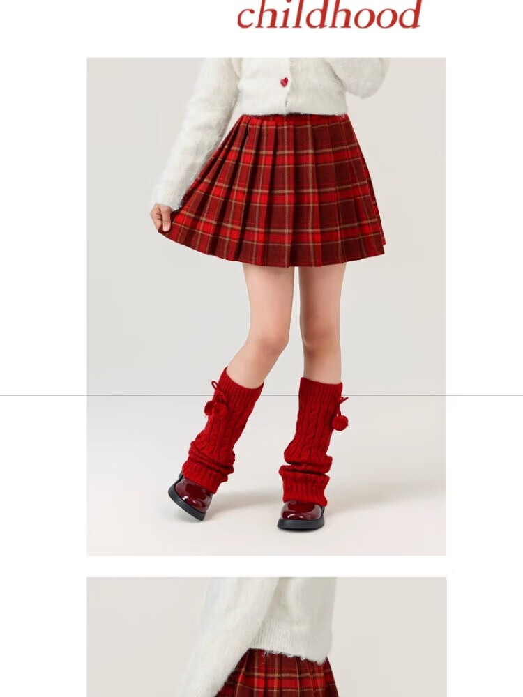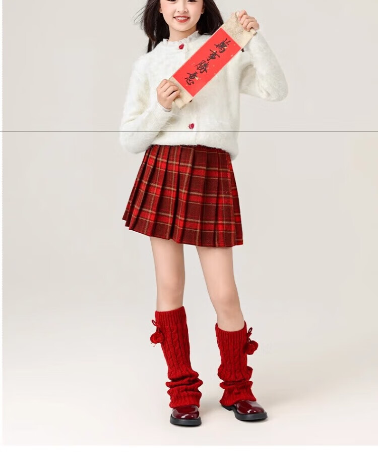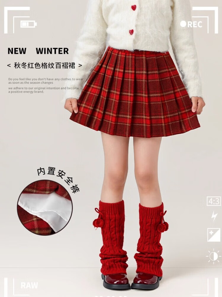 I.KARNOW Girls' Short Skirt Autumn and Winter 2026 New Skirt Red Girls' Plaid Skirt Winter Clothing Western Style Children's New Year's Skirt 19800 Red Sweater + 4539 Red Plaid Skirt 130