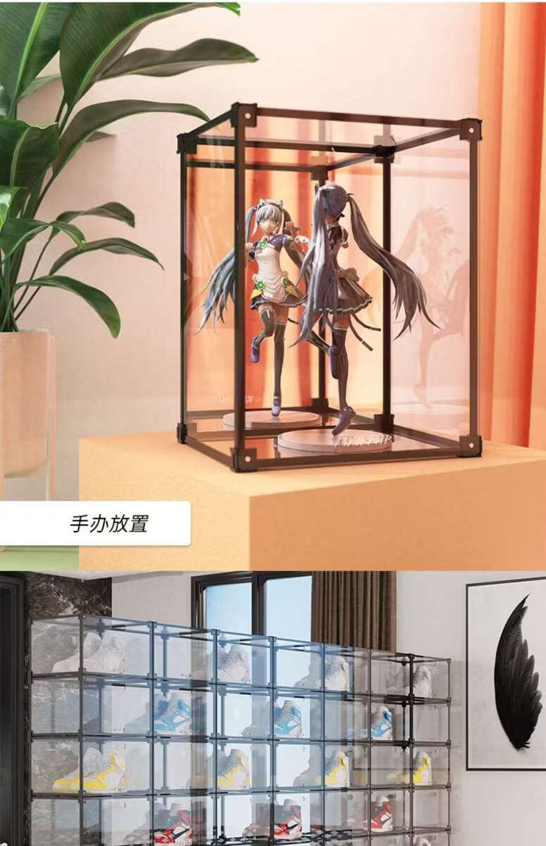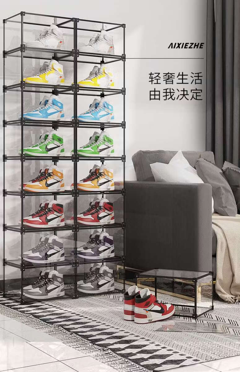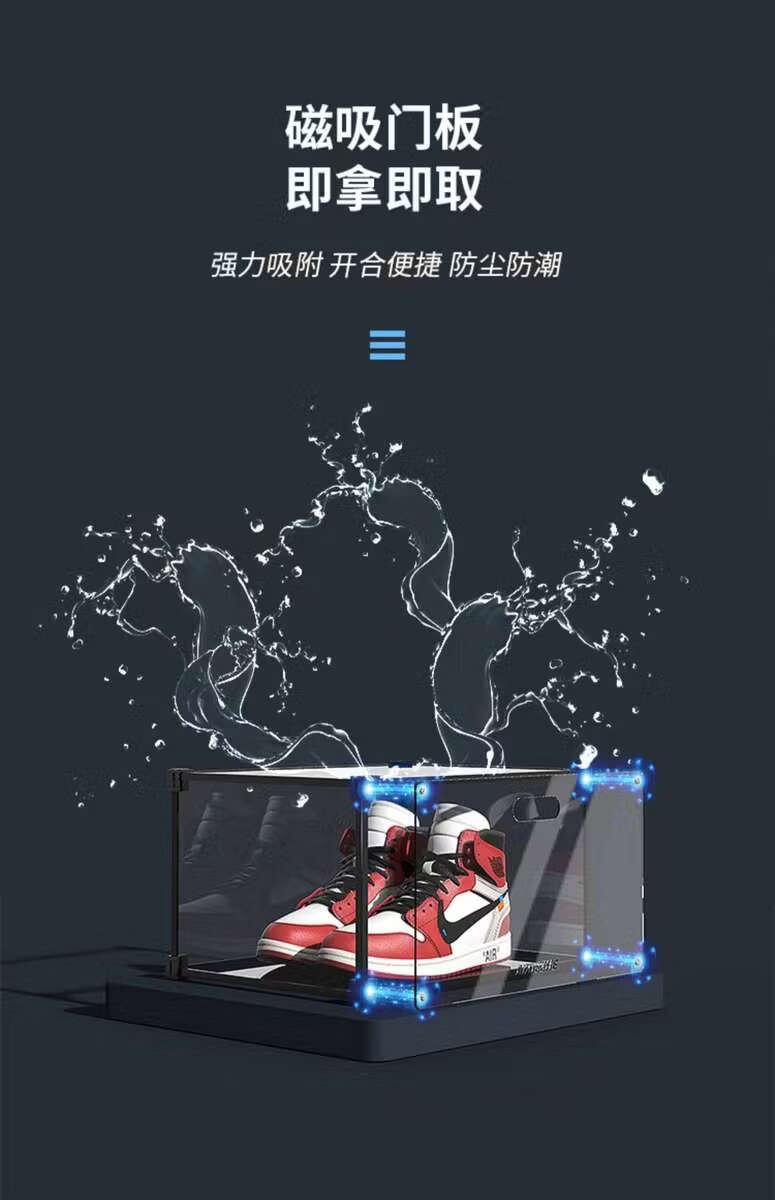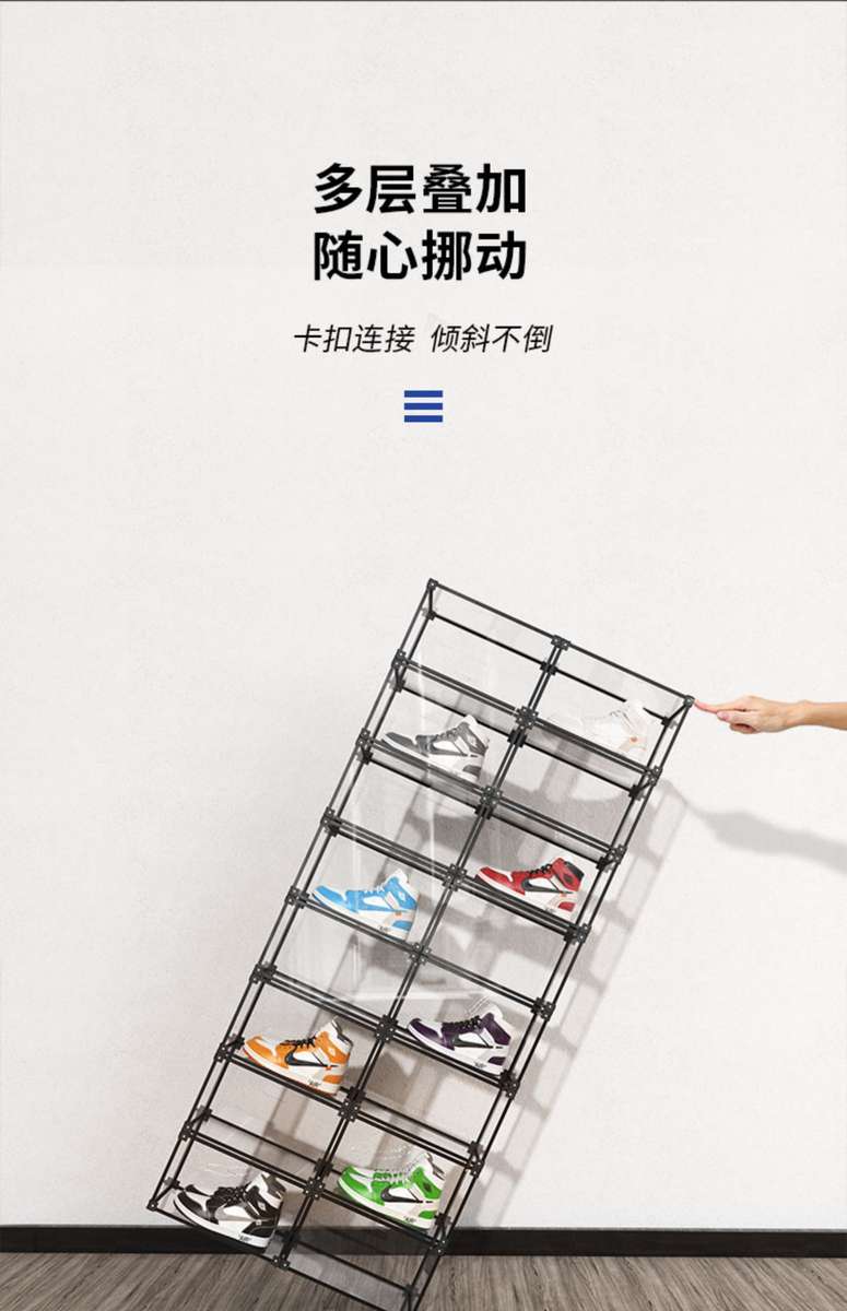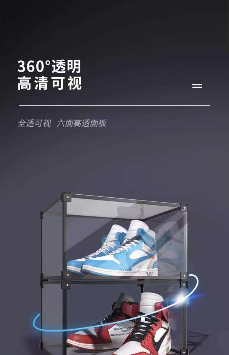 Yusenyi Transparent Wall Shoe Box Magnetic Side-Opening Shoe Cabinet Can Be Assembled Foyer Space Shoe Rack Classic Black 4 Pack 32.5x27x19cm