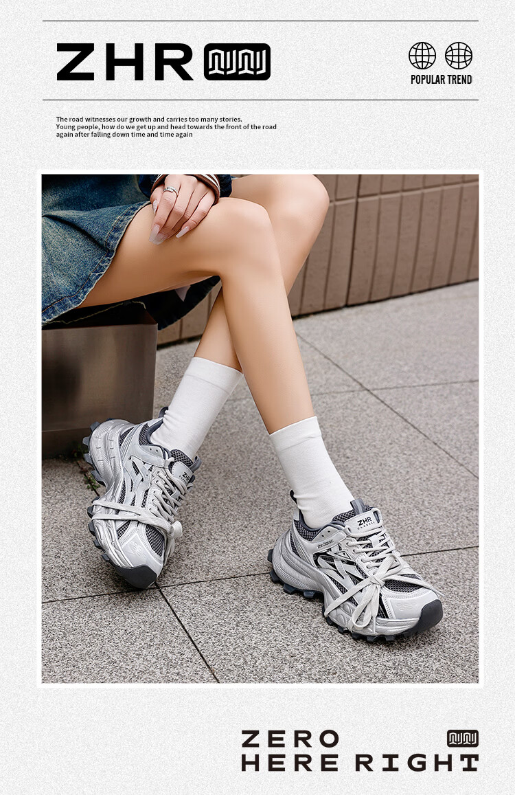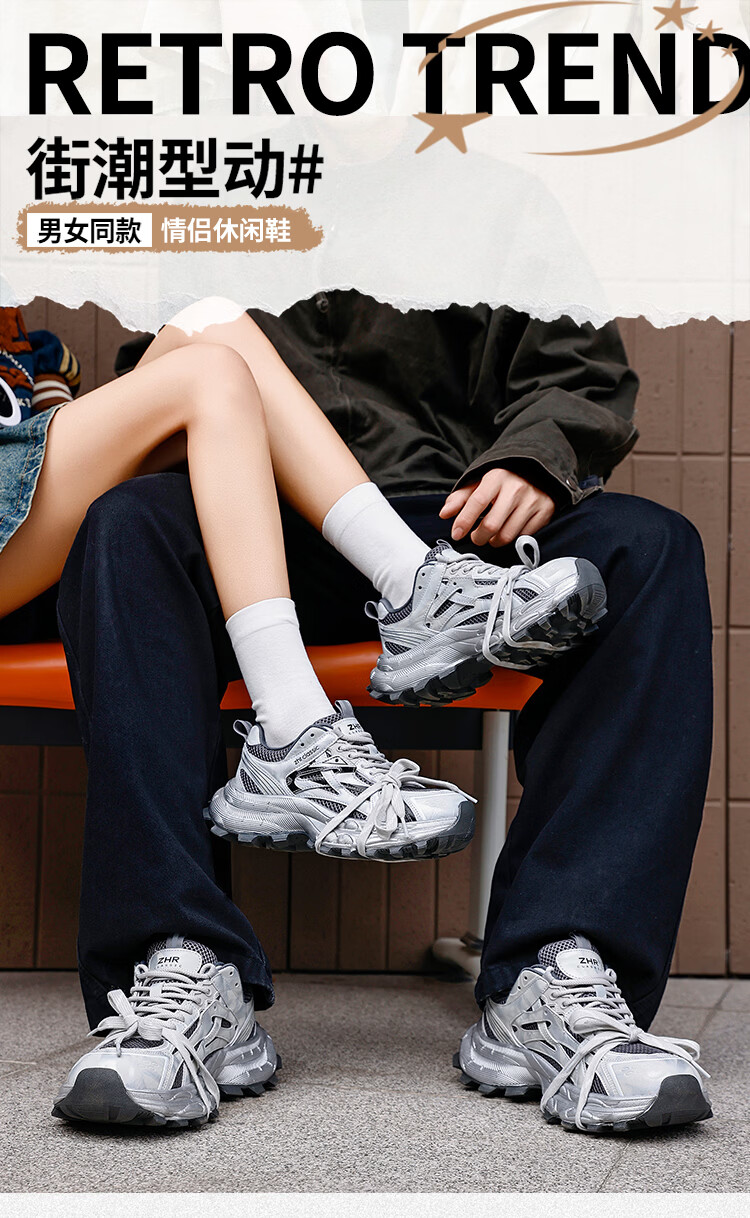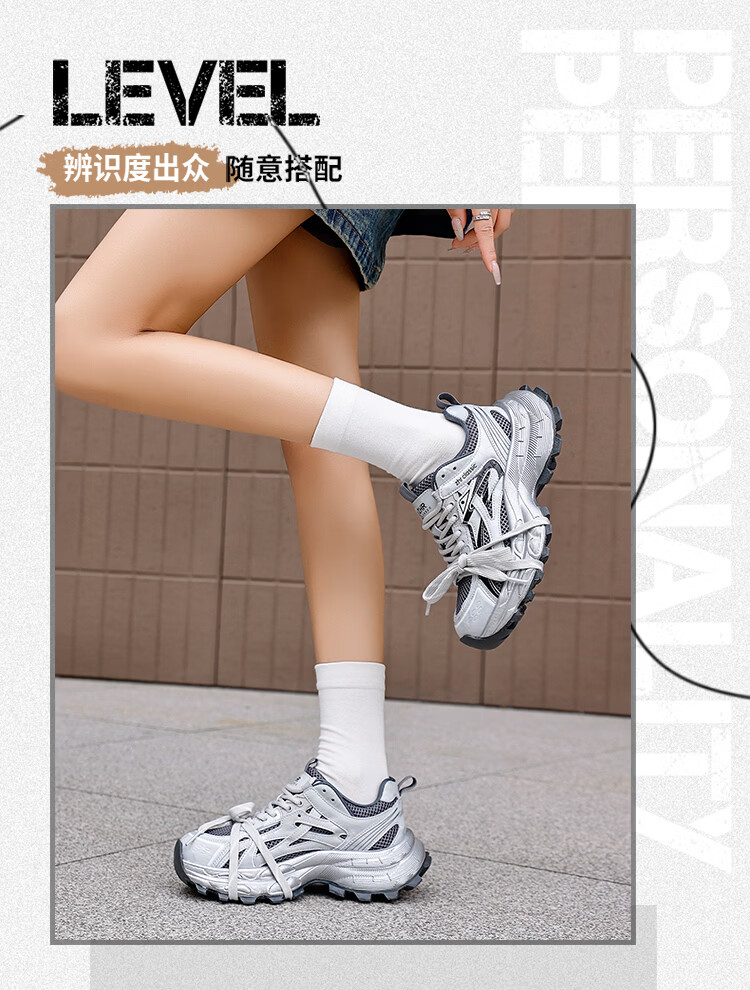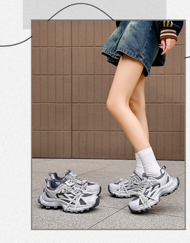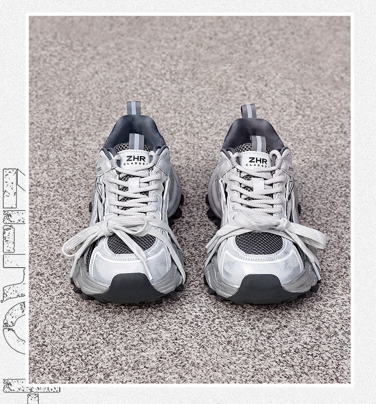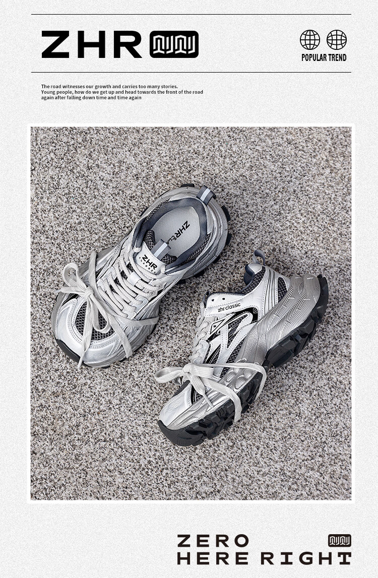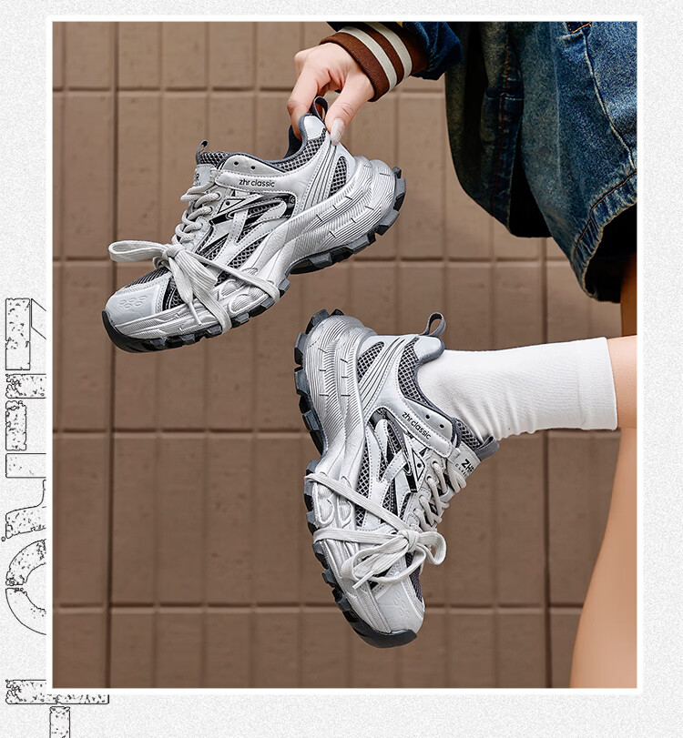 ZHR is silver daddy shoes for women, 2026 spring new thick-soled sports and casual shoes, light and wear-resistant, same-style trendy shoes for men and women, silver gray 35