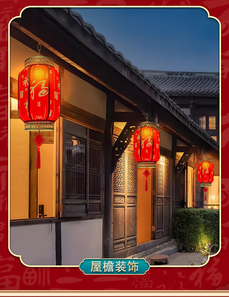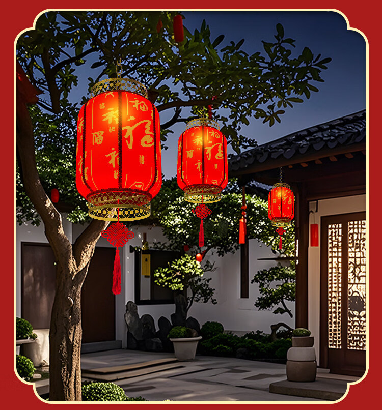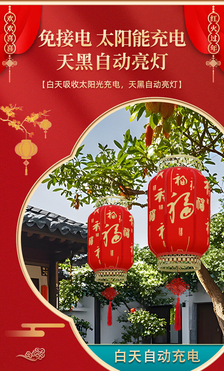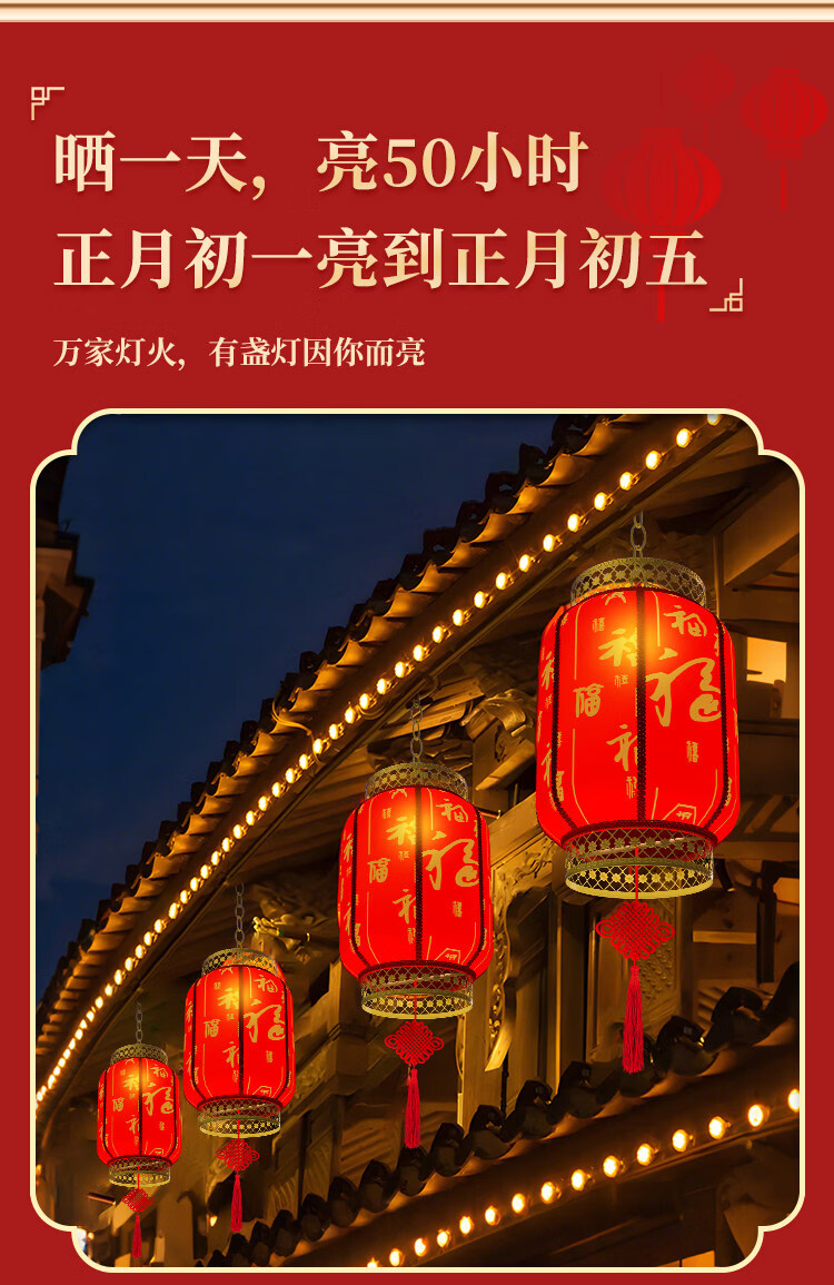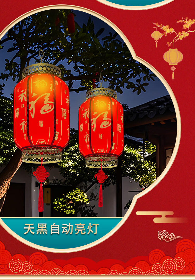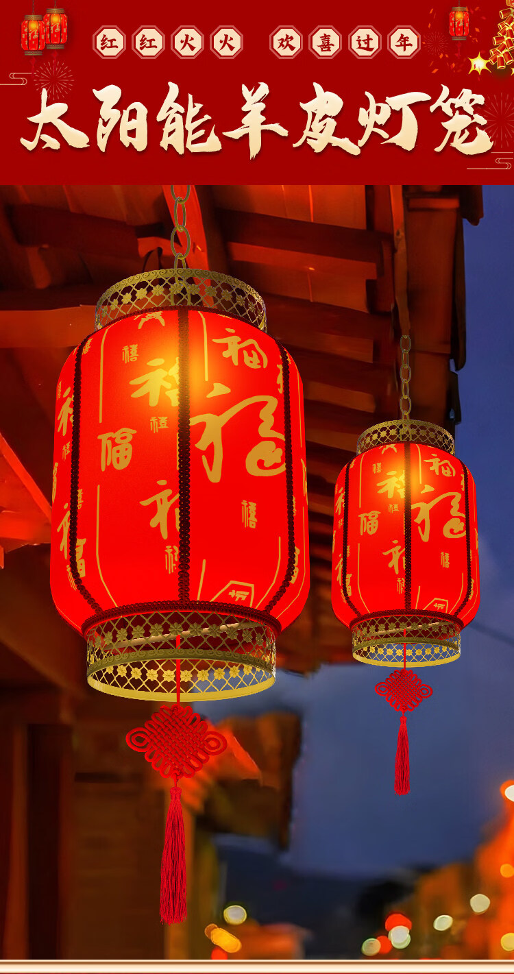 Xushansi 2026 New Solar Outdoor Garden Red Lantern Waterproof Sunscreen Antique Style Chinese Palace Lantern Chinese Style Chandelier Yuanfu Pendant Lamp-2 Pack Family Portrait-2 Pack