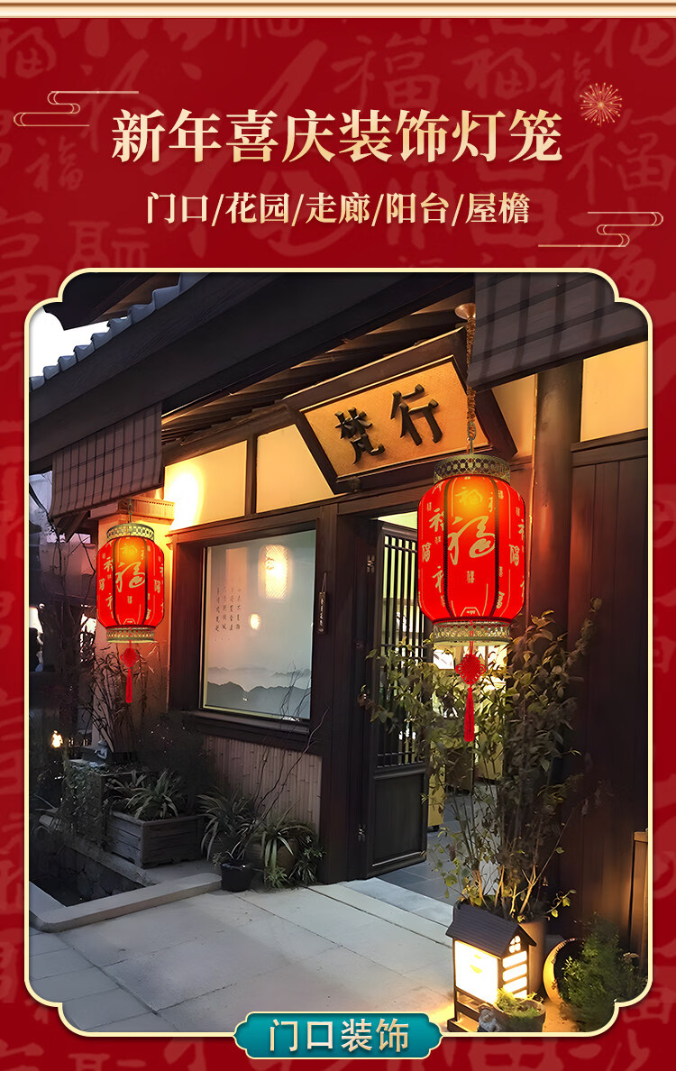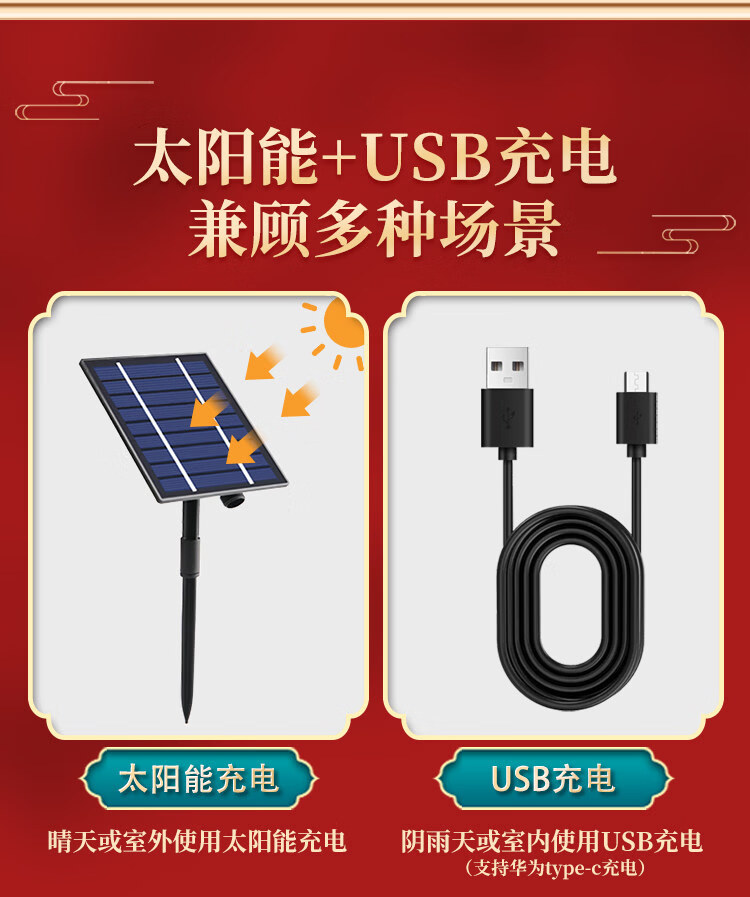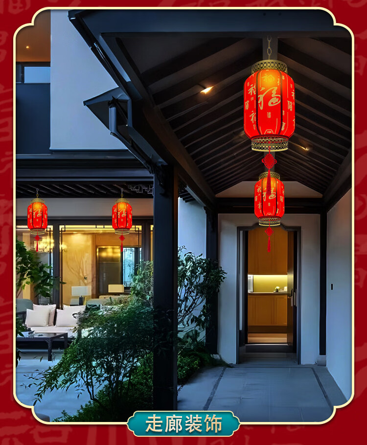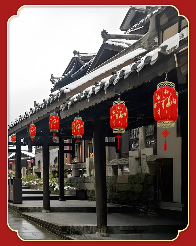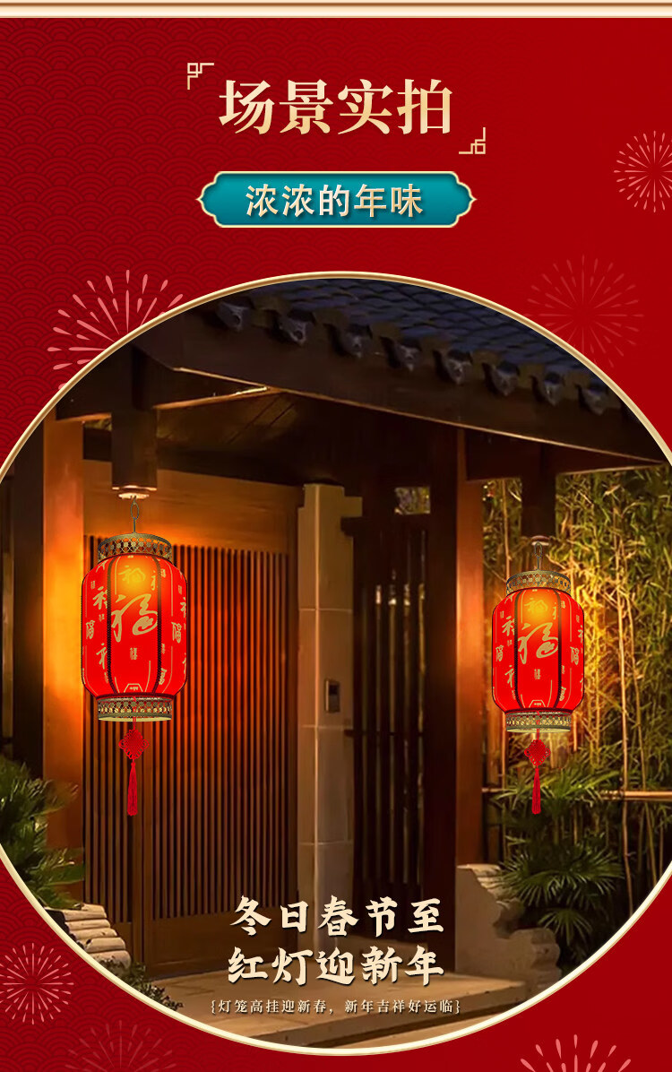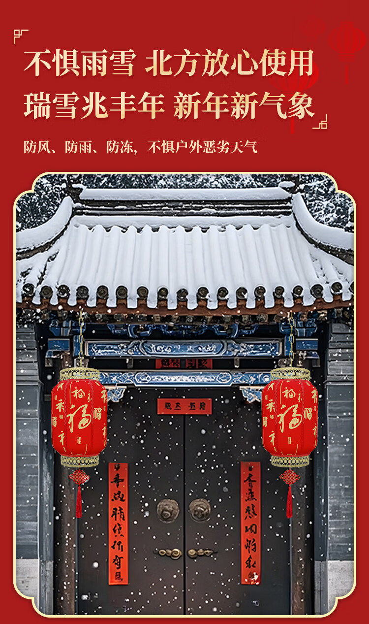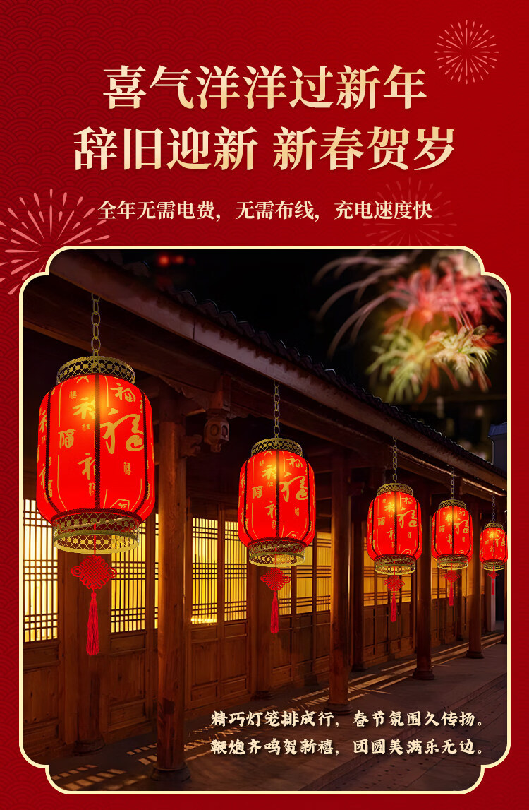 Xushansi 2026 New Solar Outdoor Garden Red Lantern Waterproof Sunscreen Antique Style Chinese Palace Lantern Chinese Style Chandelier Yuanfu Pendant Lamp-2 Pack Family Portrait-2 Pack