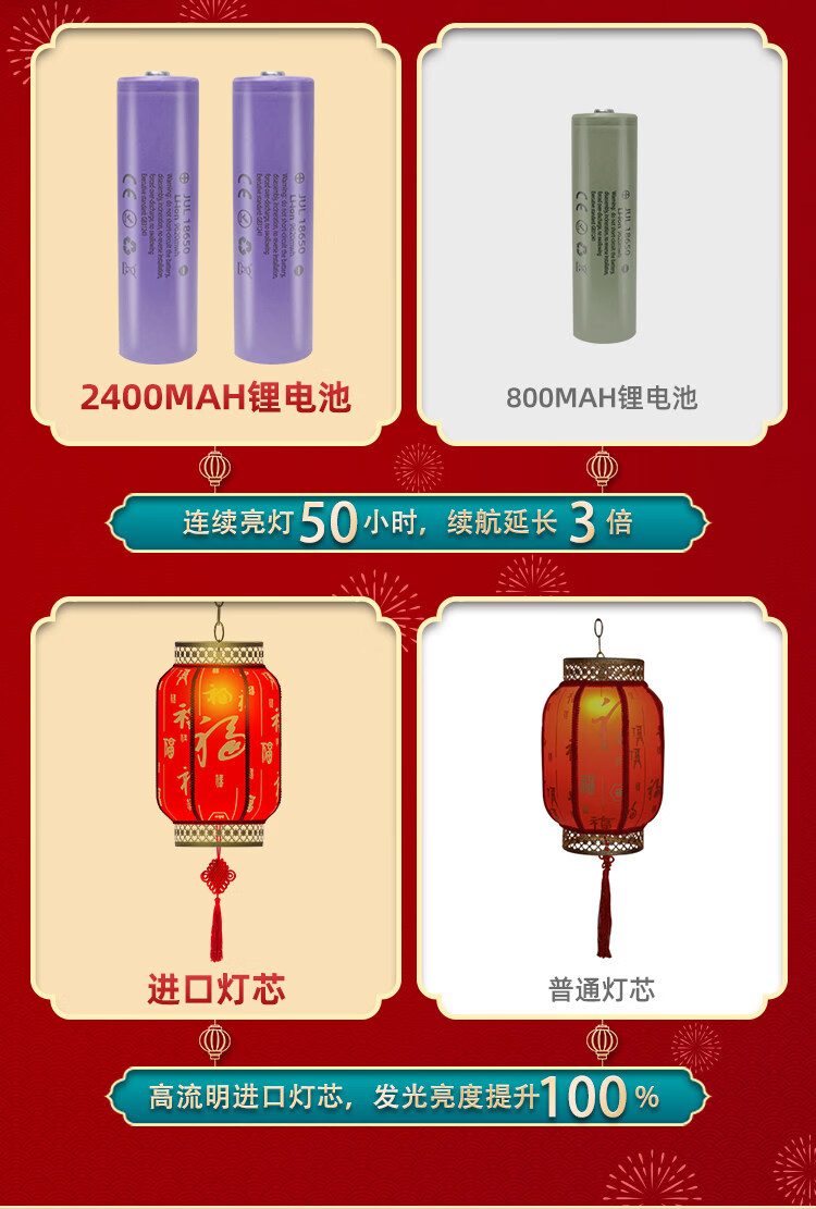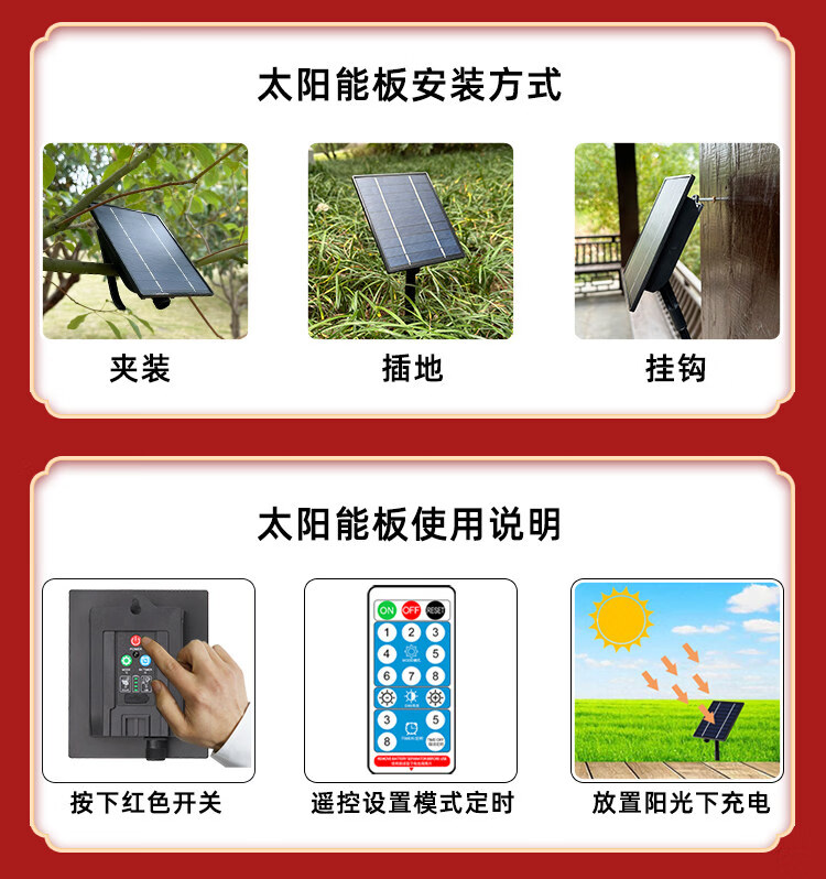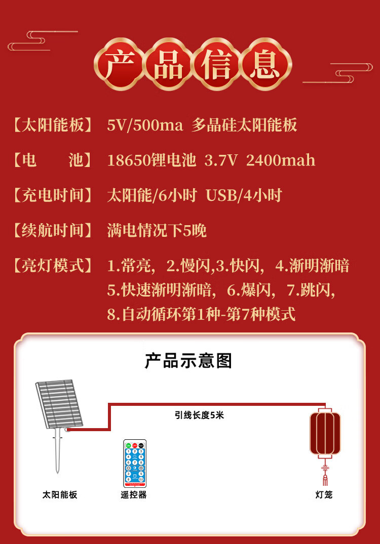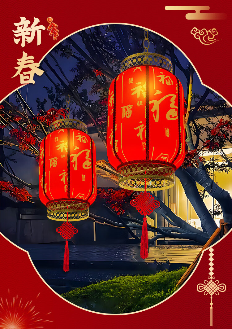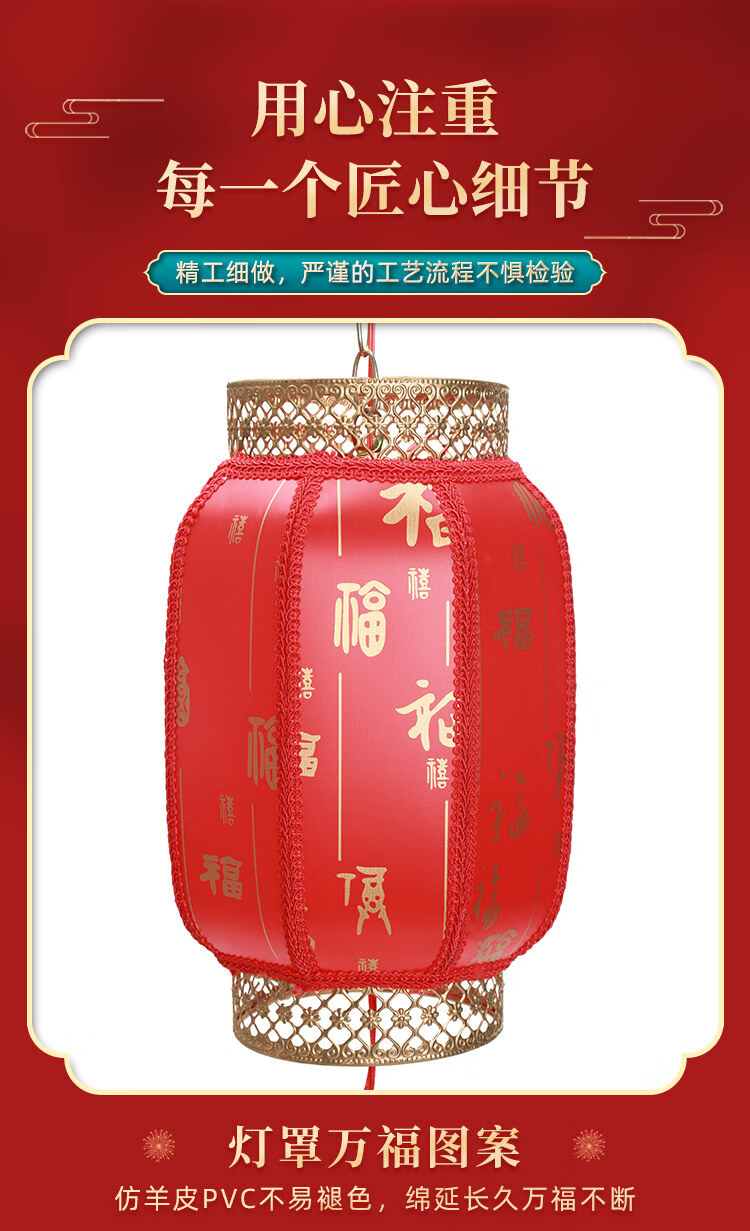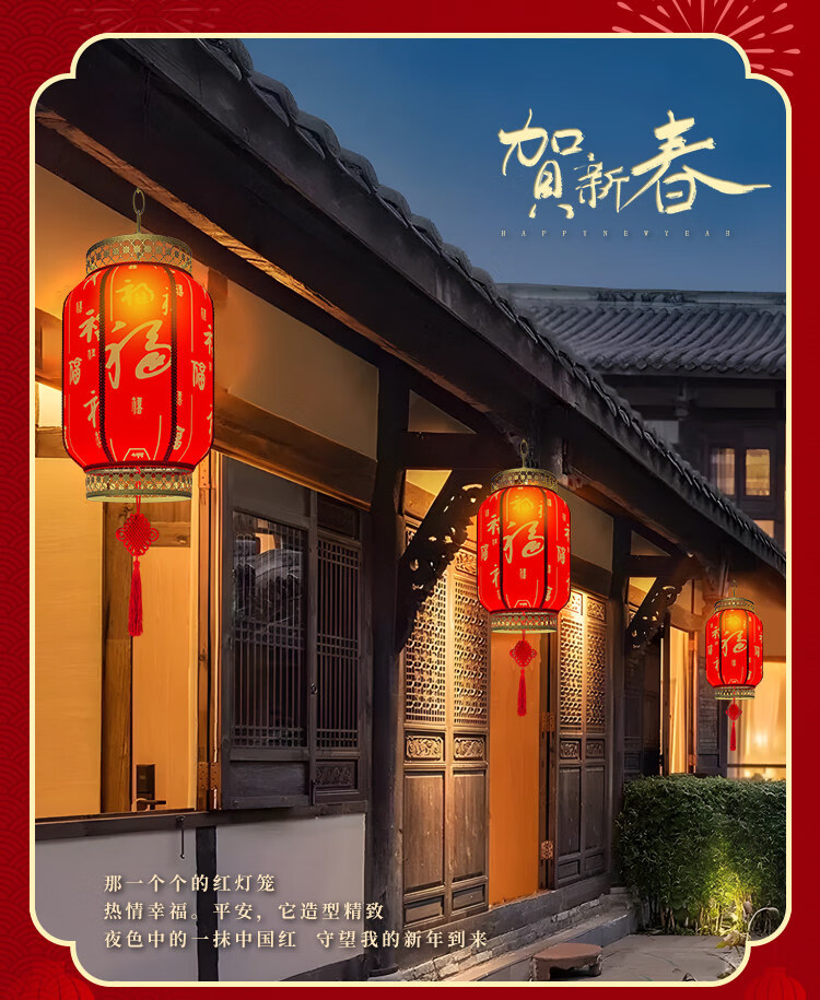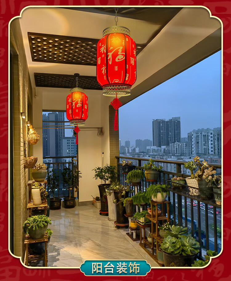 Xushansi 2026 New Solar Outdoor Garden Red Lantern Waterproof Sunscreen Antique Style Chinese Palace Lantern Chinese Style Chandelier Yuanfu Pendant Lamp-2 Pack Family Portrait-2 Pack