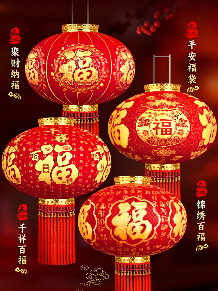 Xushansi 2026 red lantern new hanging decorations for the New Year and Spring Festival high-end gate pair of villas 2025 outdoor balcony 80 Qianxiang Baifu 4-use projector lamp Ping An beads/pair